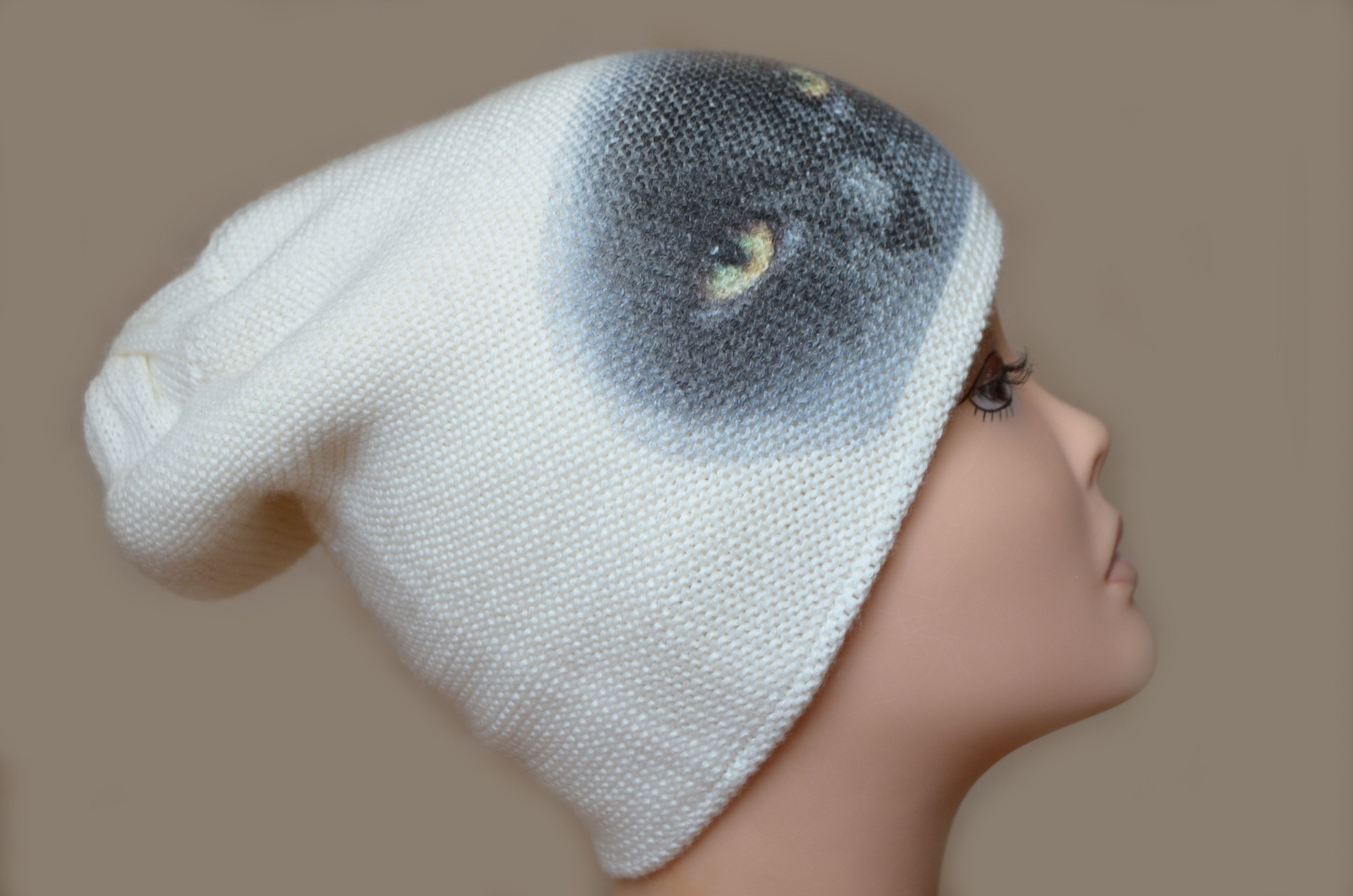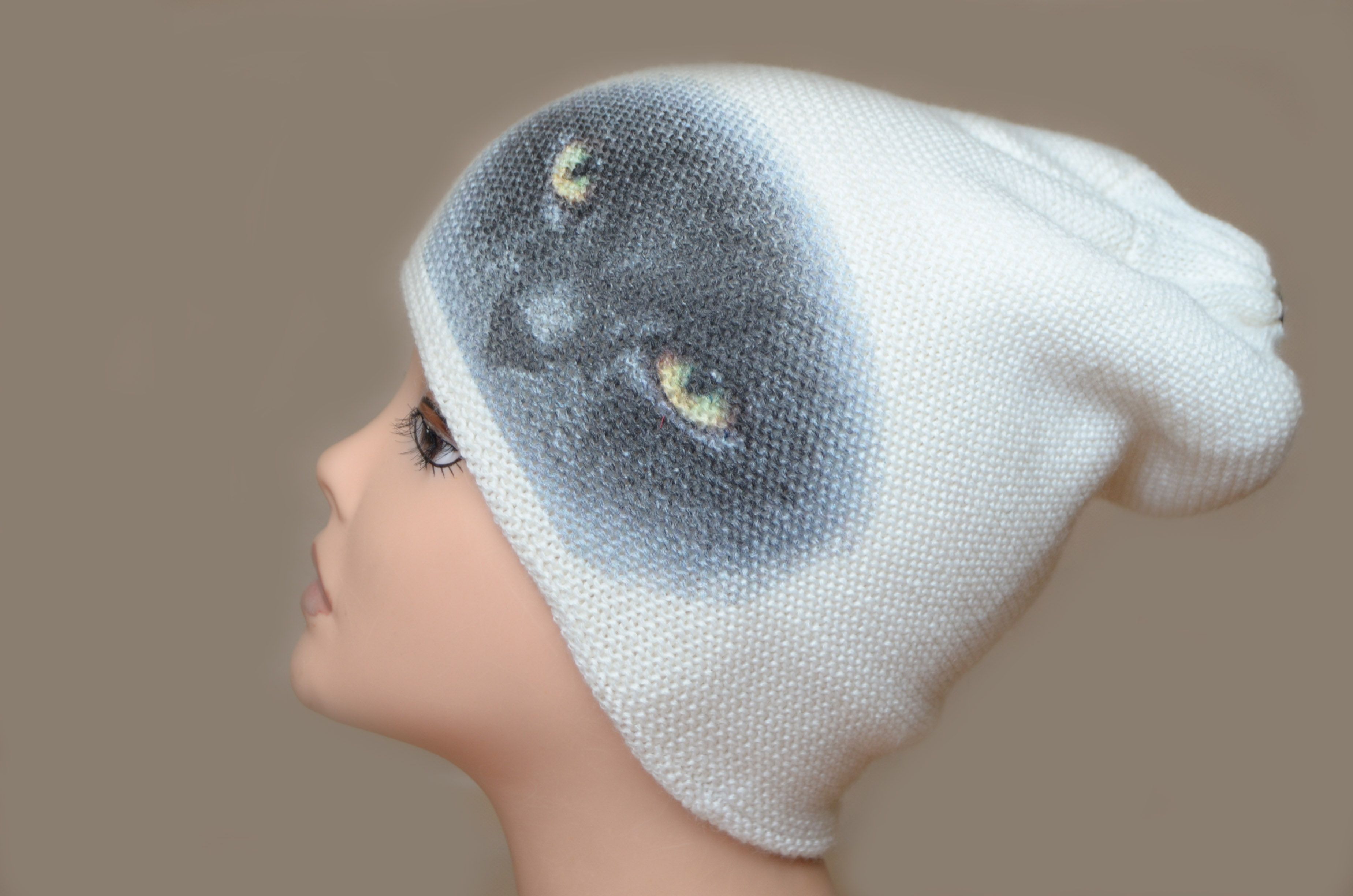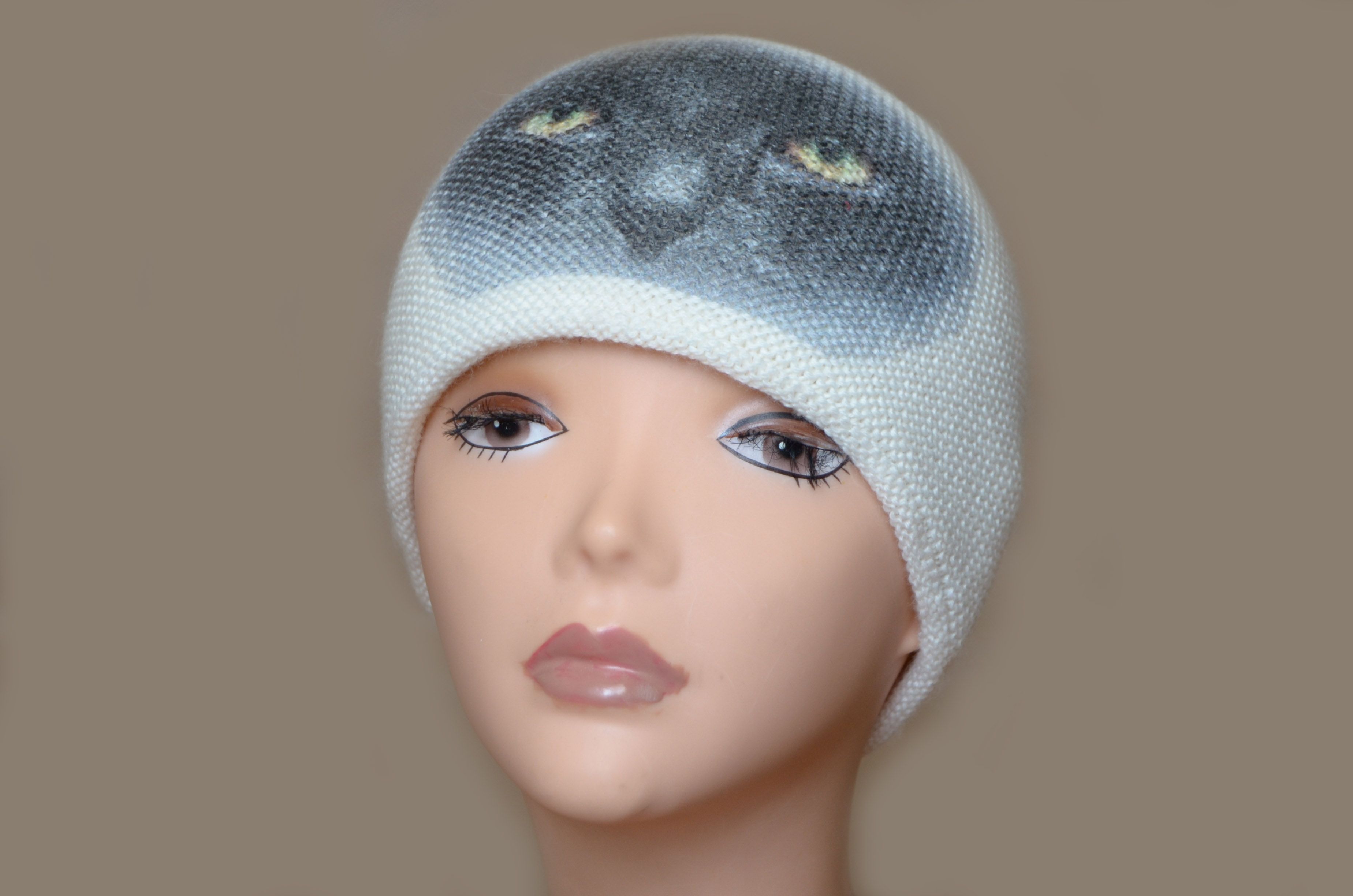 Шапка женская с кошкой белая Vizio Италия 1004 купить из коллекции женских шапок Vizio Collezione в интернет магазине женских головных уборов