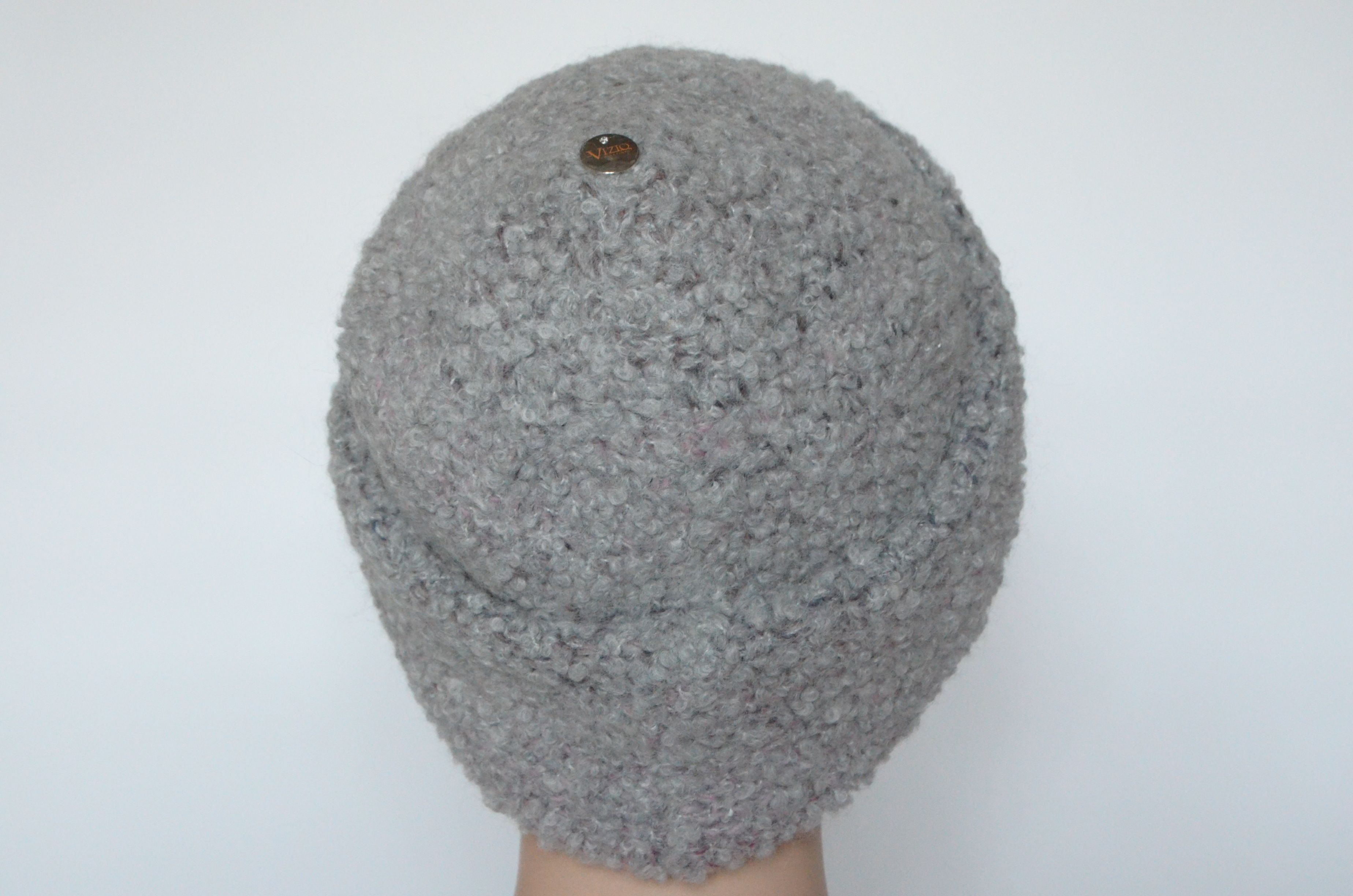 Вязаная шапка серого цвета с отворотом из шерсти альпака женская Италия Vizio 7007 CY купить в интернет магазине итальянских шапок Визио