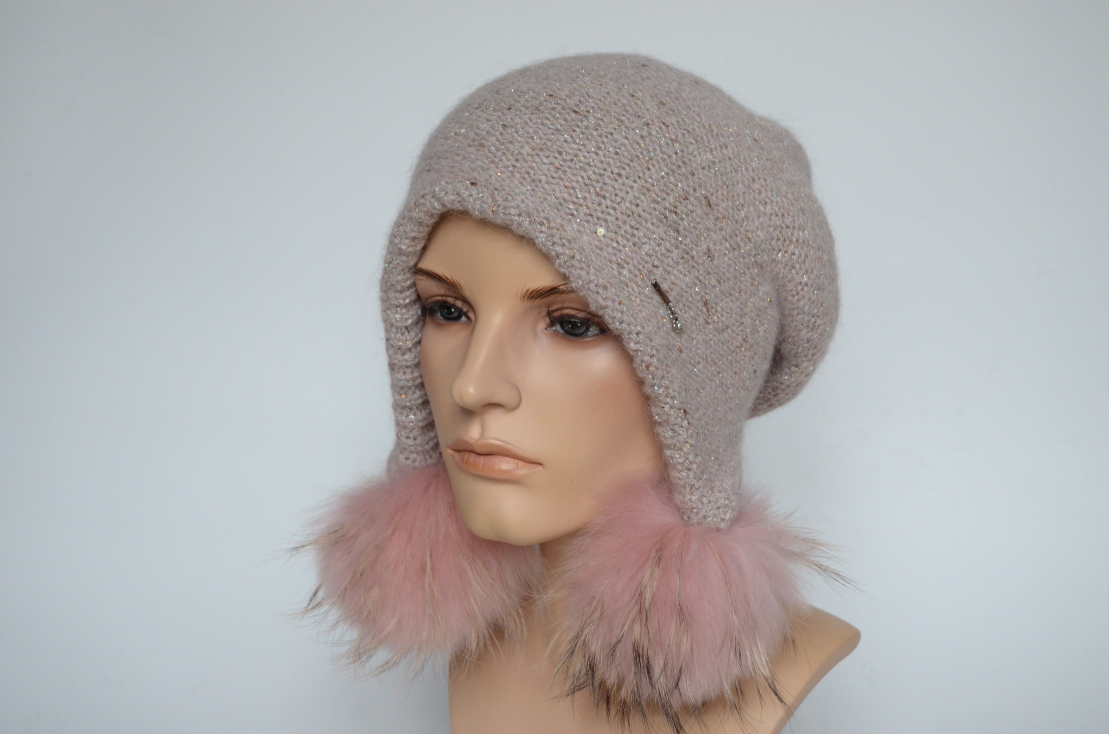 Купить вязаную розовую шапку ушанку с помпонами зима 2022 - 2023 Визио Италия Вы можете в интернет магазине модных головных уборов для женщин