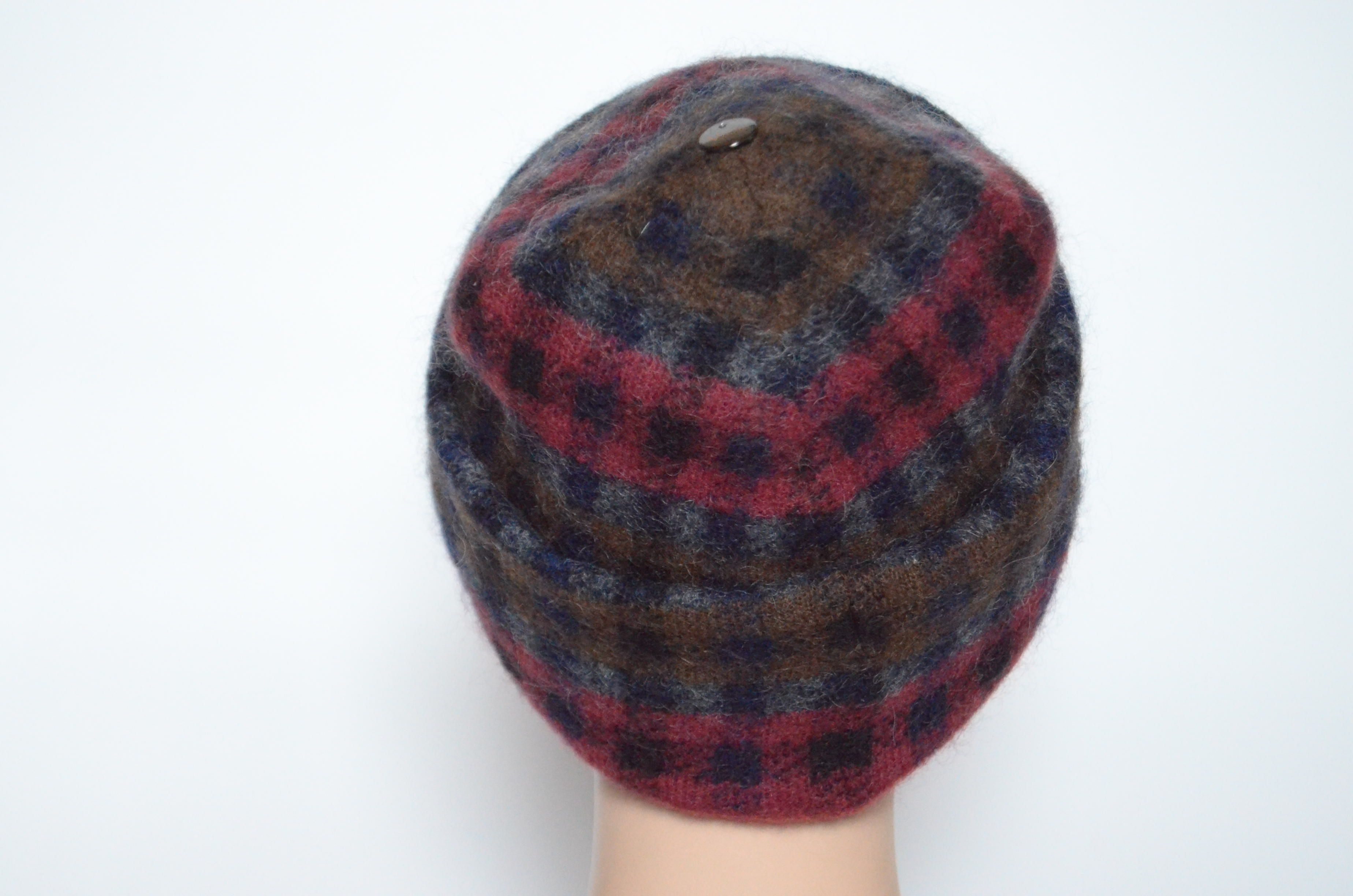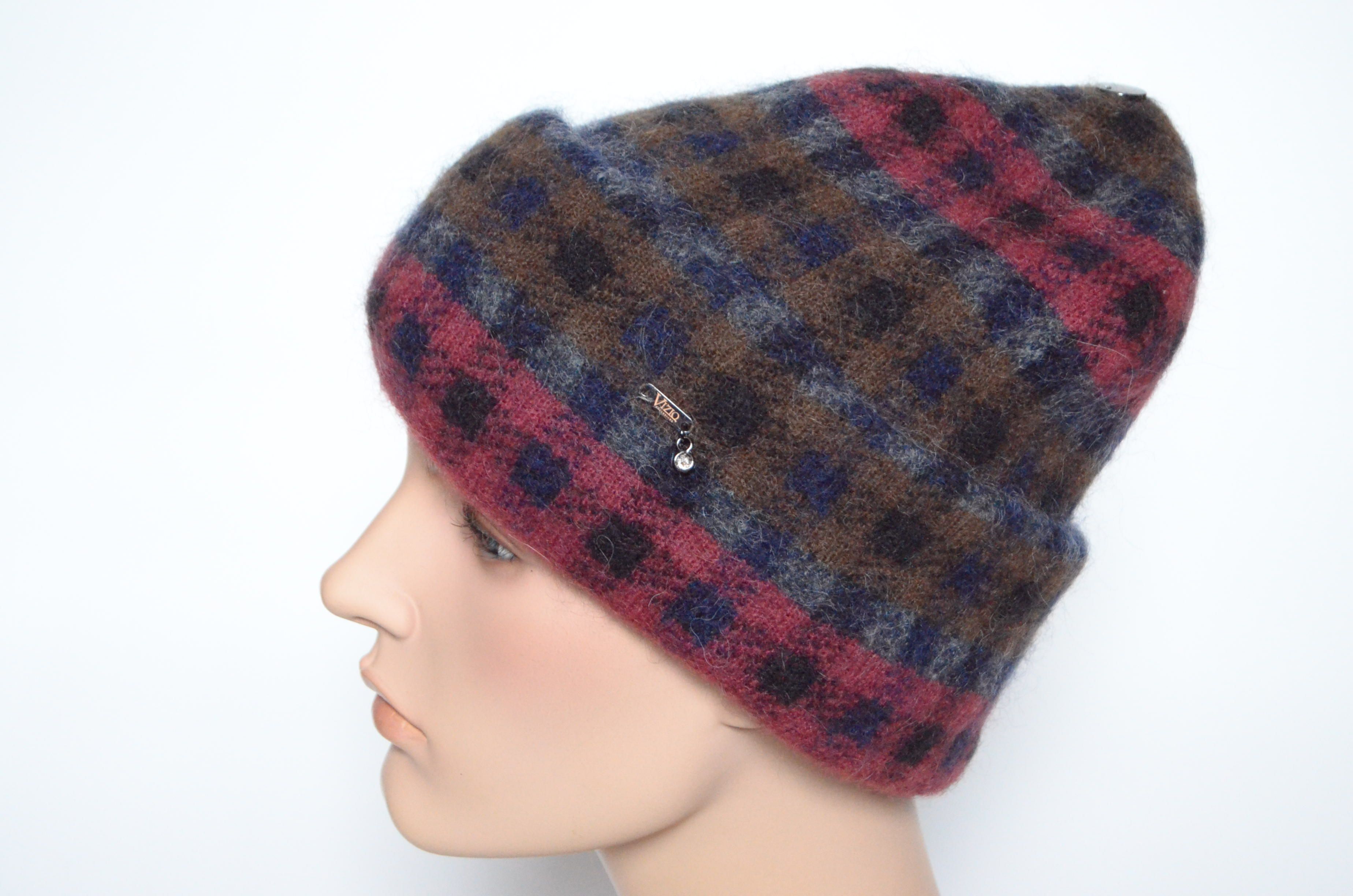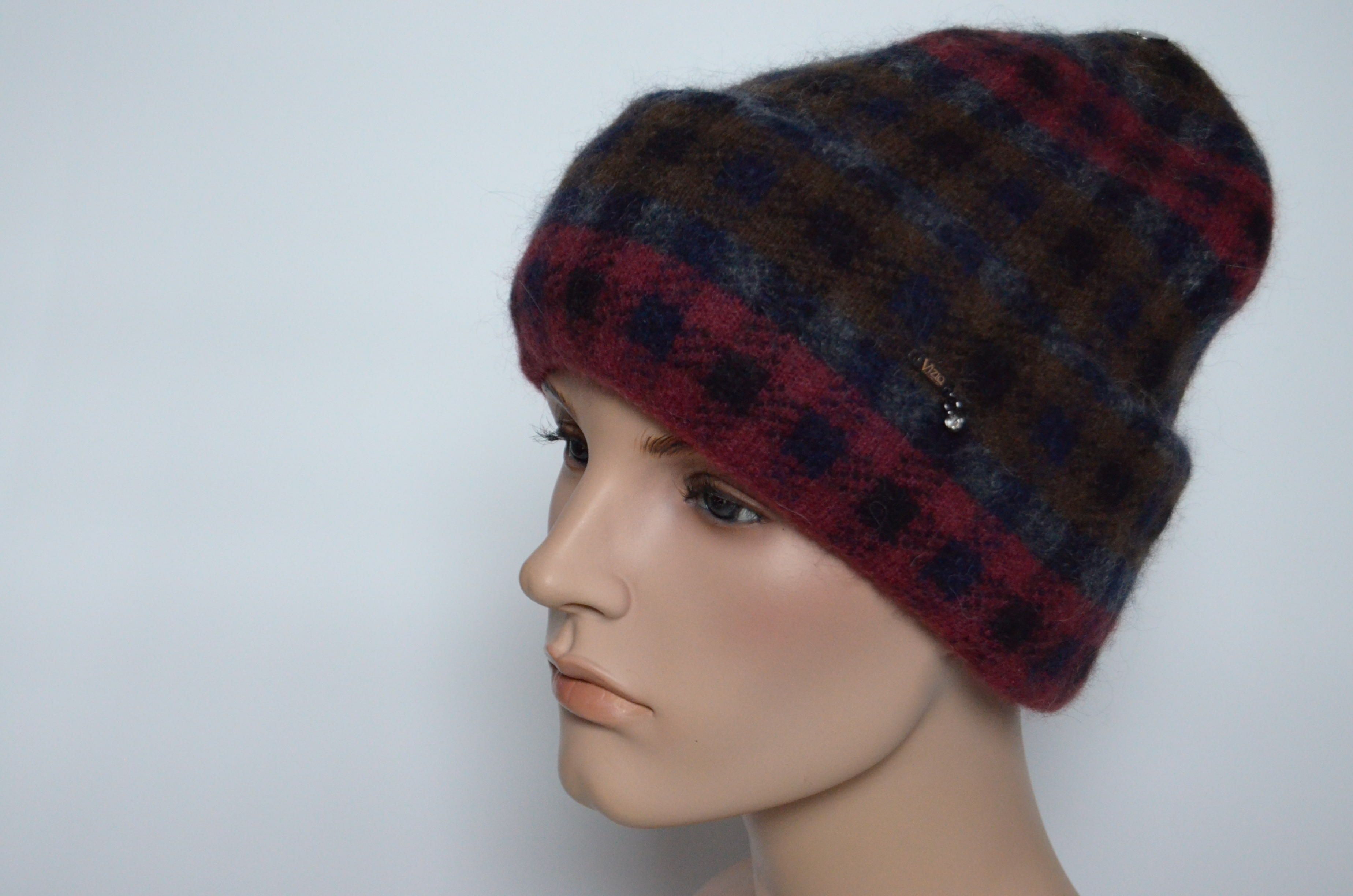 Вязаная шапка в клетку с отворотом для женщин Vizio 6944 бордового цвета коллекция беретов и шапок Визио 2021 - 2022 купить в интернет магазине женских вязаных итальянских головных уборов
