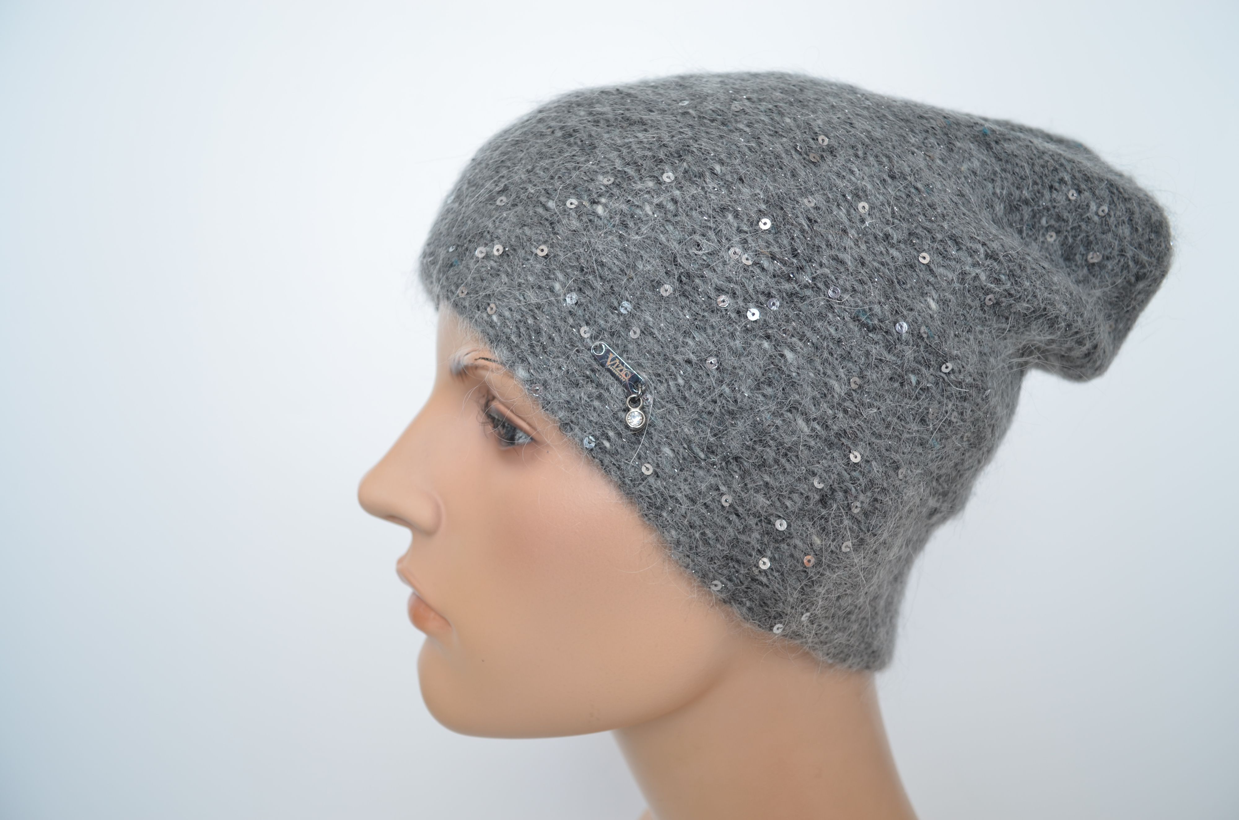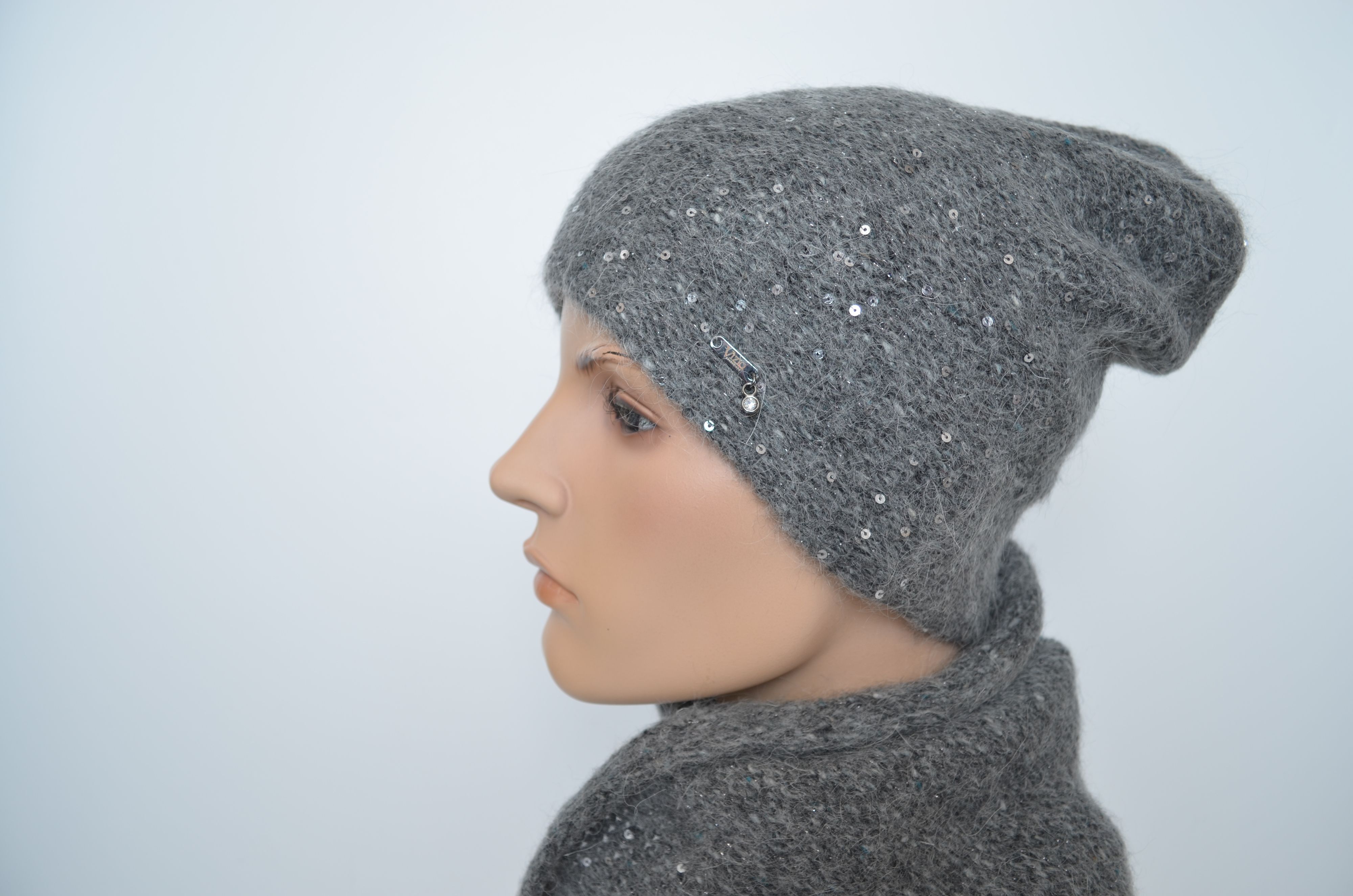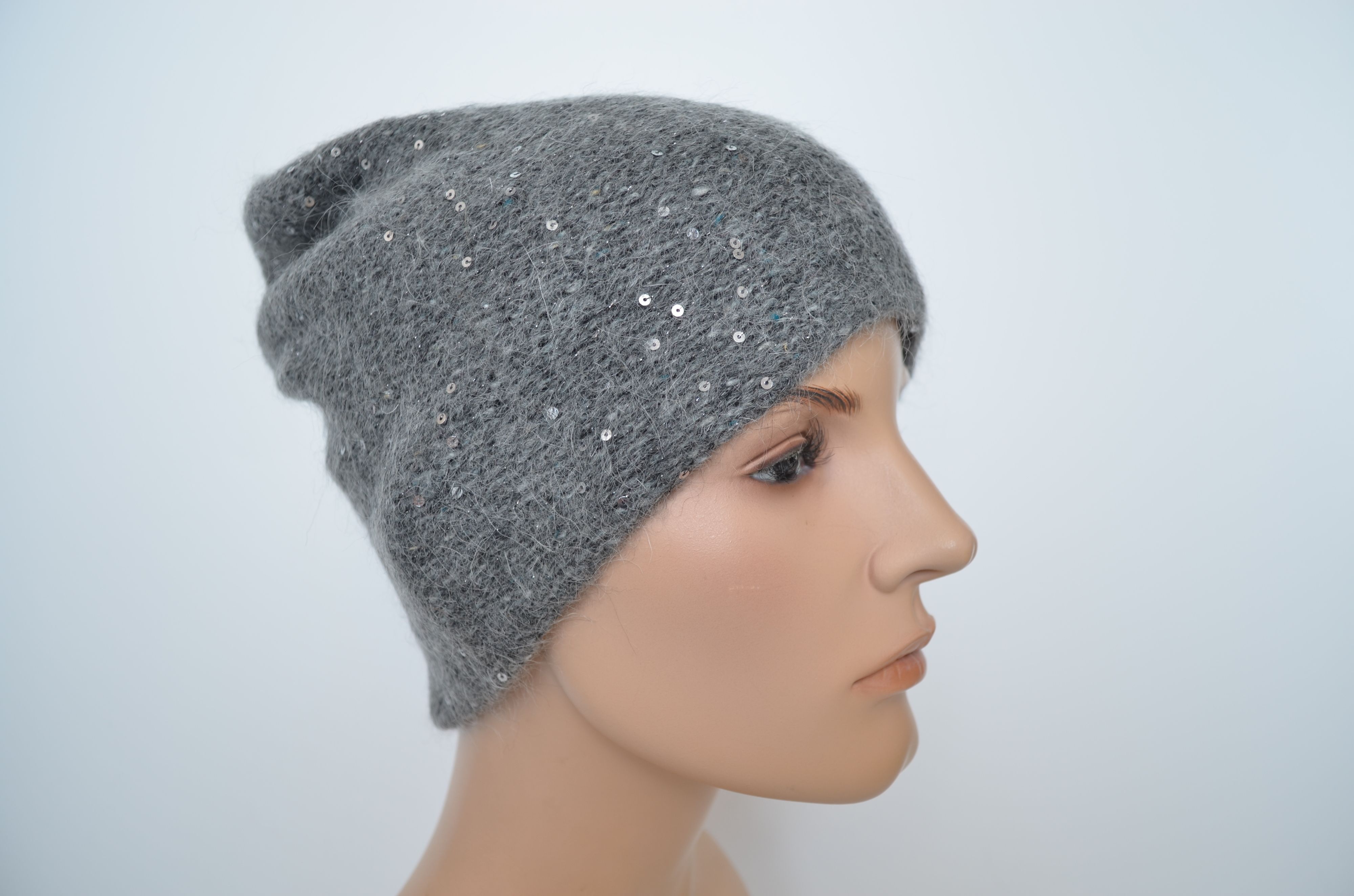 Итальянская вязаная шапка из меланжевой пряжи антрацитового цвета с пайетками Vizio 1010 CL купить в интернет магазине головных уборов Италии Визио