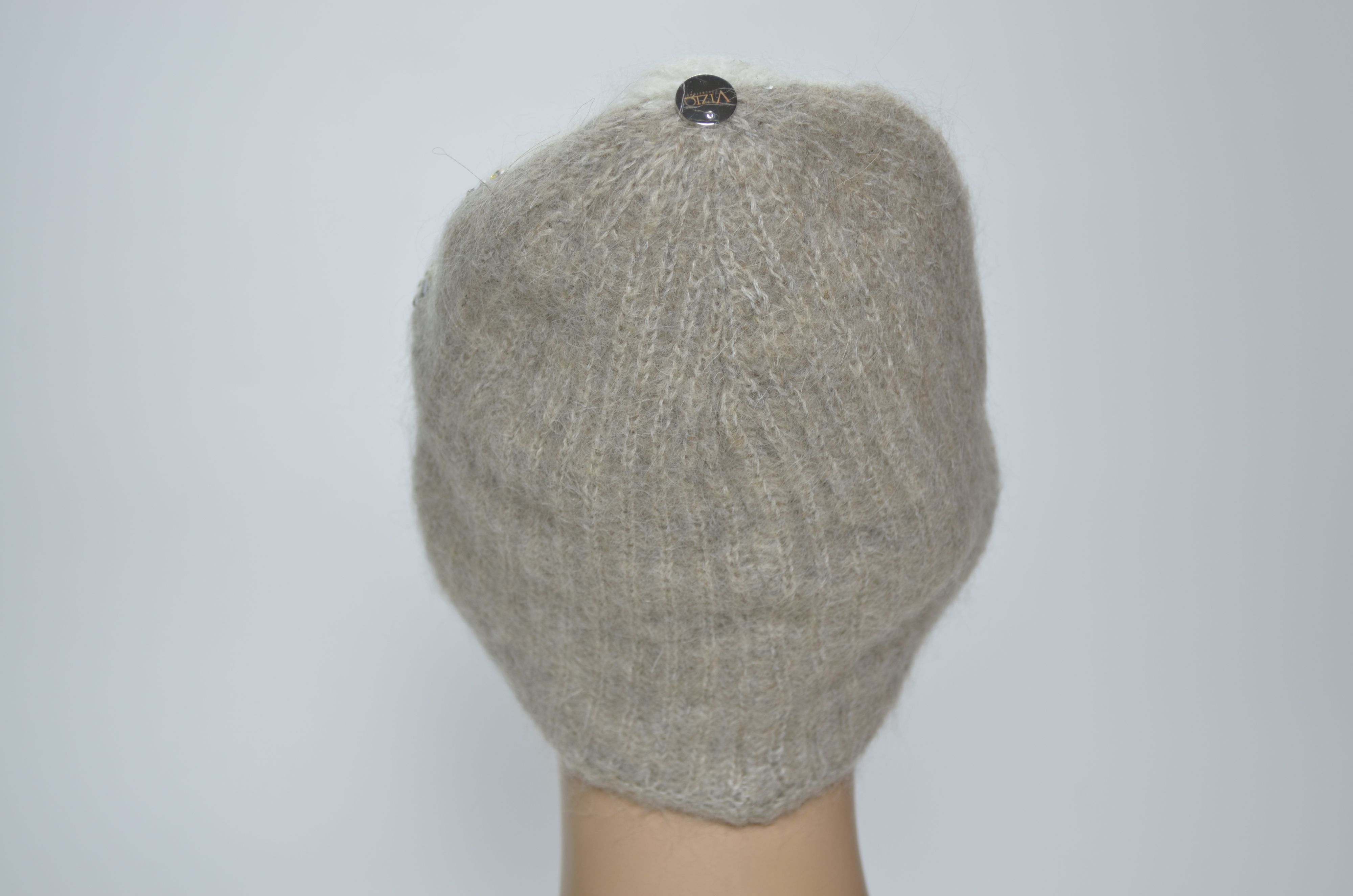 Женская вязаная двухцветная шапка со стразами зимняя Vizio Италия 1384 CY бело бежевая новая коллекция итальянских шапок осень зима 2025