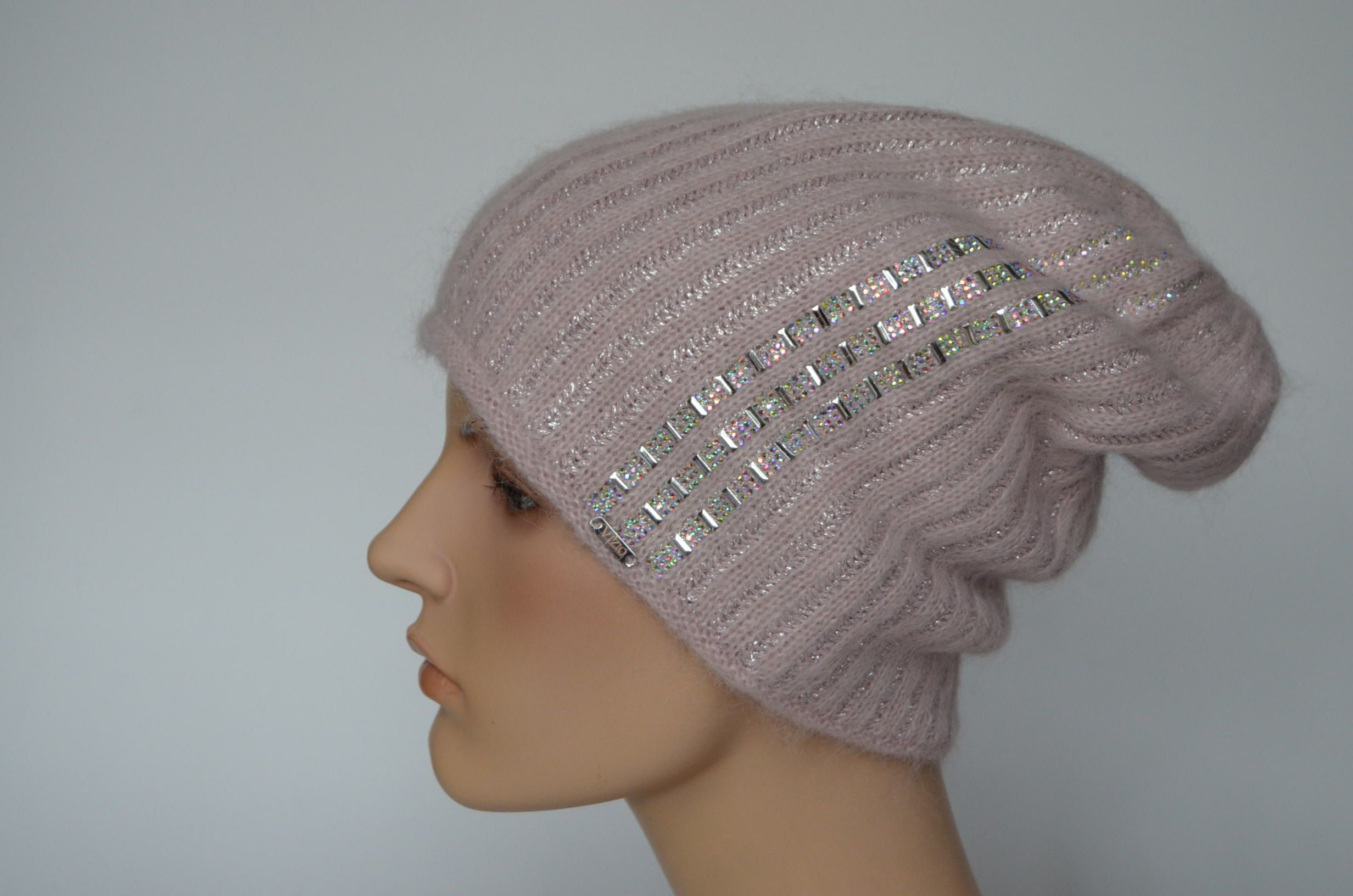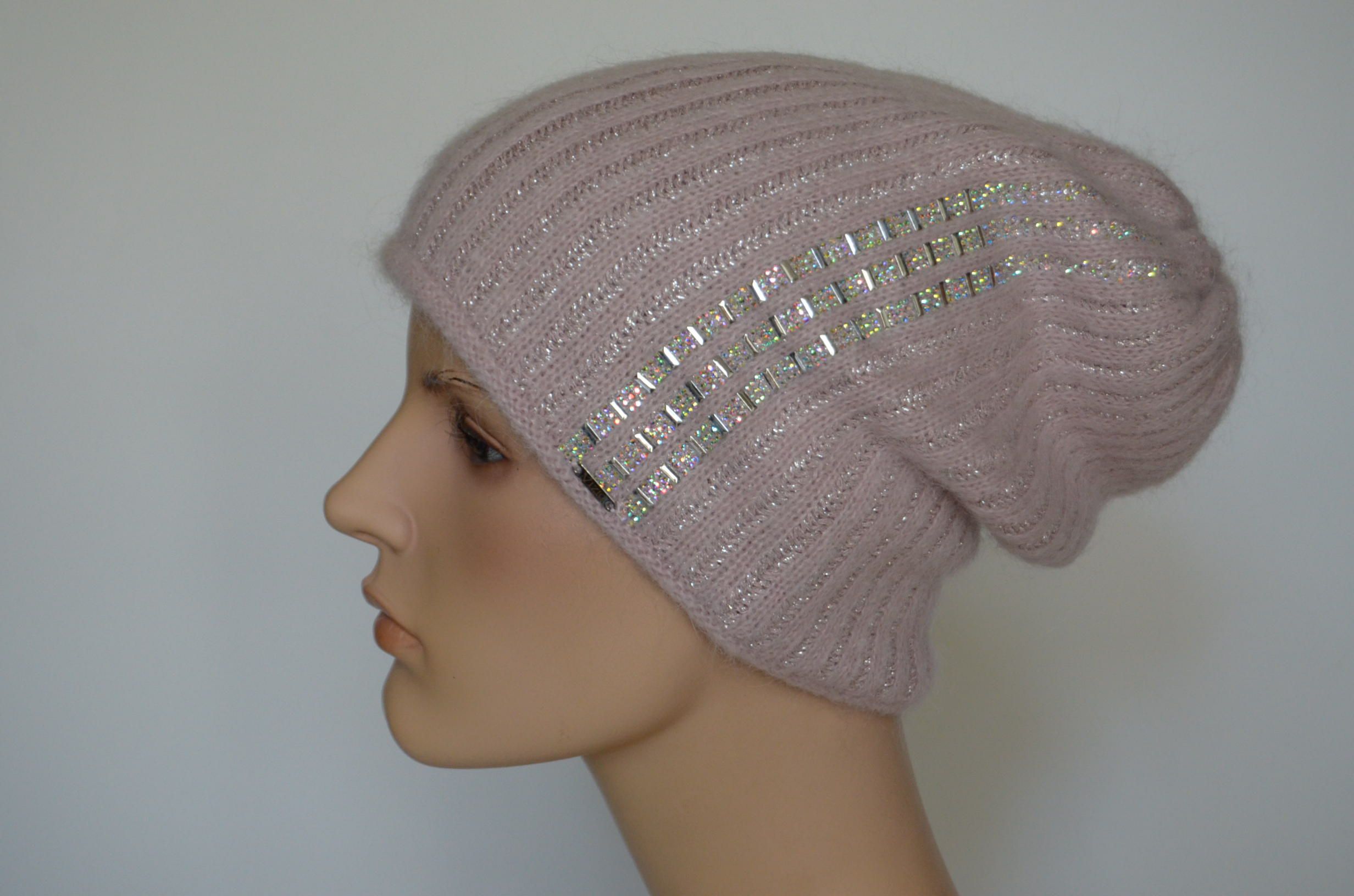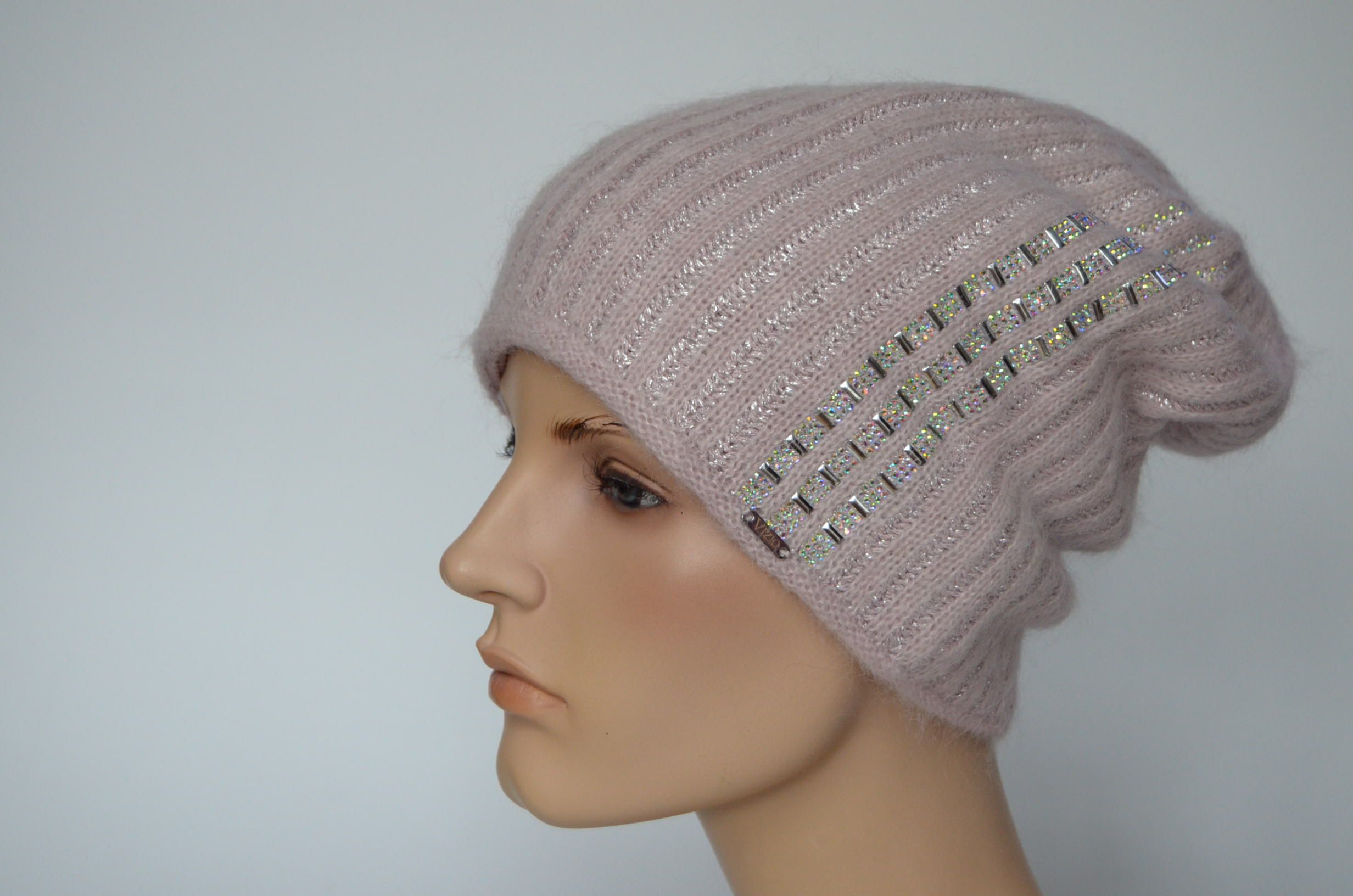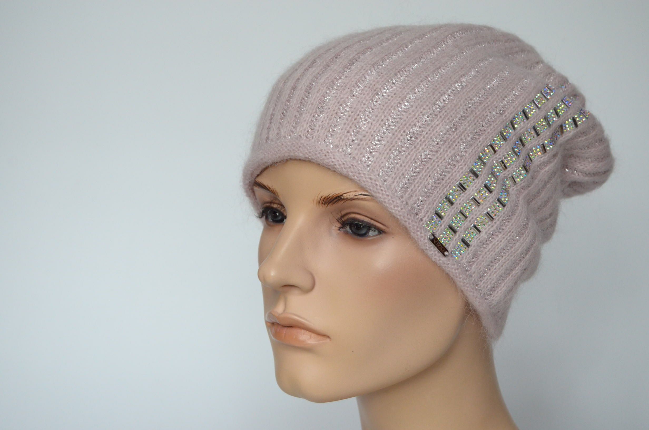 Приобрести розовую женскую шапку с украшениями Визио Италия зима 2024 вы можете в интернет магазине итальянских головных уборов для женщин в Москве и доставкой по России