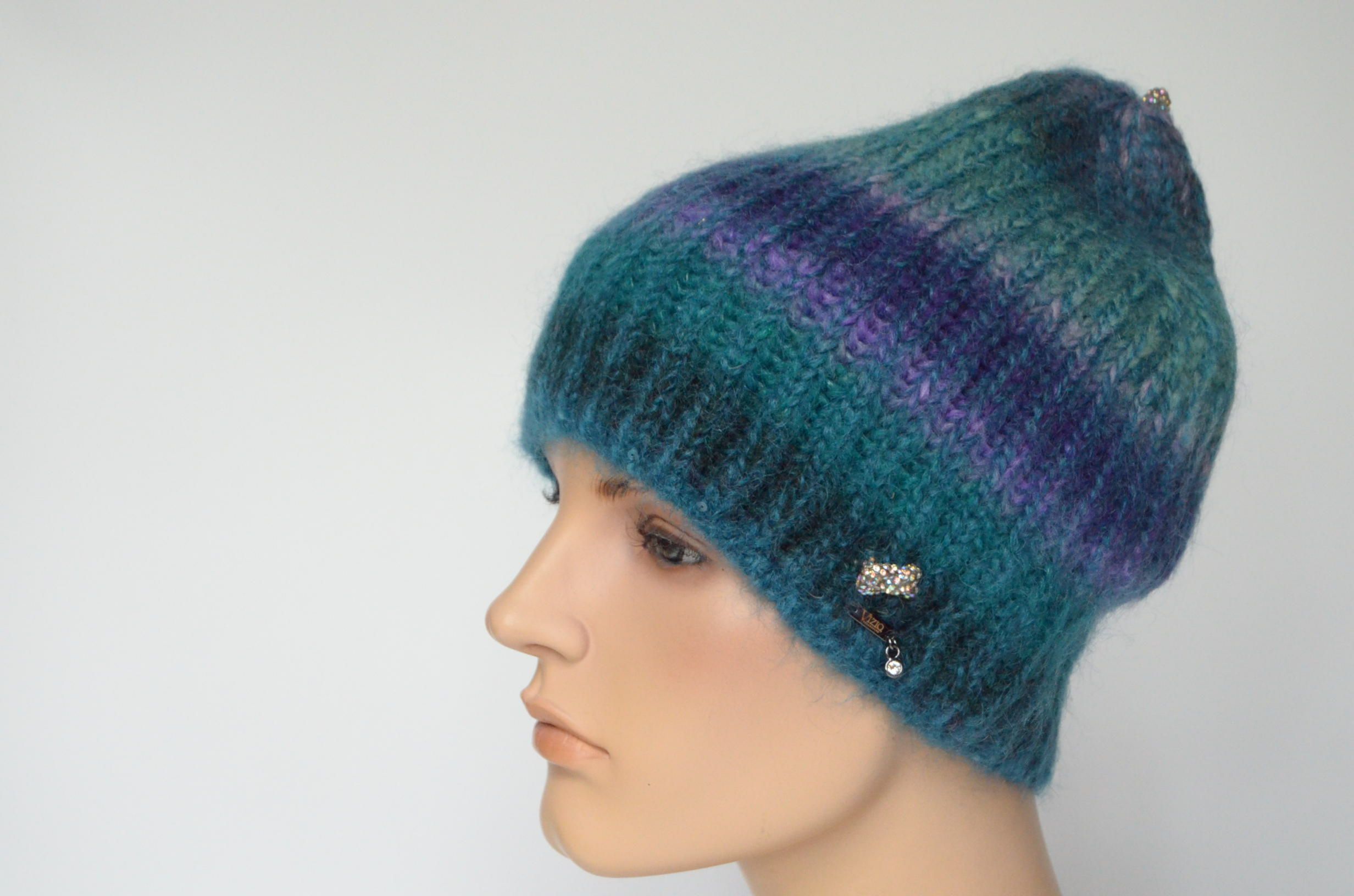 Купить разноцветную вязаную шапку с украшением зима 2023 - 2024 Визио Италия Вы можете в интернет магазине модных головных уборов для женщин