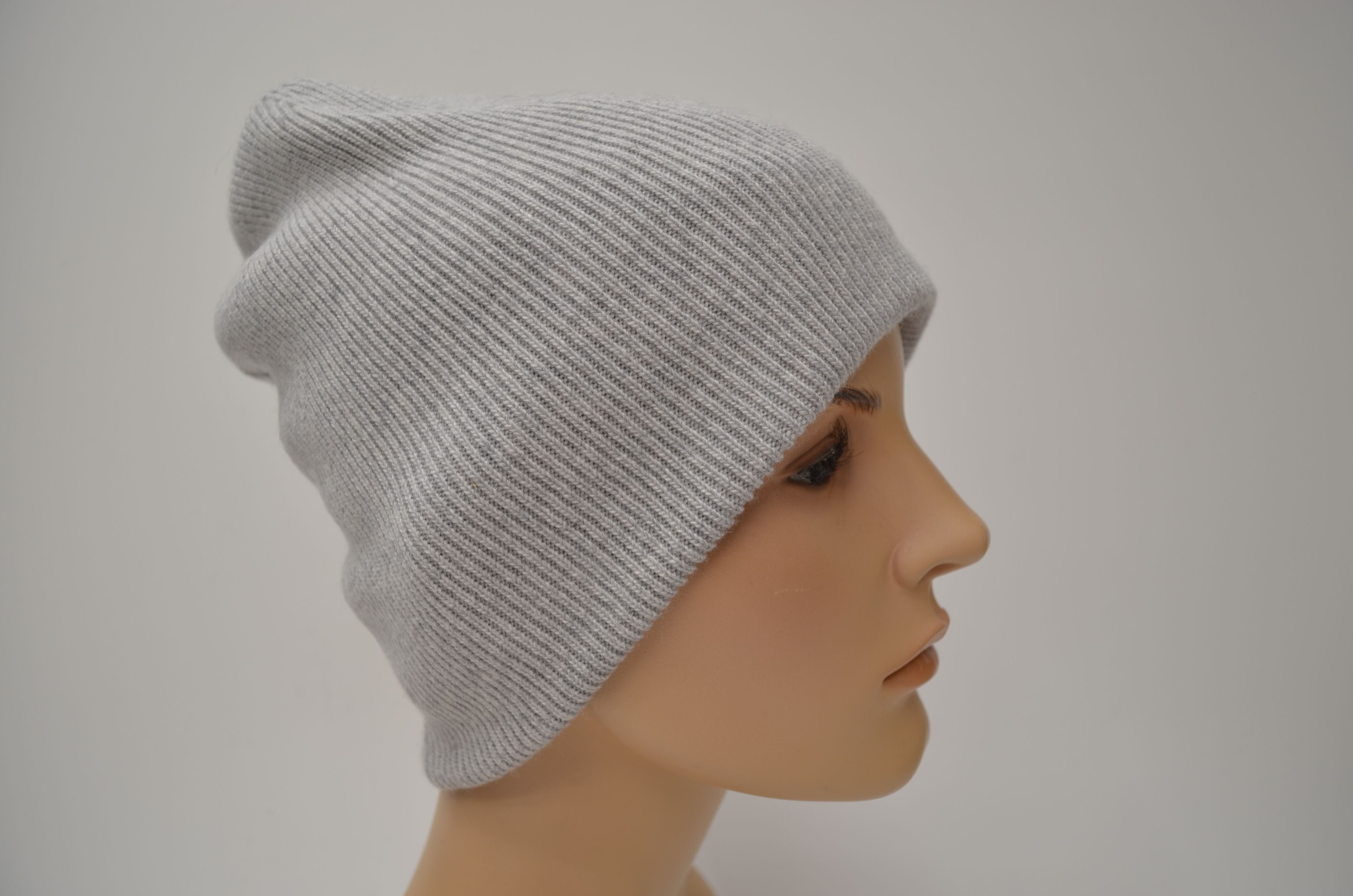 Женская серая вязаная шапка бини зимняя из мериноса и кашемира осень зима 2025 - 2026