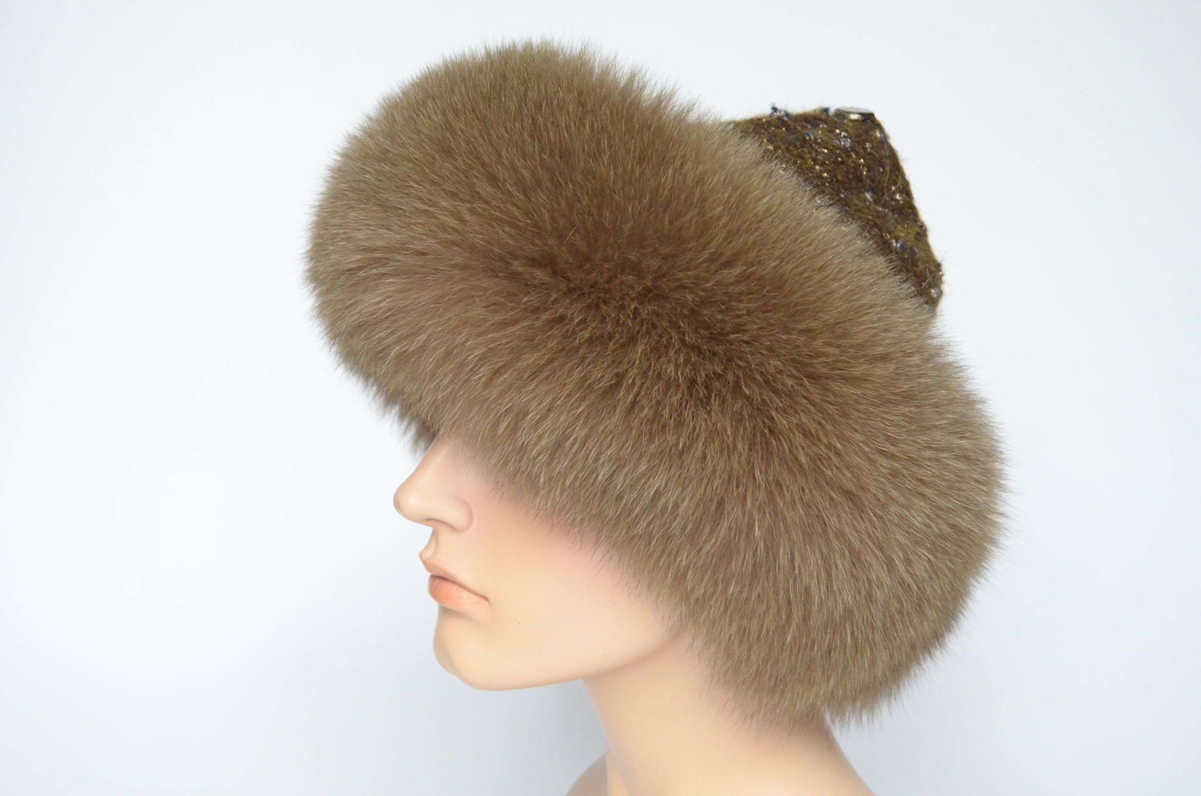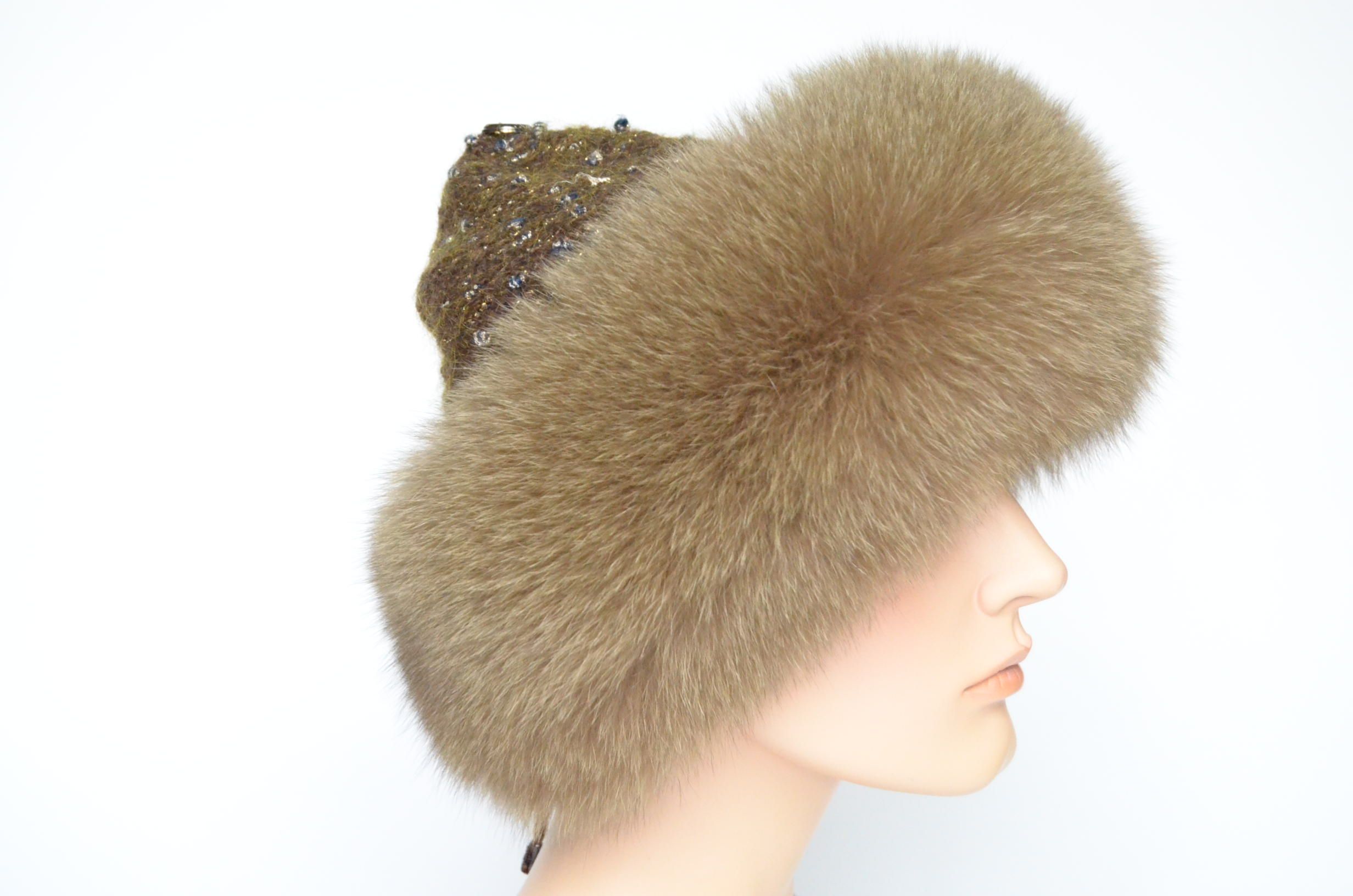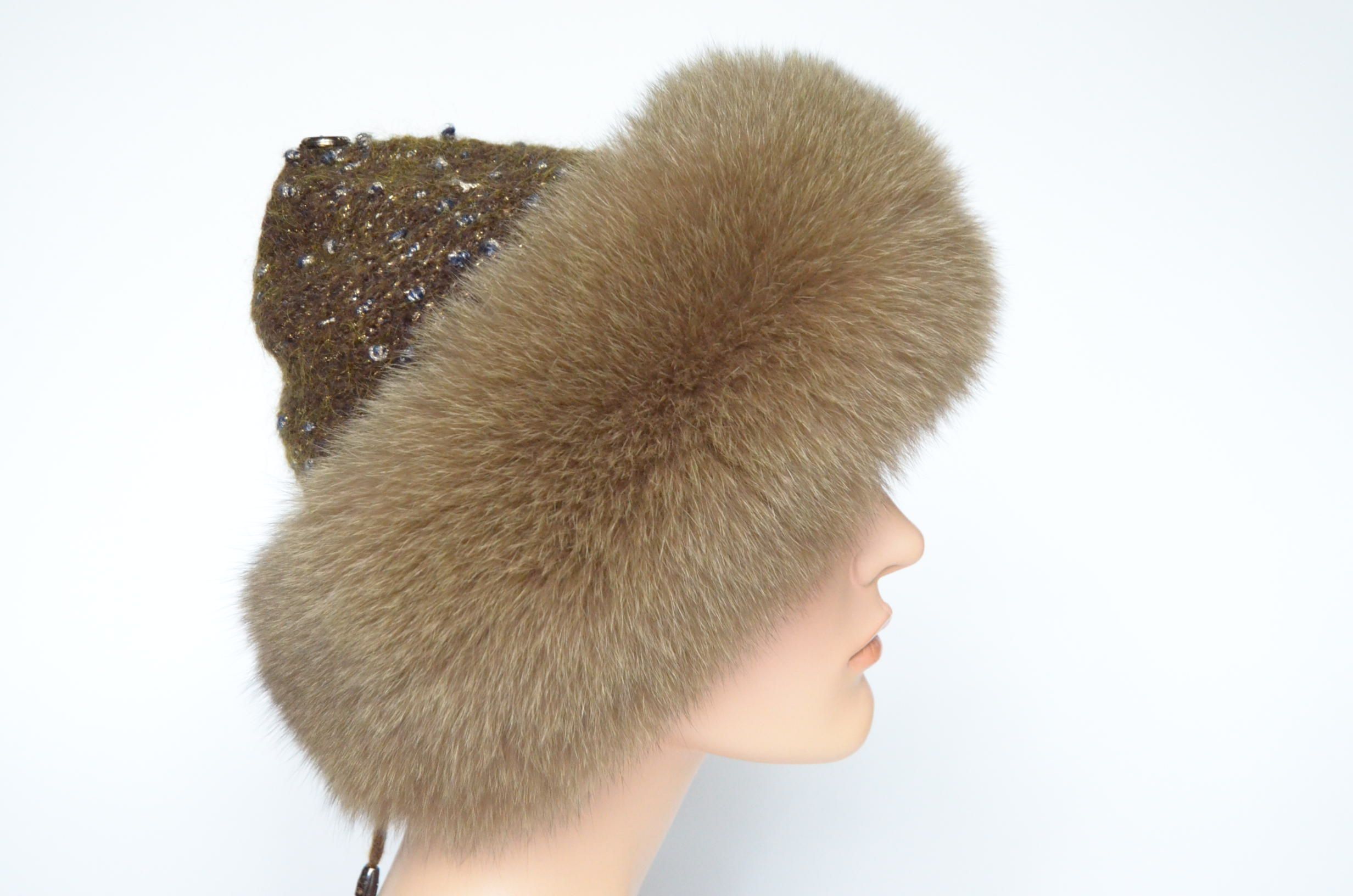 Меховая отделка вязаной шапки - мех песца