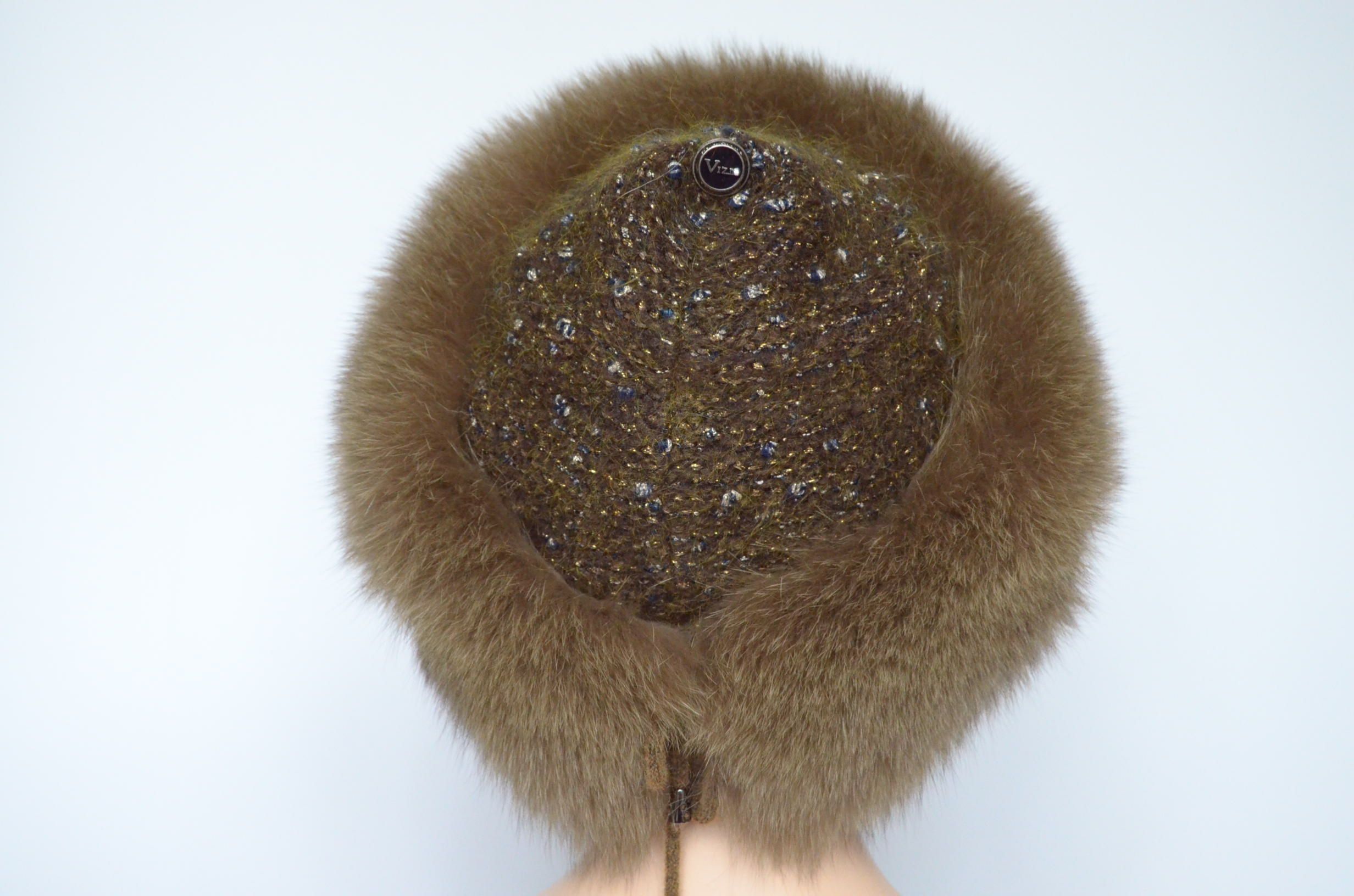 Вязаная шапка с меховой оторочкой мехом песца Vizio Италия 1024 коричневого цвета новая коллекция итальянских вязаных шапок с мехом дизайнера головных уборов Vizio Collezione