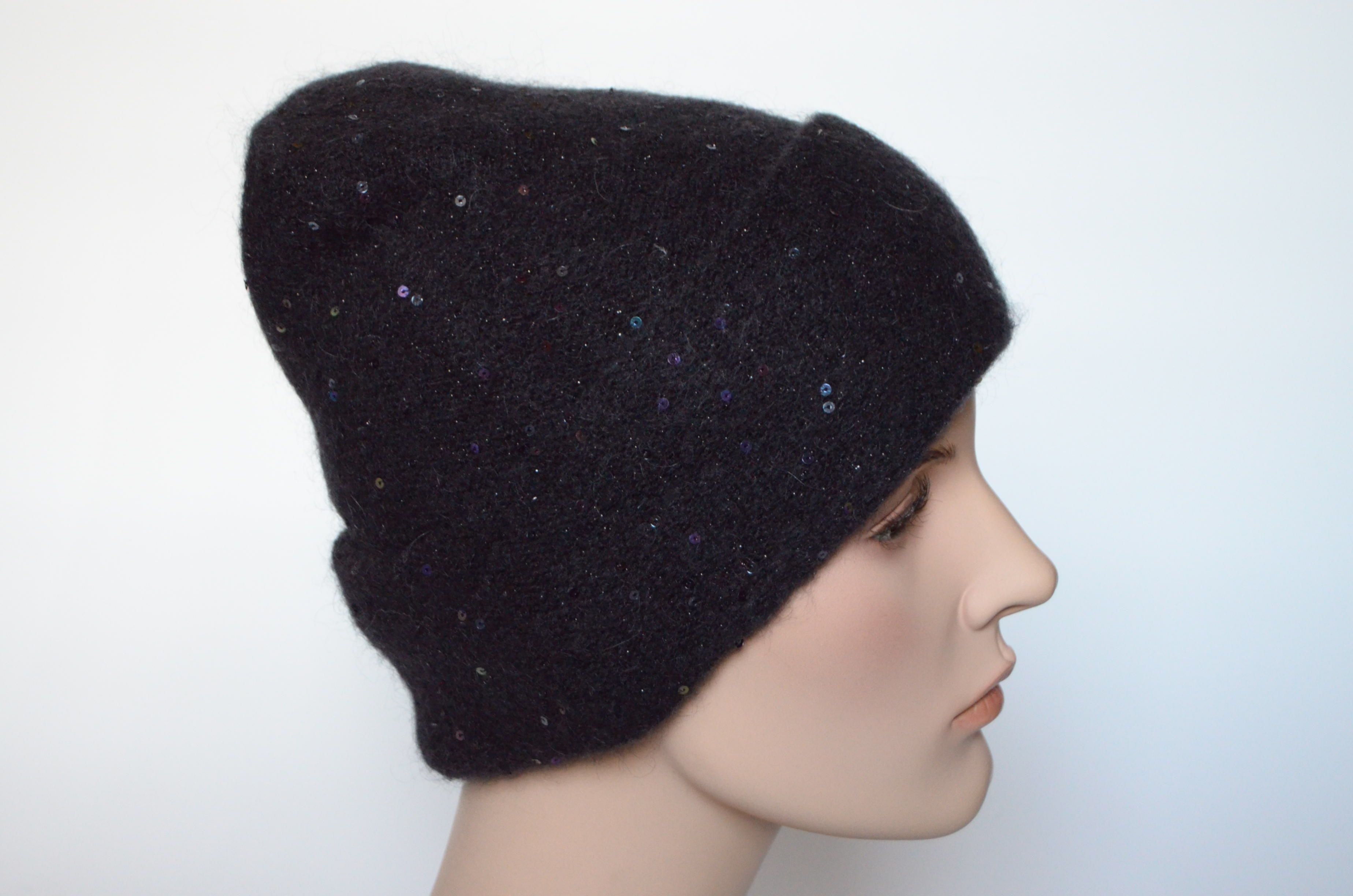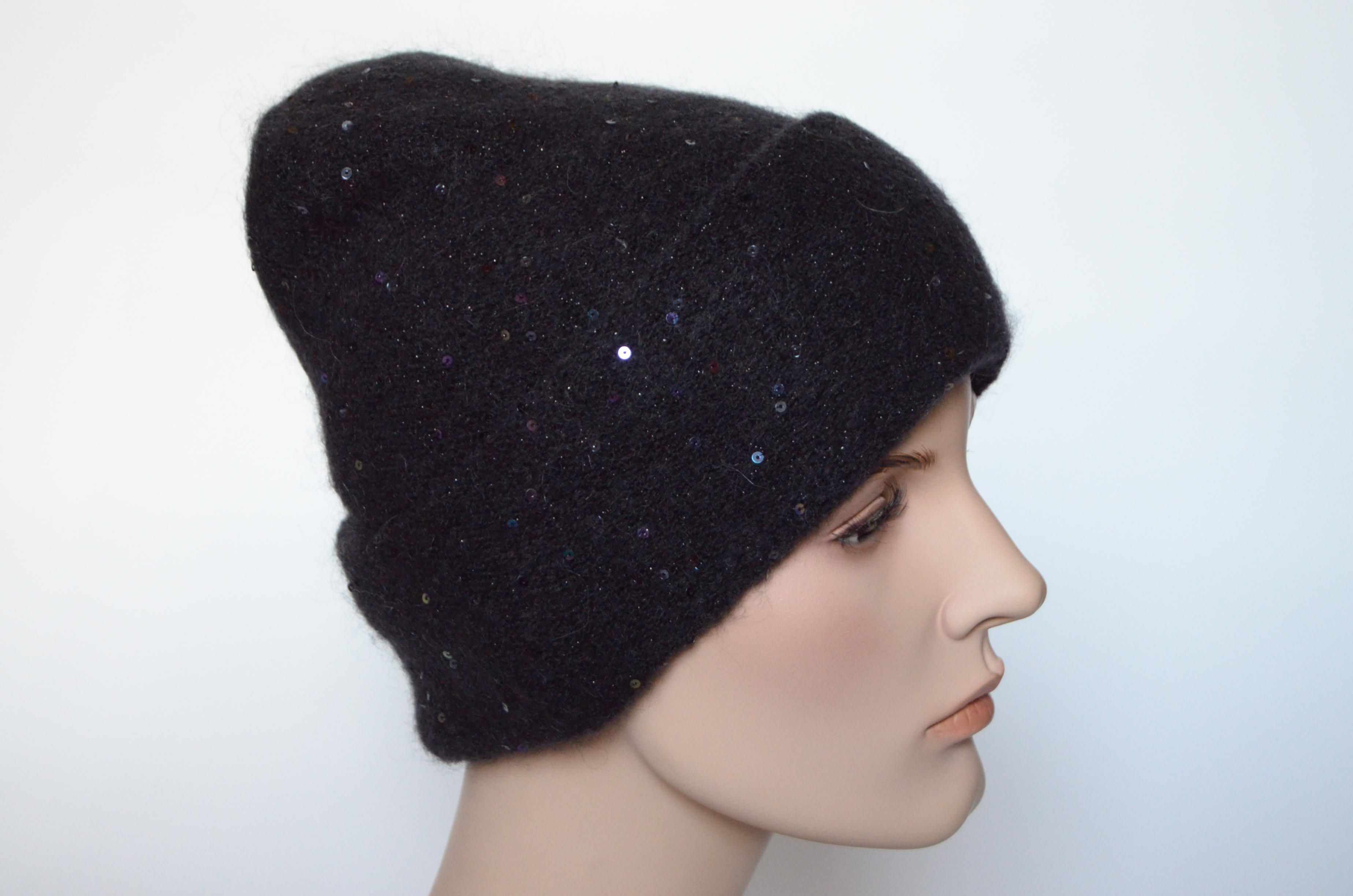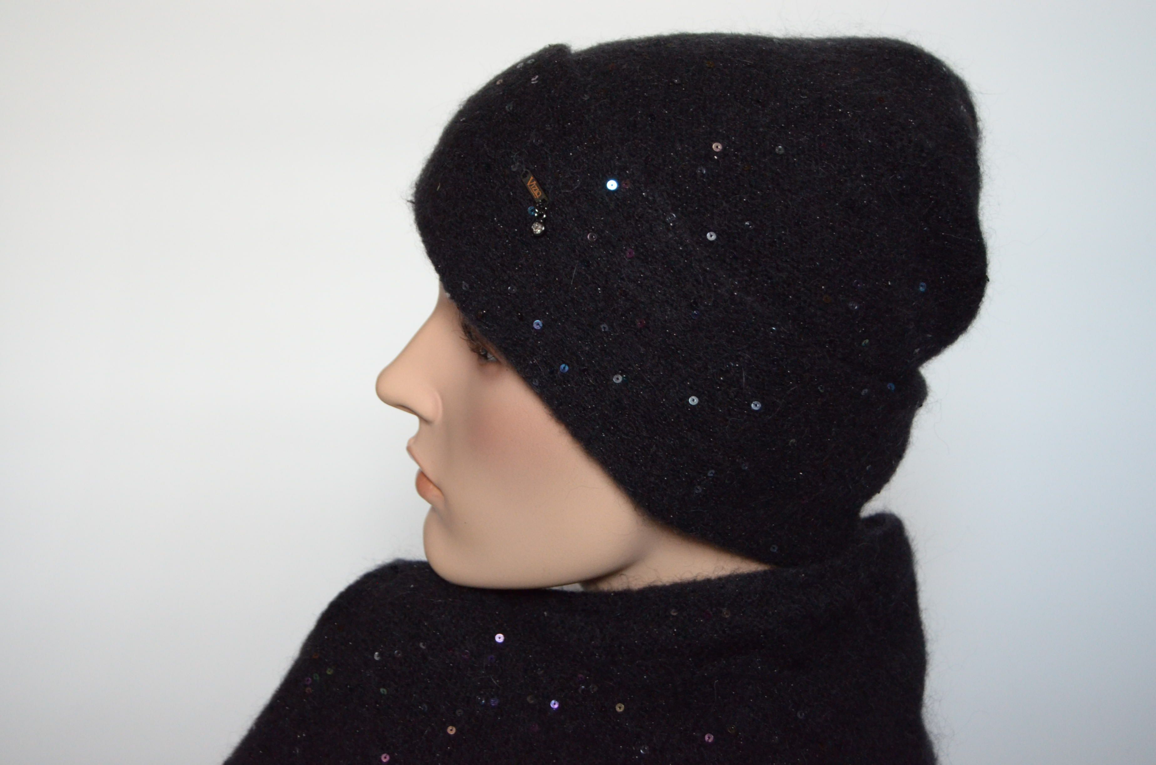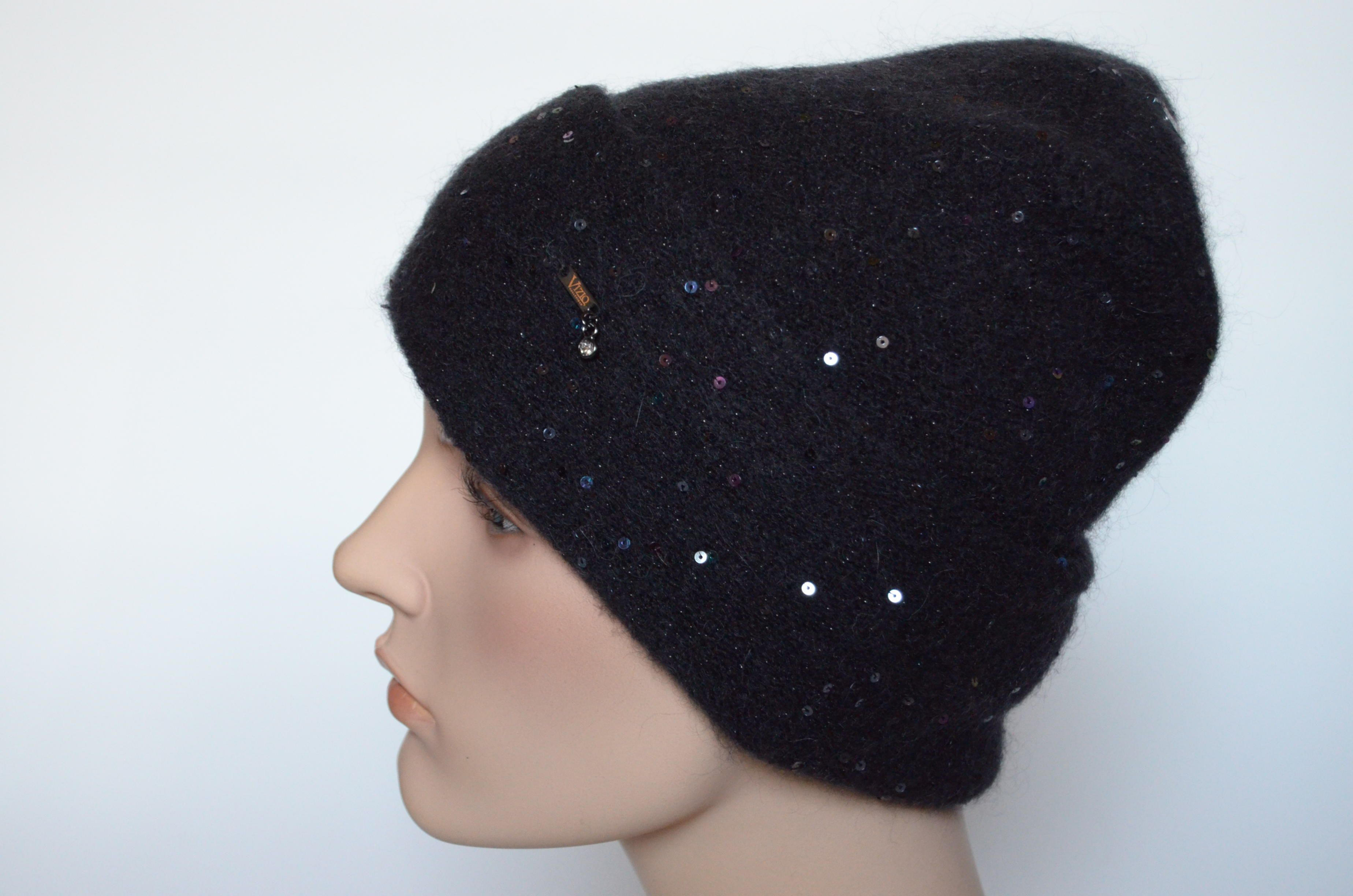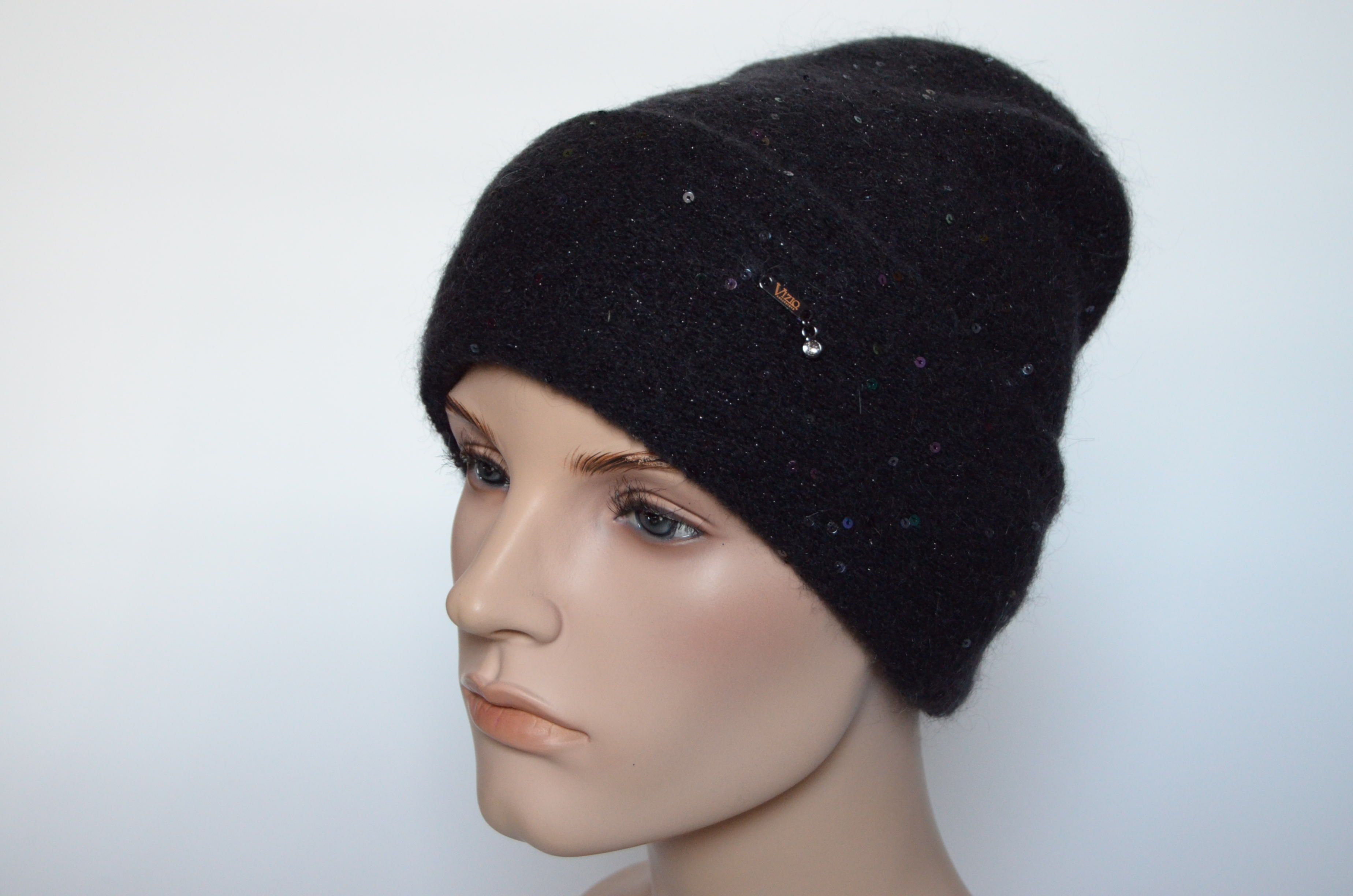 Итальянская шапка с отворотом вязаная женская Vizio 6943 CRY черная с пайетками осень - зима 2021 - 2022 купить в интернет магазине головных уборов Вицио