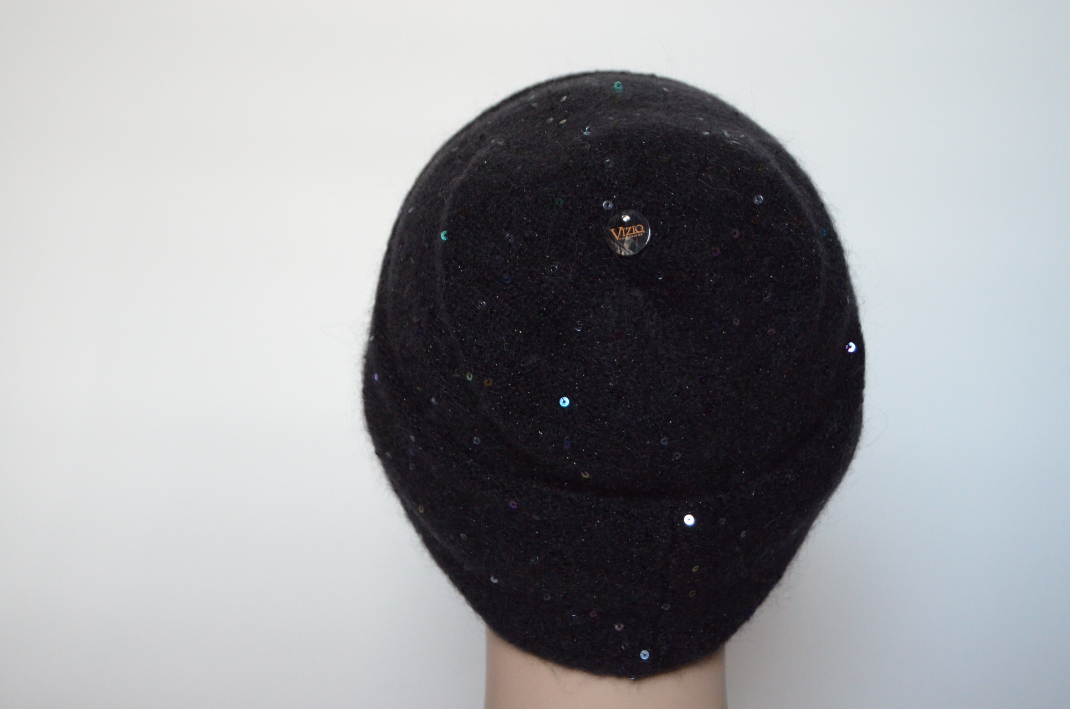 Черная женская шапка с отворотом и пайетками осень - зима 2021 - 2022 Vizio 6943 CRY итальянского производителя стильных головных уборов Vizio Collezione 6943 CL в интернет магазине шапок Италии для женщин