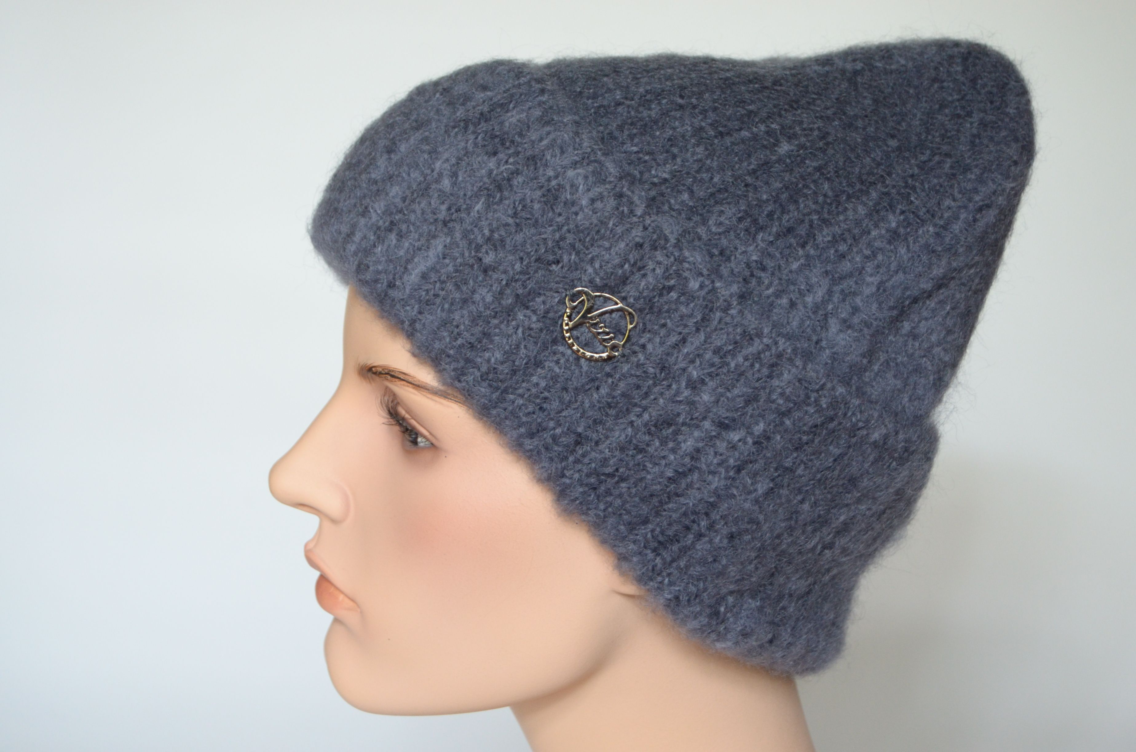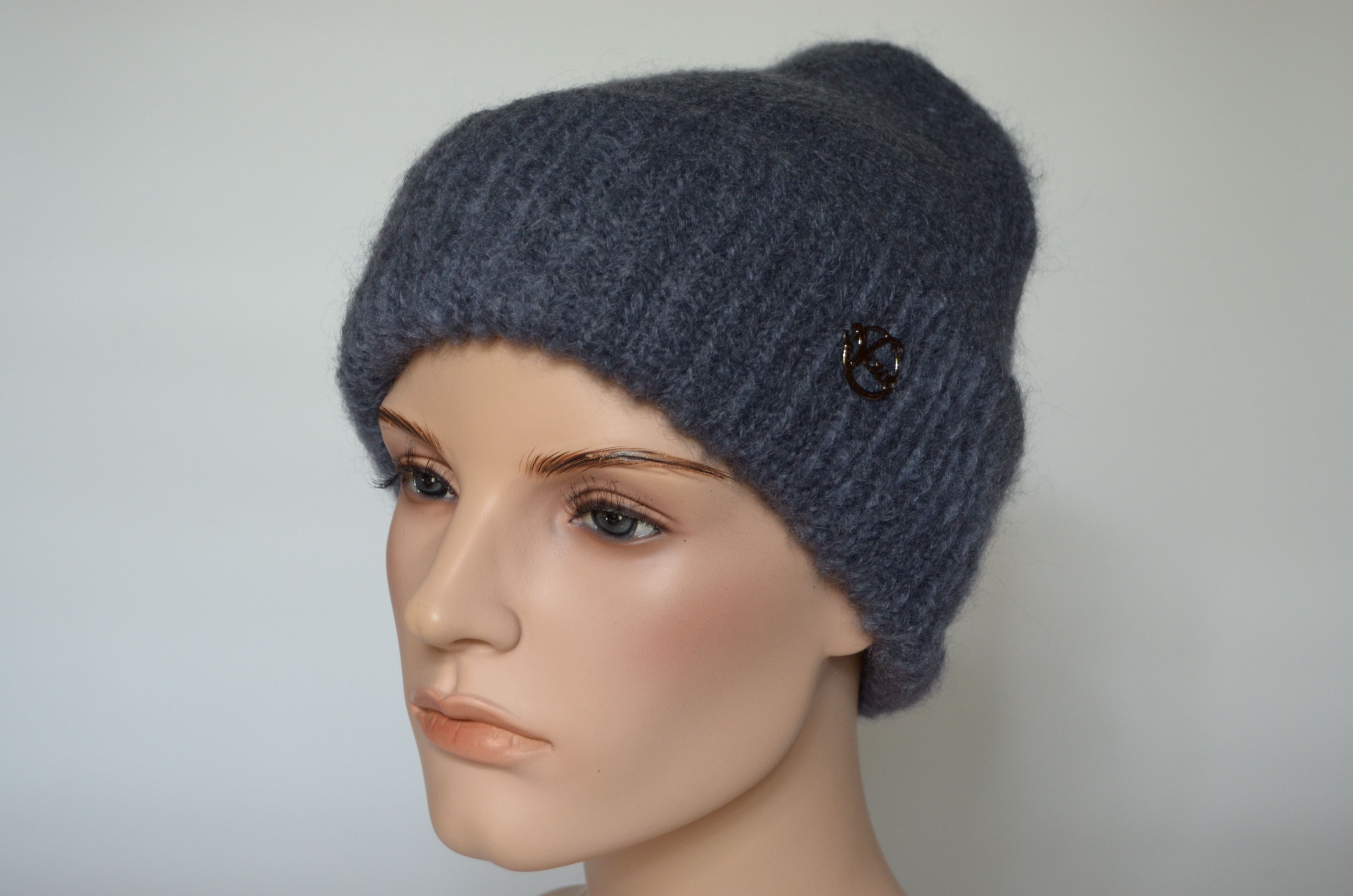 Шапка с отворотом женская вязаная темно - серая антрацитового цвета из мохера Vizio Италия 6946 CRYO теплая без подвяза зима 2021 - 2022