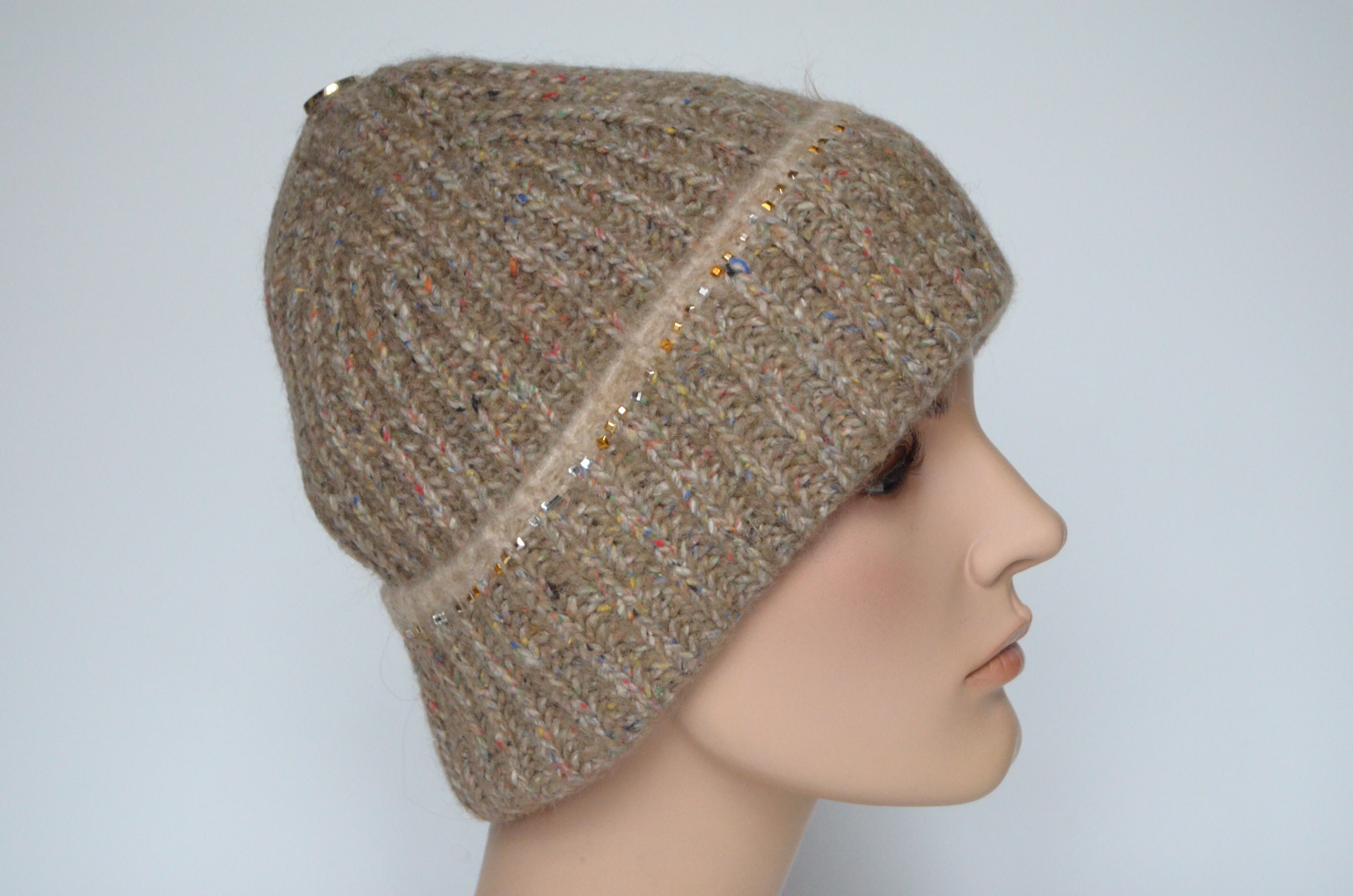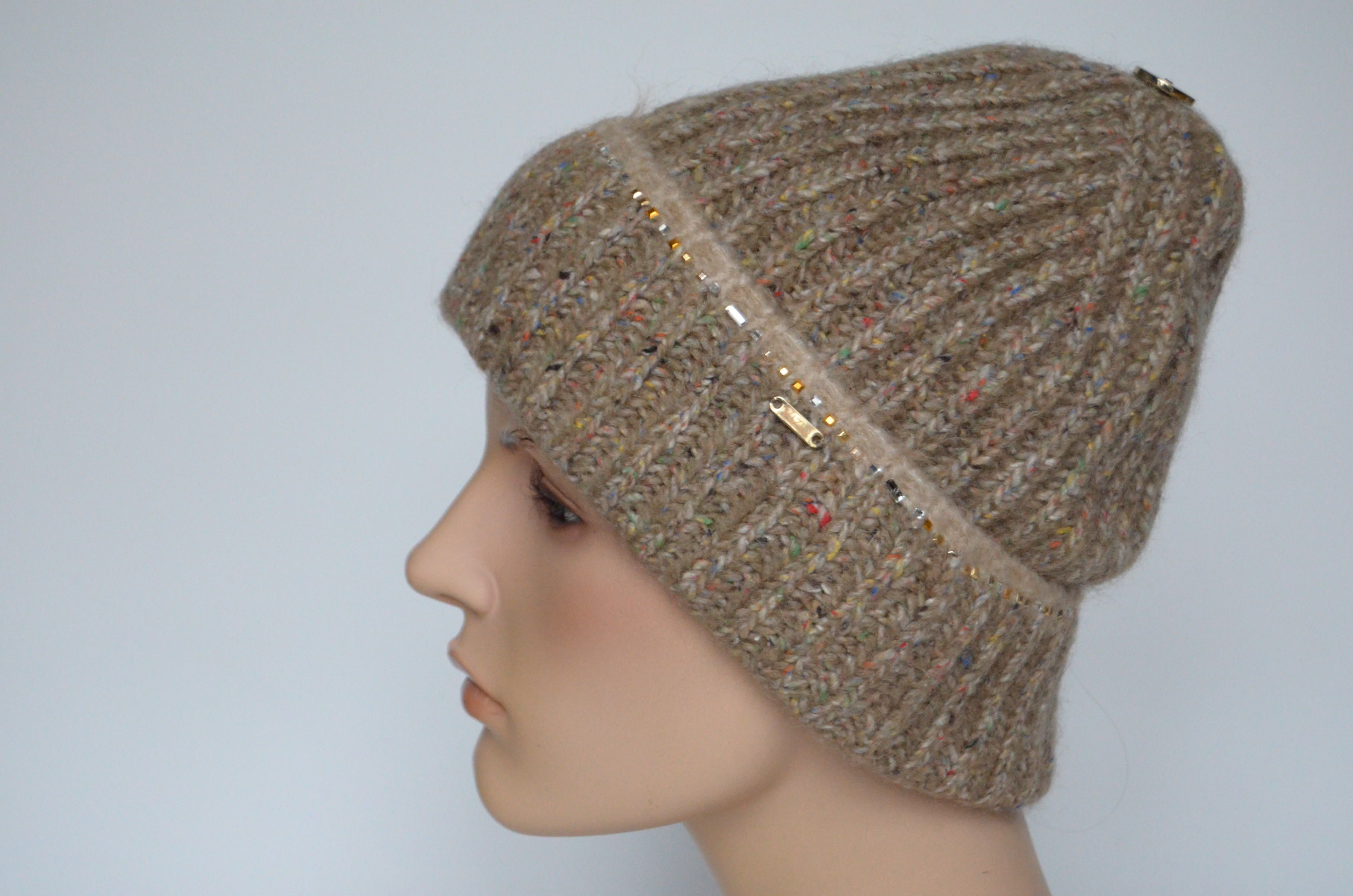 Зимняя вязаная шапка с отворотом для женщин Vizio Италия 6987 CRYО однослойная бежевая купить в Москве и России интернет магазин головных уборов Италии Визио