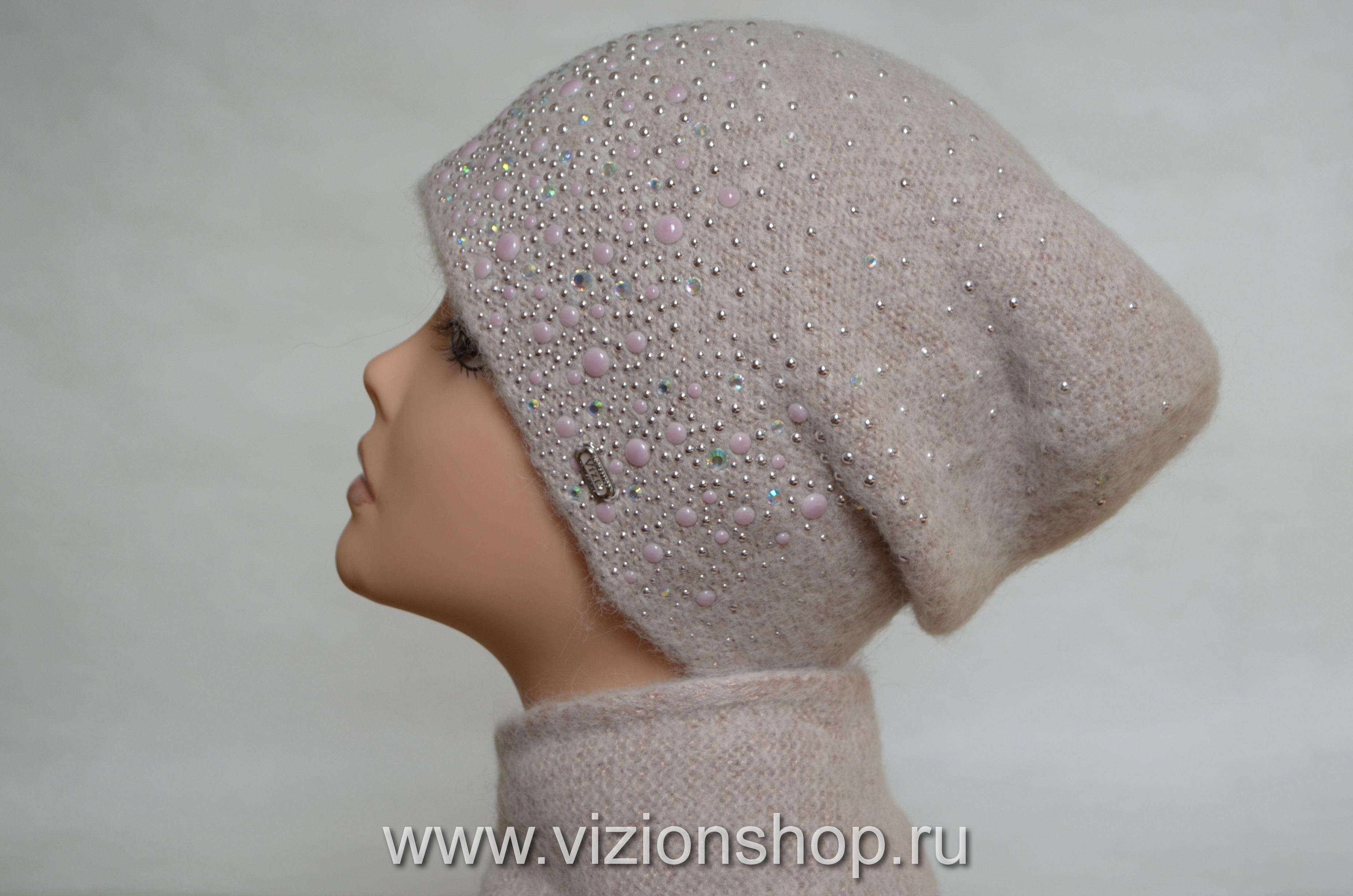 Шапка вязаная женcкая осень - зима 2018 - 2019 Визио Vizio 6110 розовая от производителя модных женских шапок Vizio Collezione в интернет магазине итальянских головных уборов для женщин