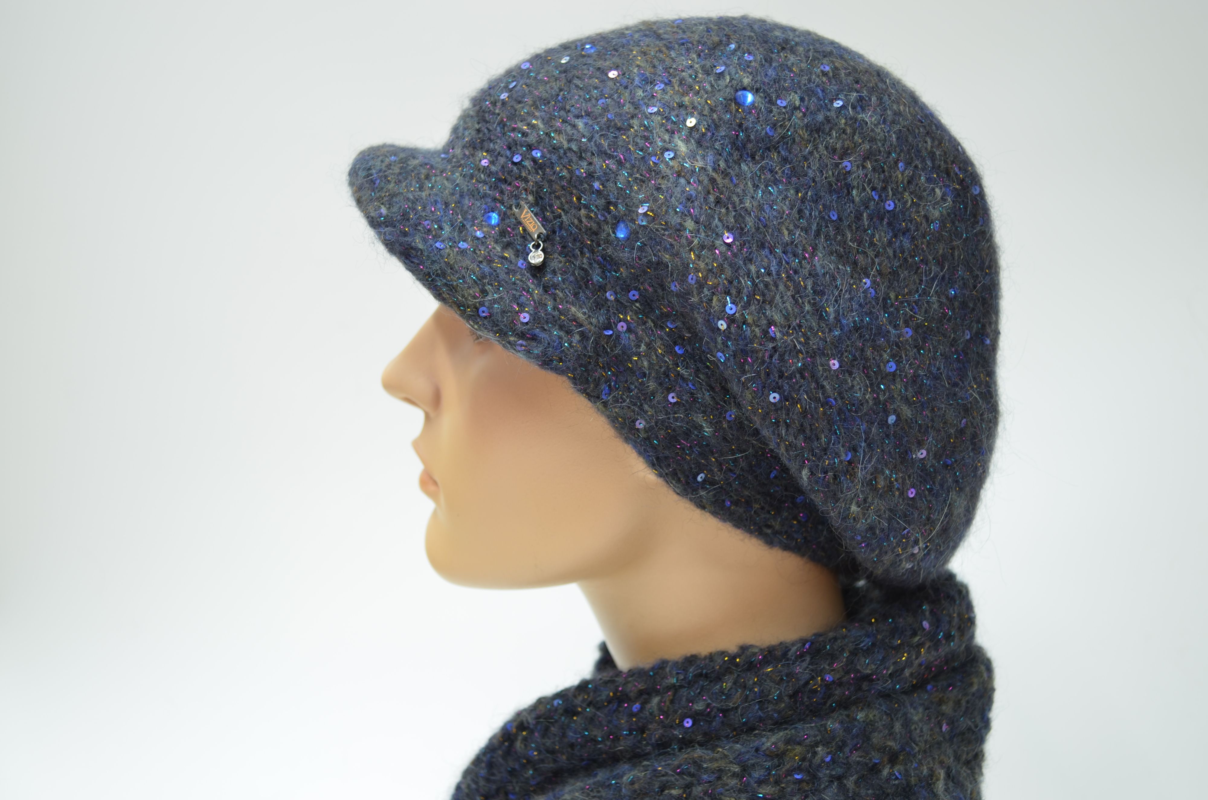 Вязаный узкий итальянский шарф синего цвета Vizio 1324 SS коллекция зимних итальянских шарфов и головных уборов Vizio Collezione зима