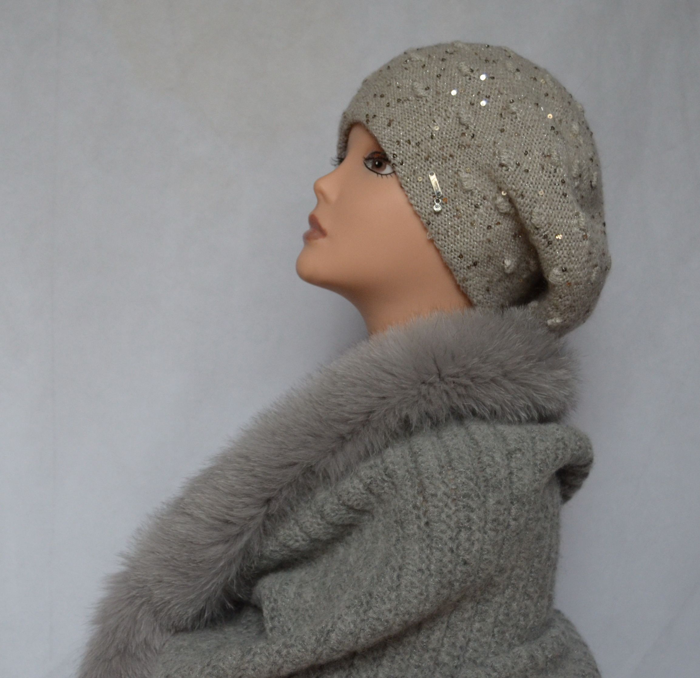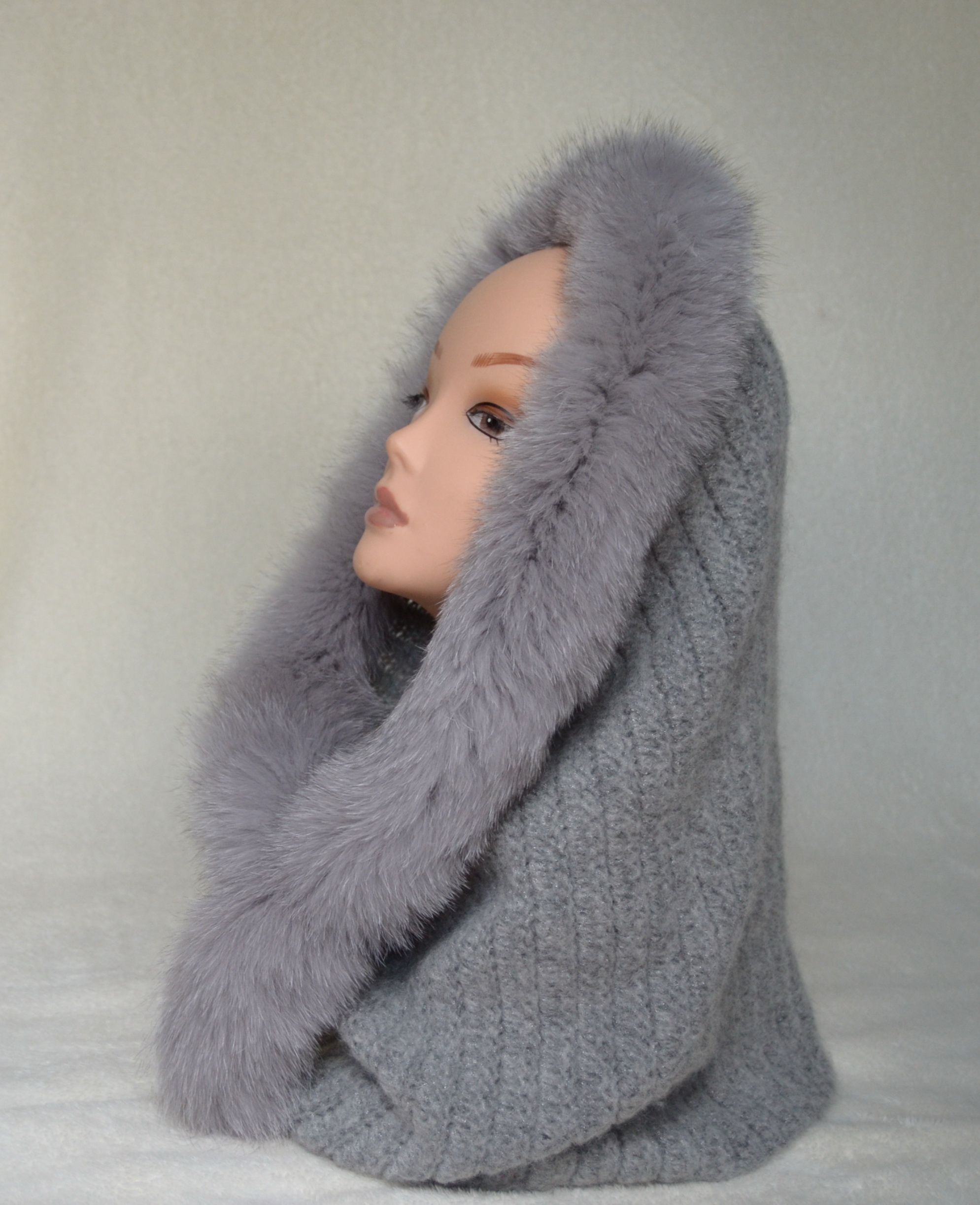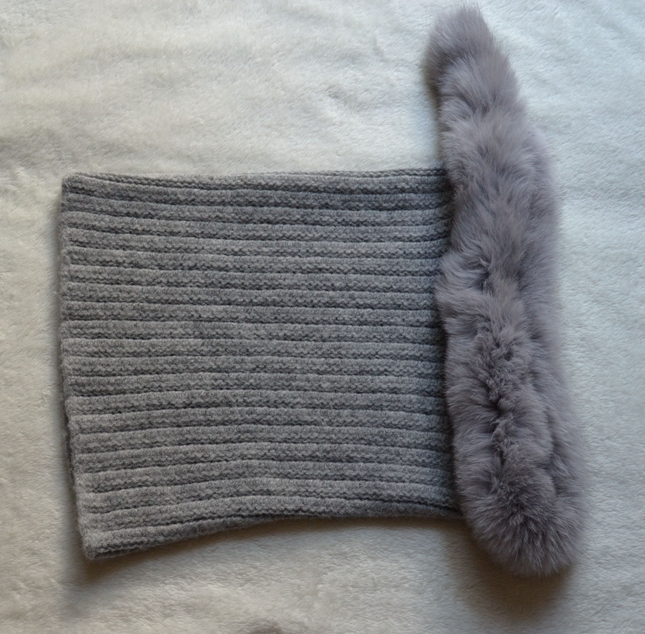 Вязаный женский шарф труба с мехом Vizio Италия Space KSP серый шарф с меховой оторочкой из коллекции модных итальянских шарфов с меховой отделкой зима 2019 - 2020 купить в интернет магазине головных уборов Италии в Москве или с доставкой по России