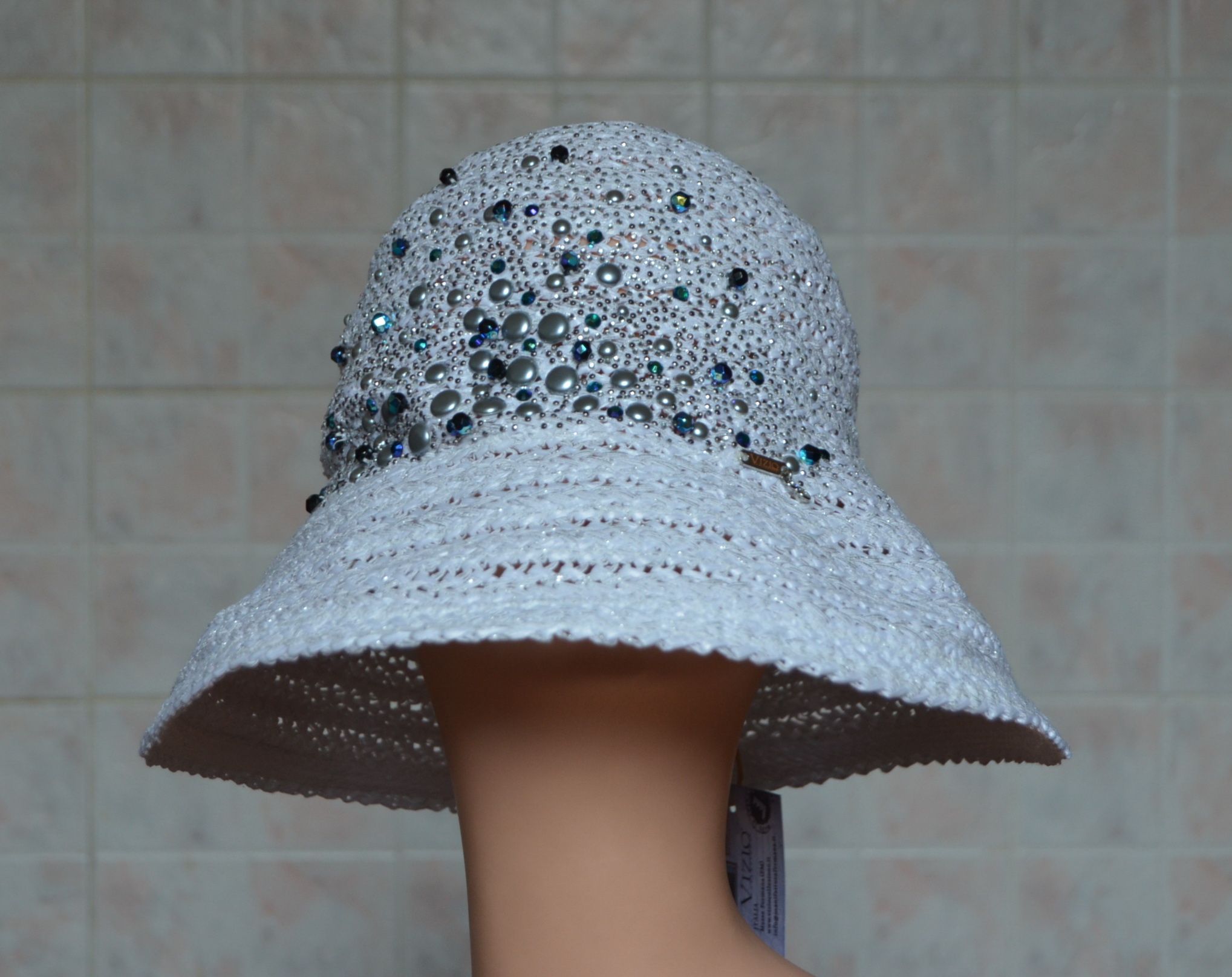 Женская шляпа с кристаллами и камнями Vizio Италия 5732 F1 из коллекции летних шляп Vizio Collezione Италия