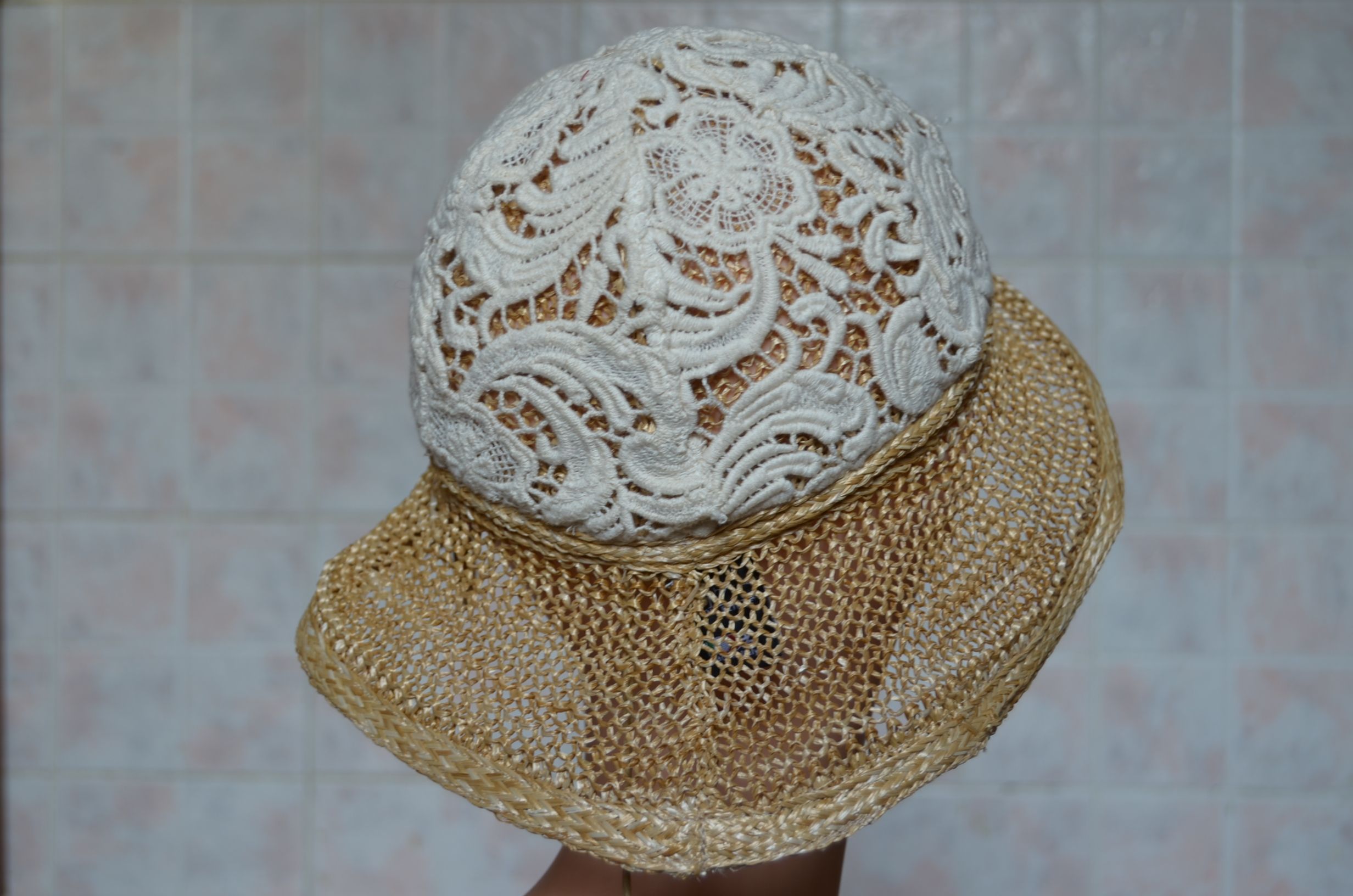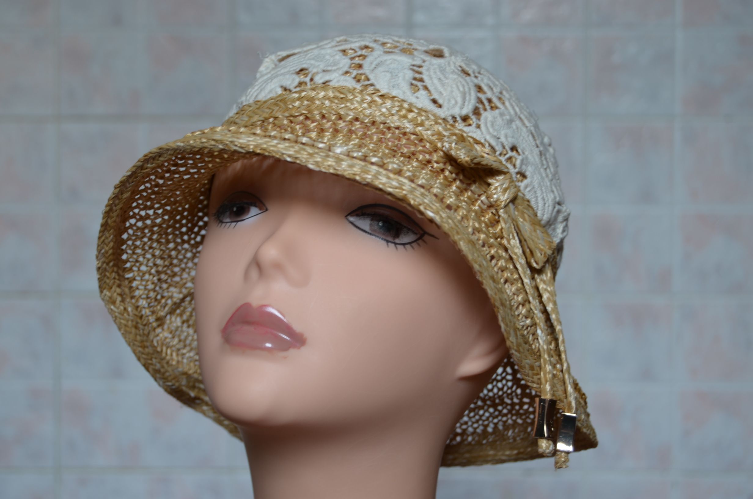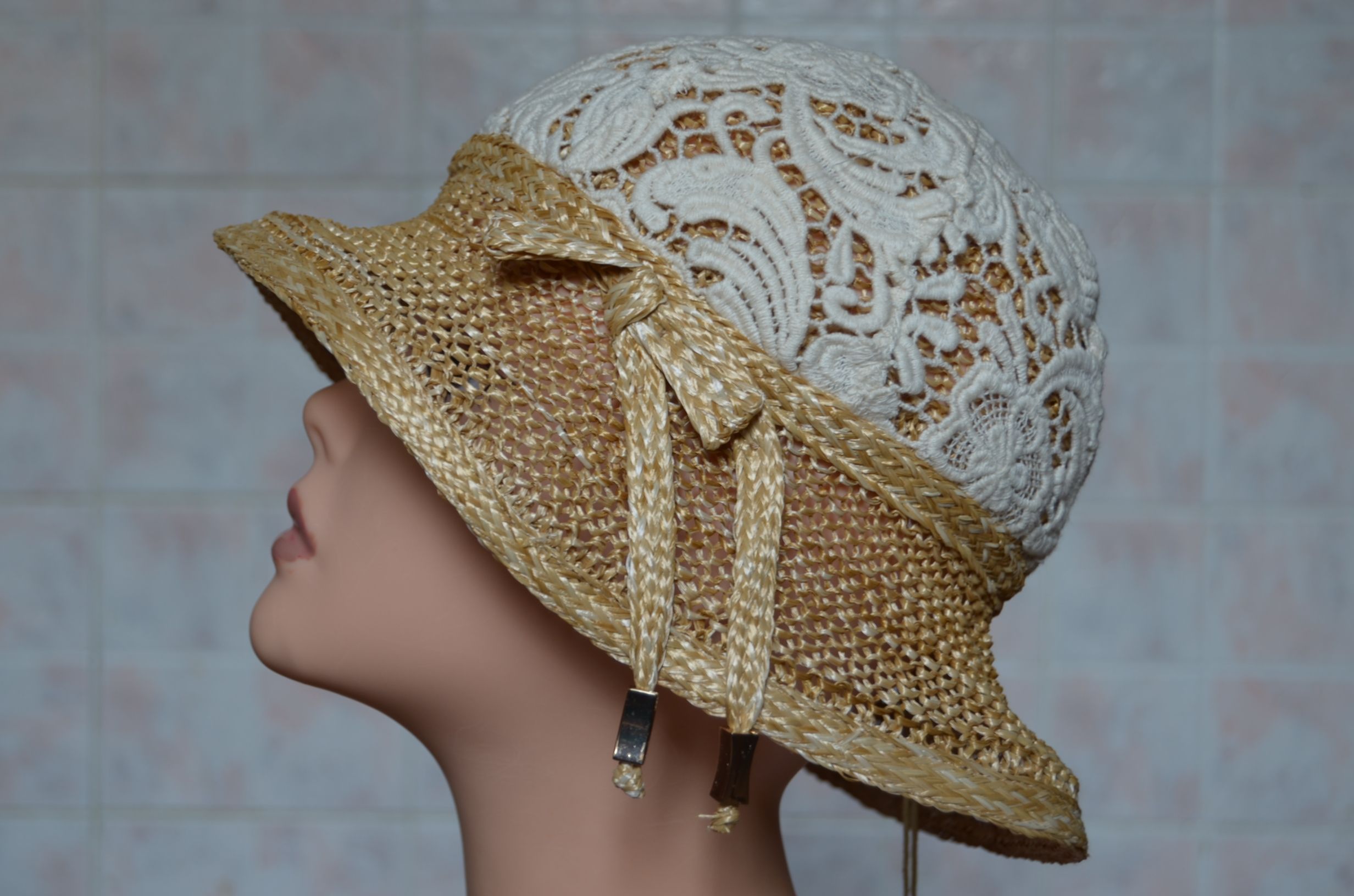 Соломенная шляпа с кружевом Vizio Италия 5740 MP женская шляпа из коллекции шляп из вискозной соломки с кружевом из хлопка Vizio в интернет магазине вязаных шляп из Италии