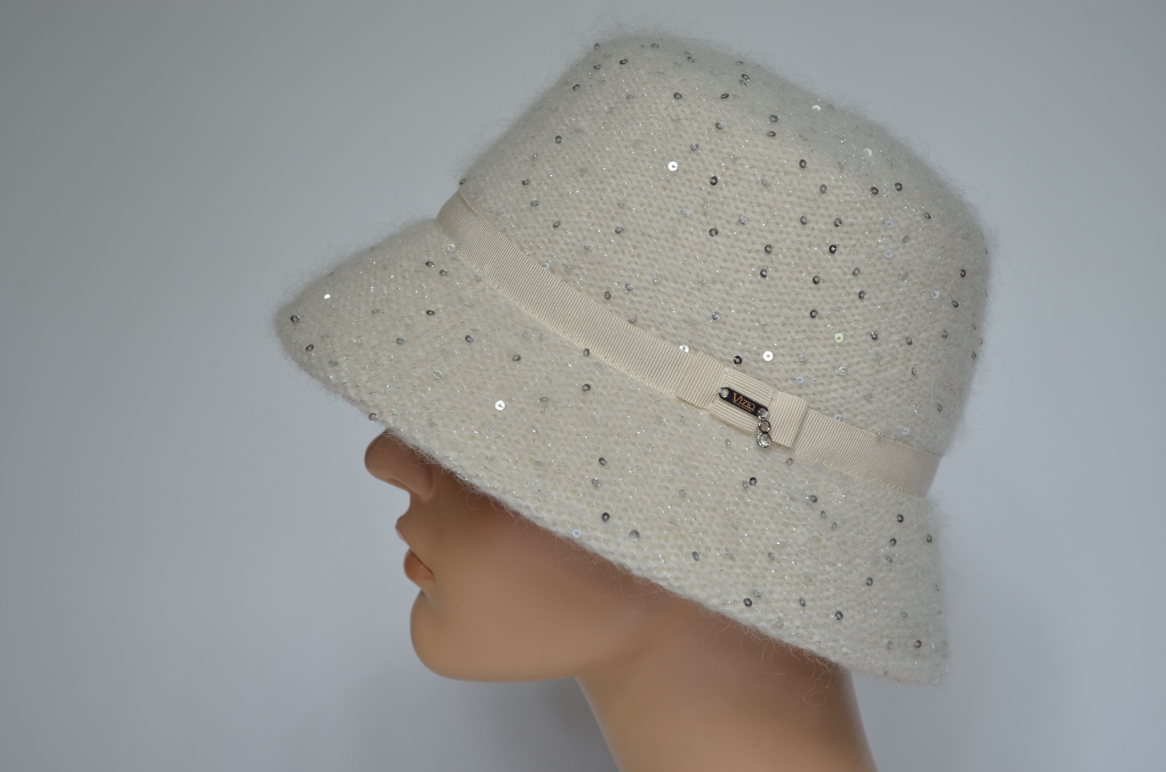 Итальянская фетровая зимняя шляпа с пайетками Vizio PL 1350 белого цвета. Коллекция дизайнерских шляп Италии Визио из фетра с вязаной отделкой осень - зима 2024 - 2025