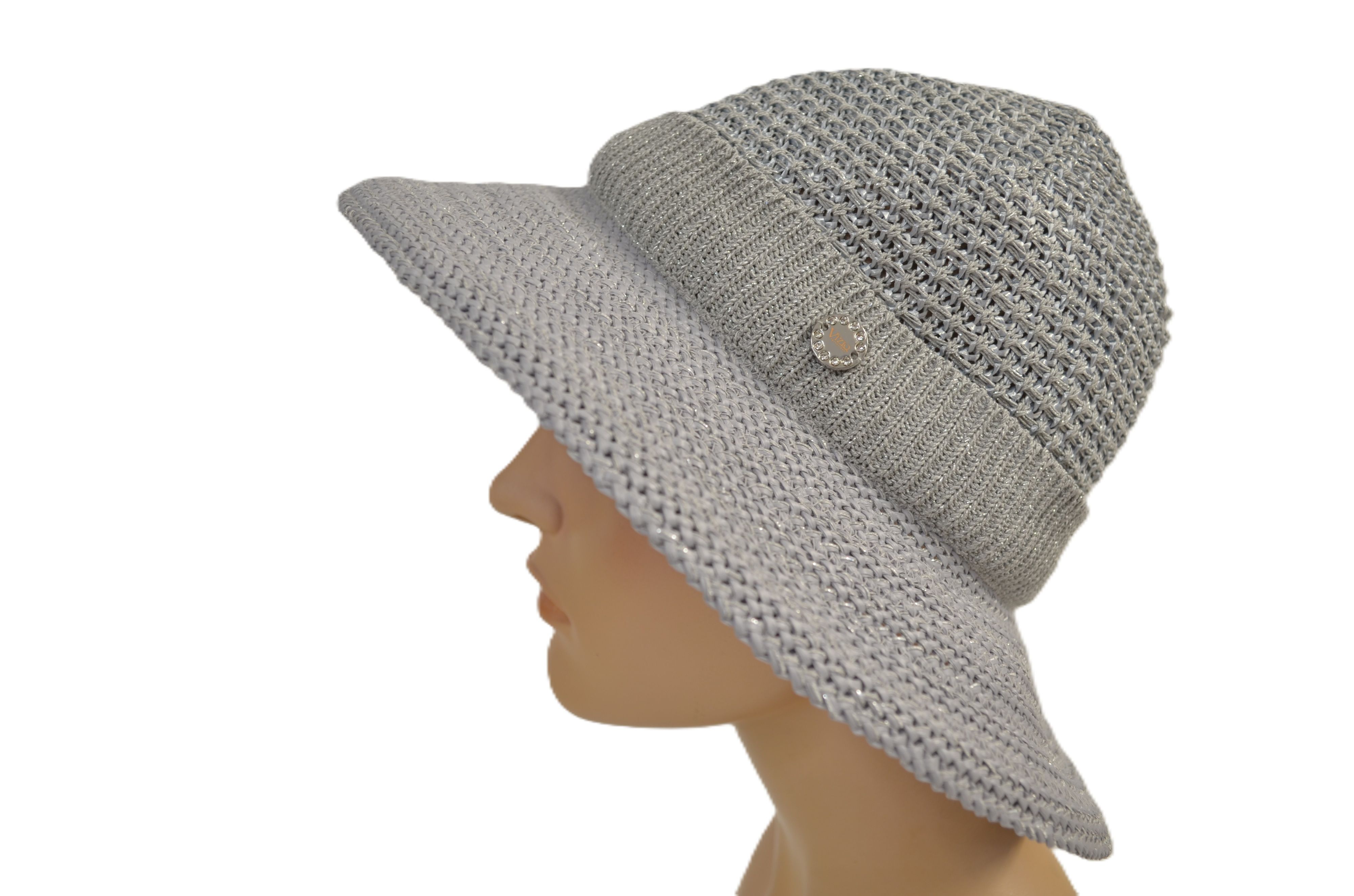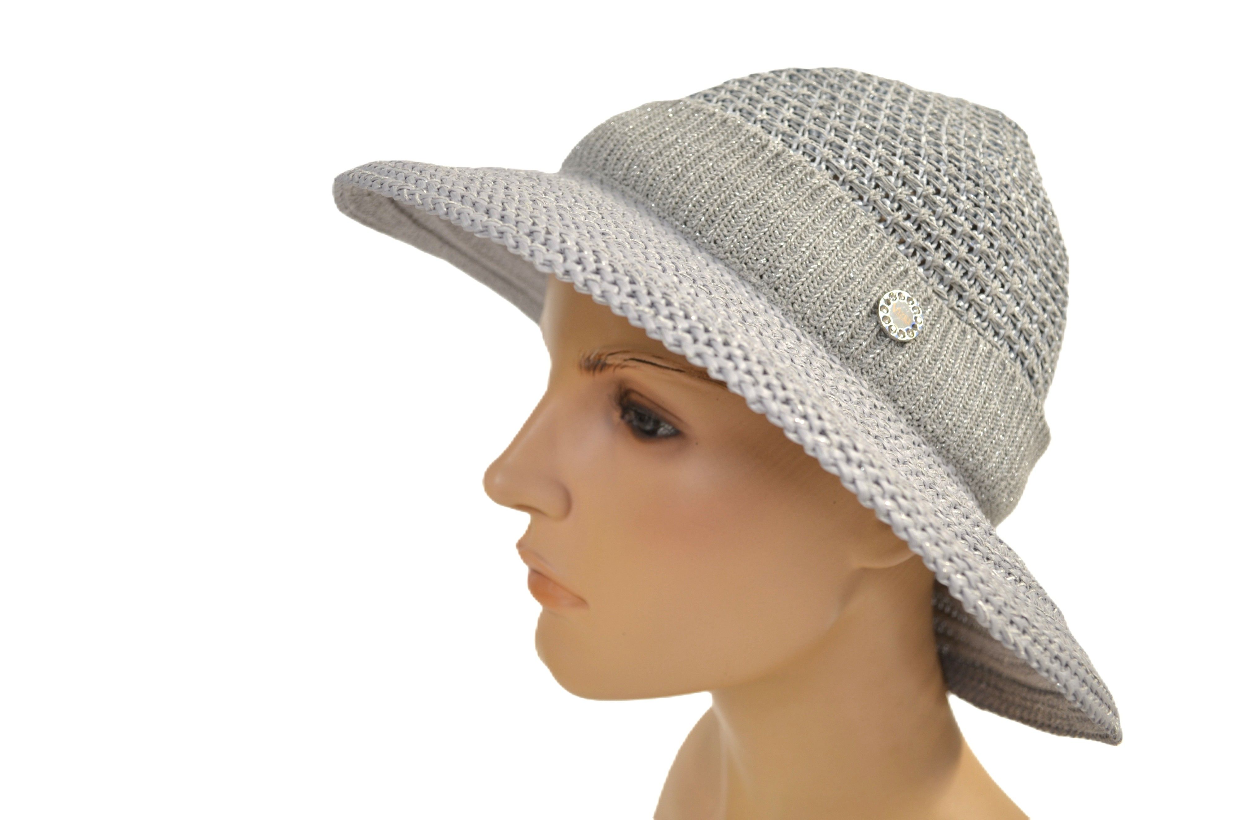 Летняя вязаная шляпа из хлопка и вискозы для женщин Vizio 1500 серая коллекция женских головных уборов Италии весна лето осень 2025