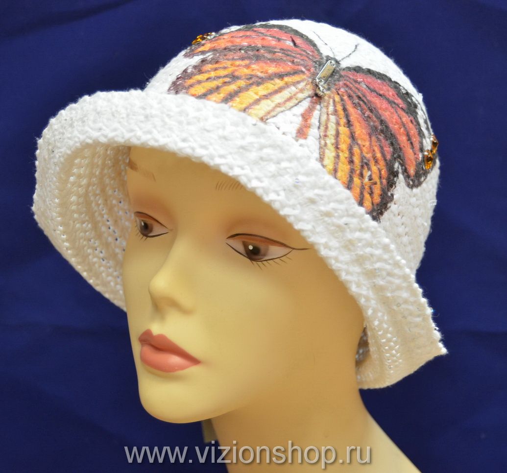 Шляпка с принтом бабочка Vizio Италия 5456 Р белая женская шляпка из коллекции летних шляпок 2016 от производителя женских вязаных шляп, шапок и беретов Vizio Collezione купить в интернет магазине женских головных уборов с доставкой по Москве и России