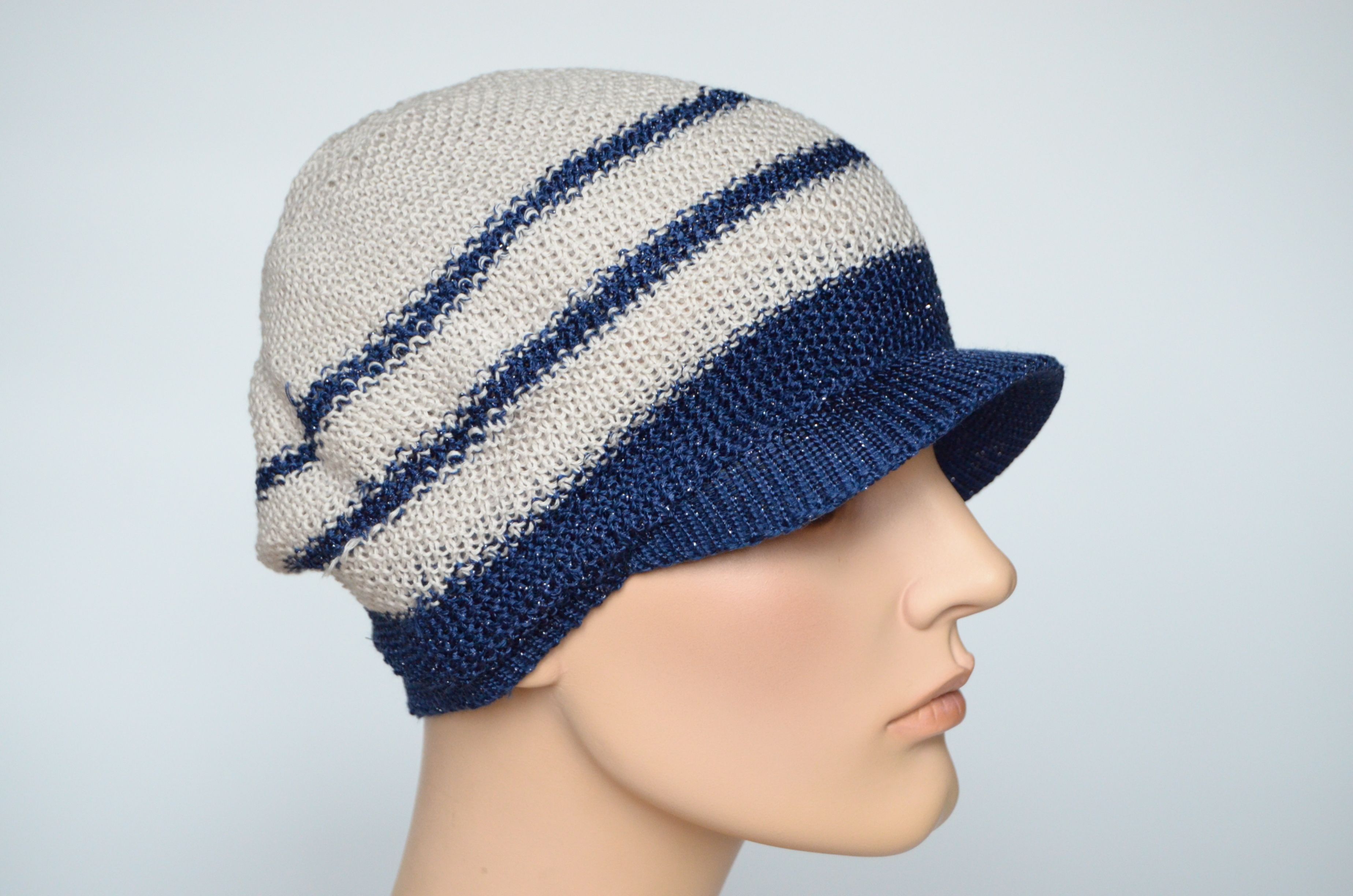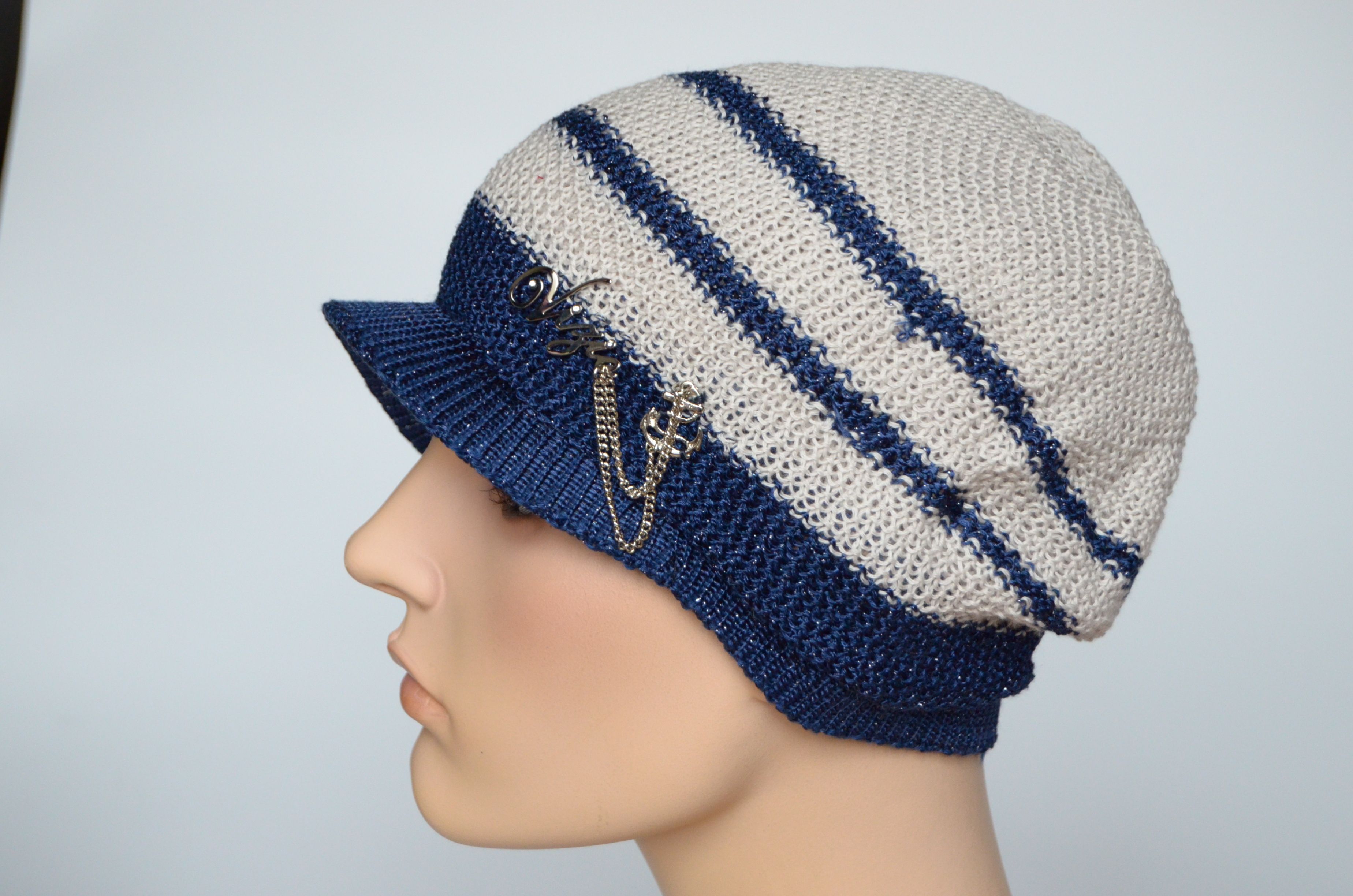 Кепка женская летняя сине - бежевая Vizio Италия 5038 из коллекции вязаных кепок от производителя женских головных уборов Vizio Collezione в интернет магазине итальянских головных уборов для женщин