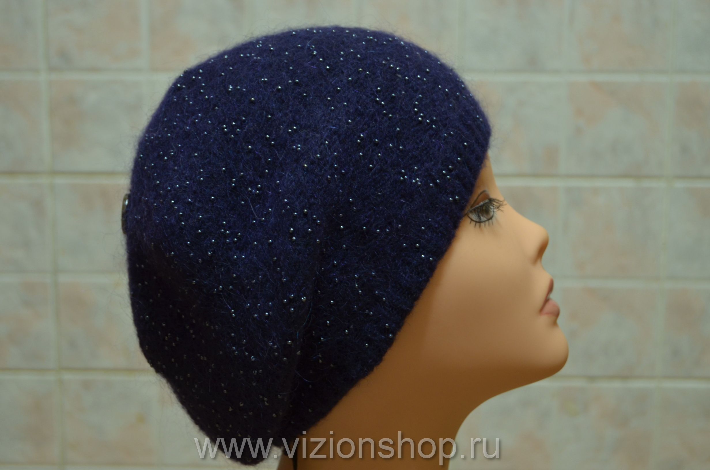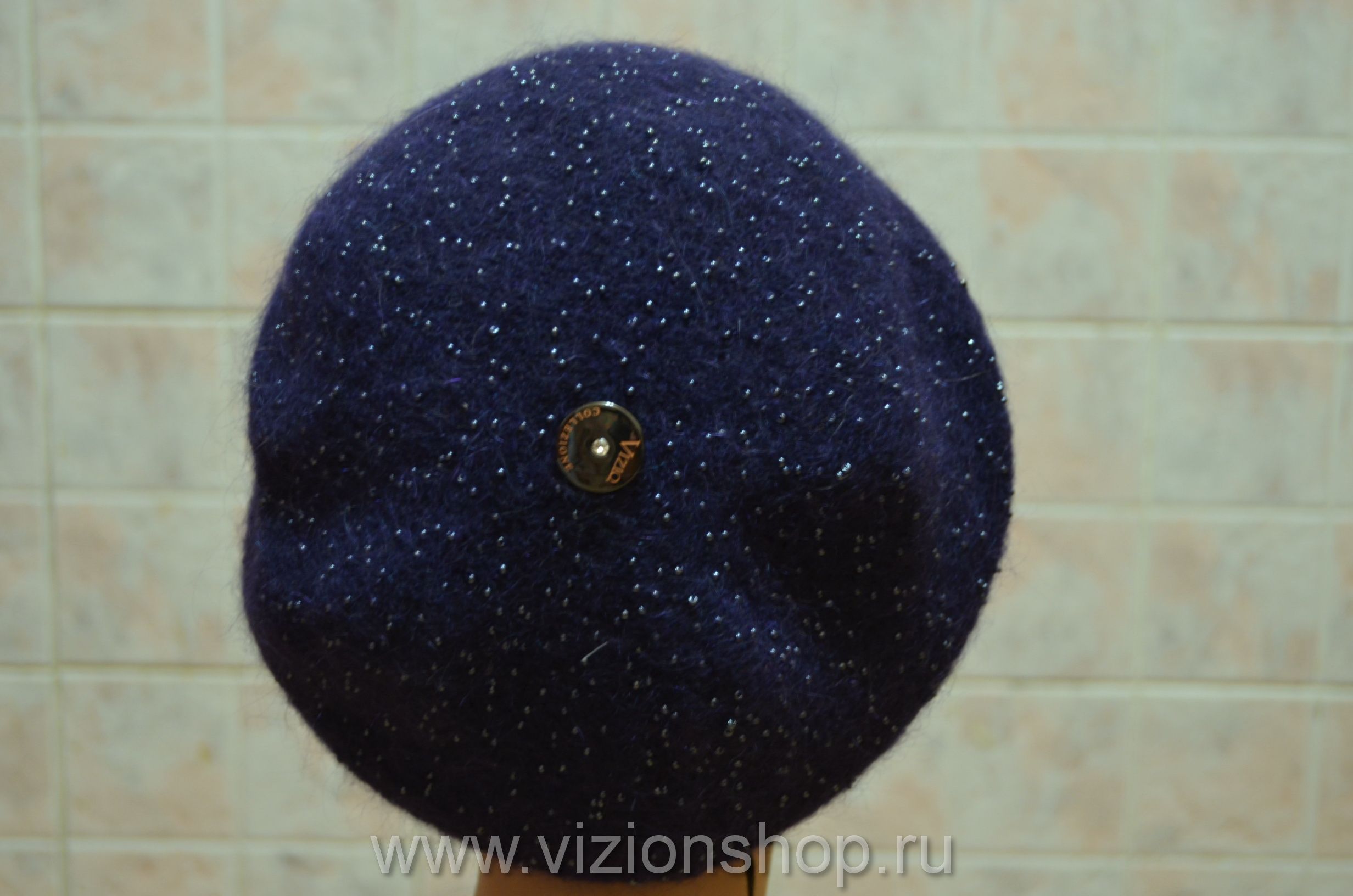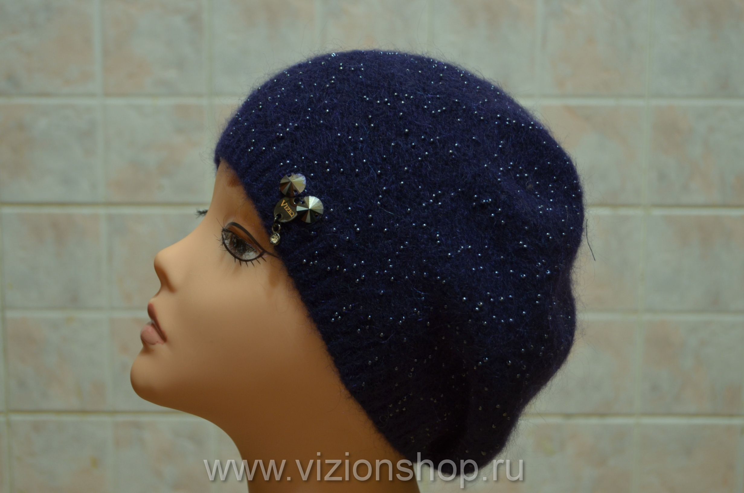 Синий тонкий берет с бусинками Vizio Италия 5503 из коллекции женских беретов осень - зима 2016 - 2017