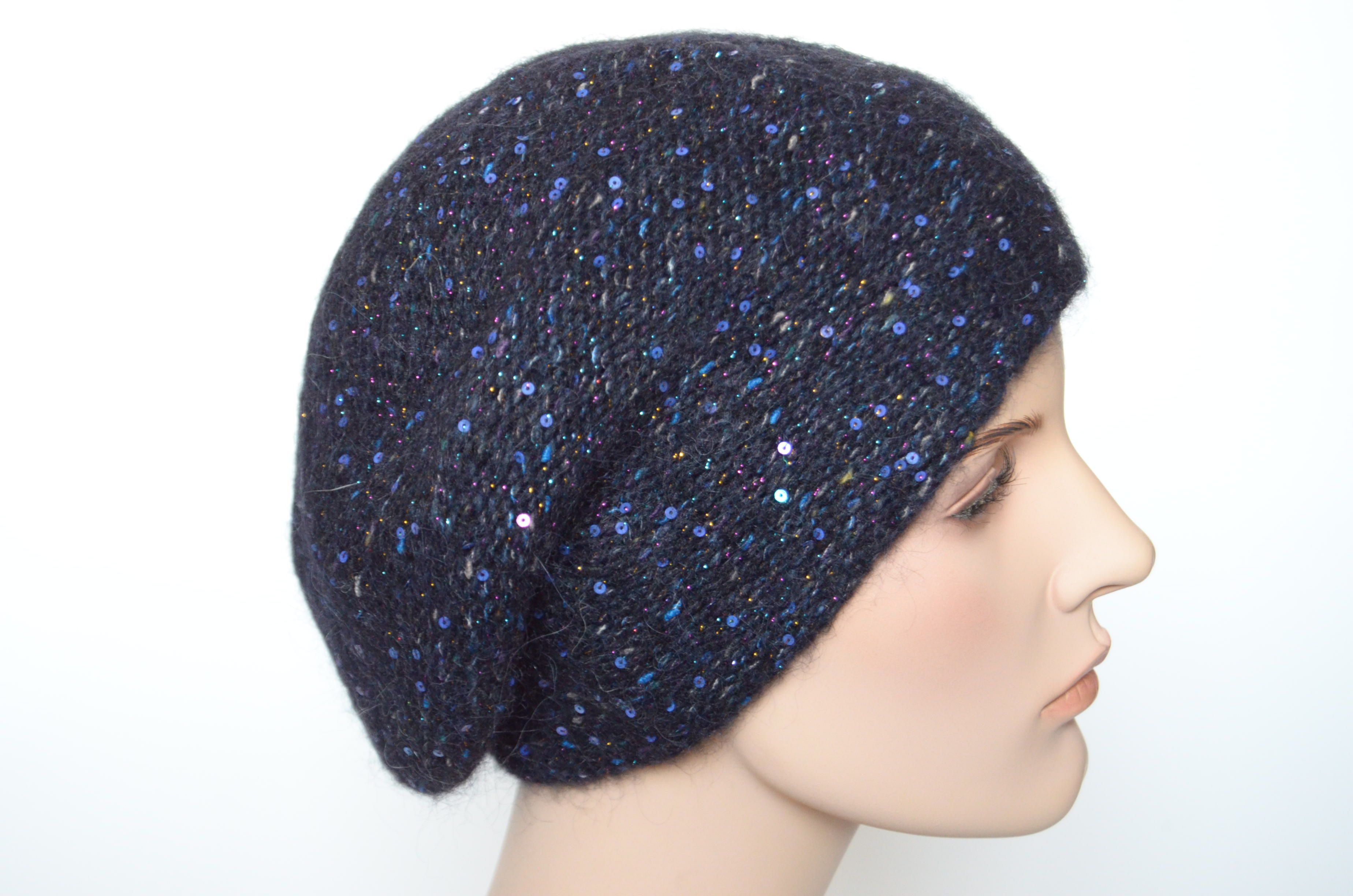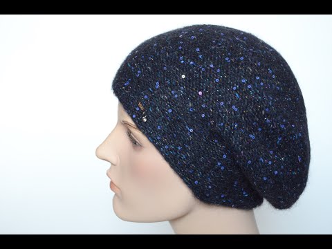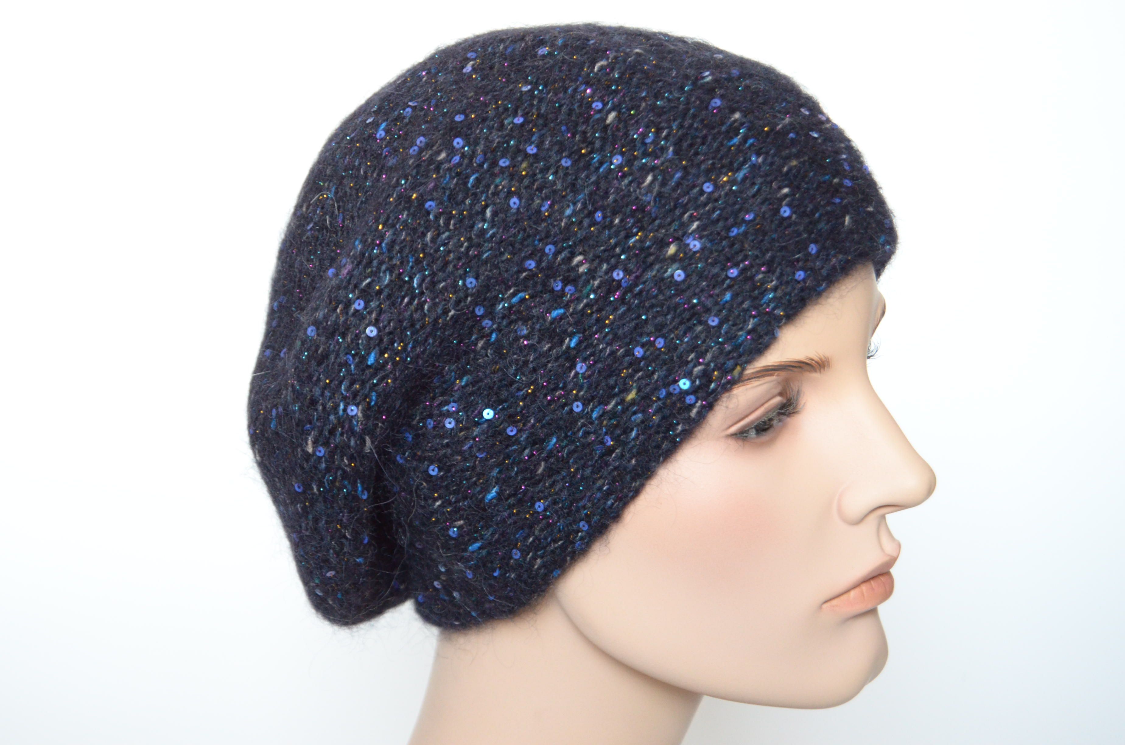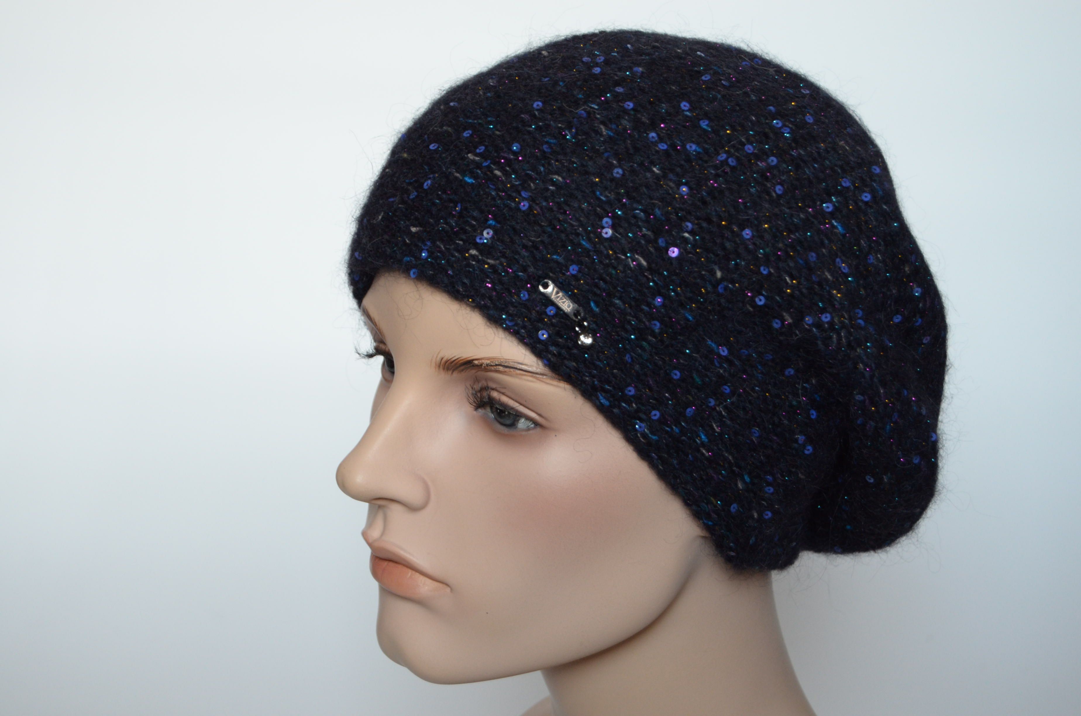 Вязаный меланжевый берет синего цвета с пайетками зима 2022 - 2023 Vizio Италия 6926 ( 8023) купить в магазине итальянских женских шапок и беретов в Москве и с доставкой по России
