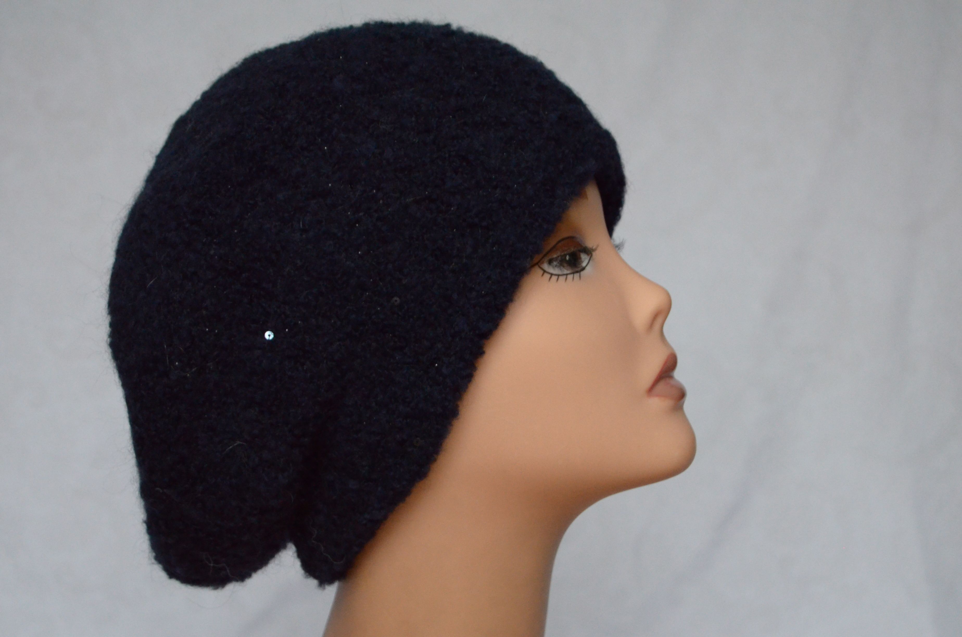 Синий итальянский мохнатый берет вязаный с пайетками Vizio Италия 6405 купить в магазине шапок и беретов Италии Визио