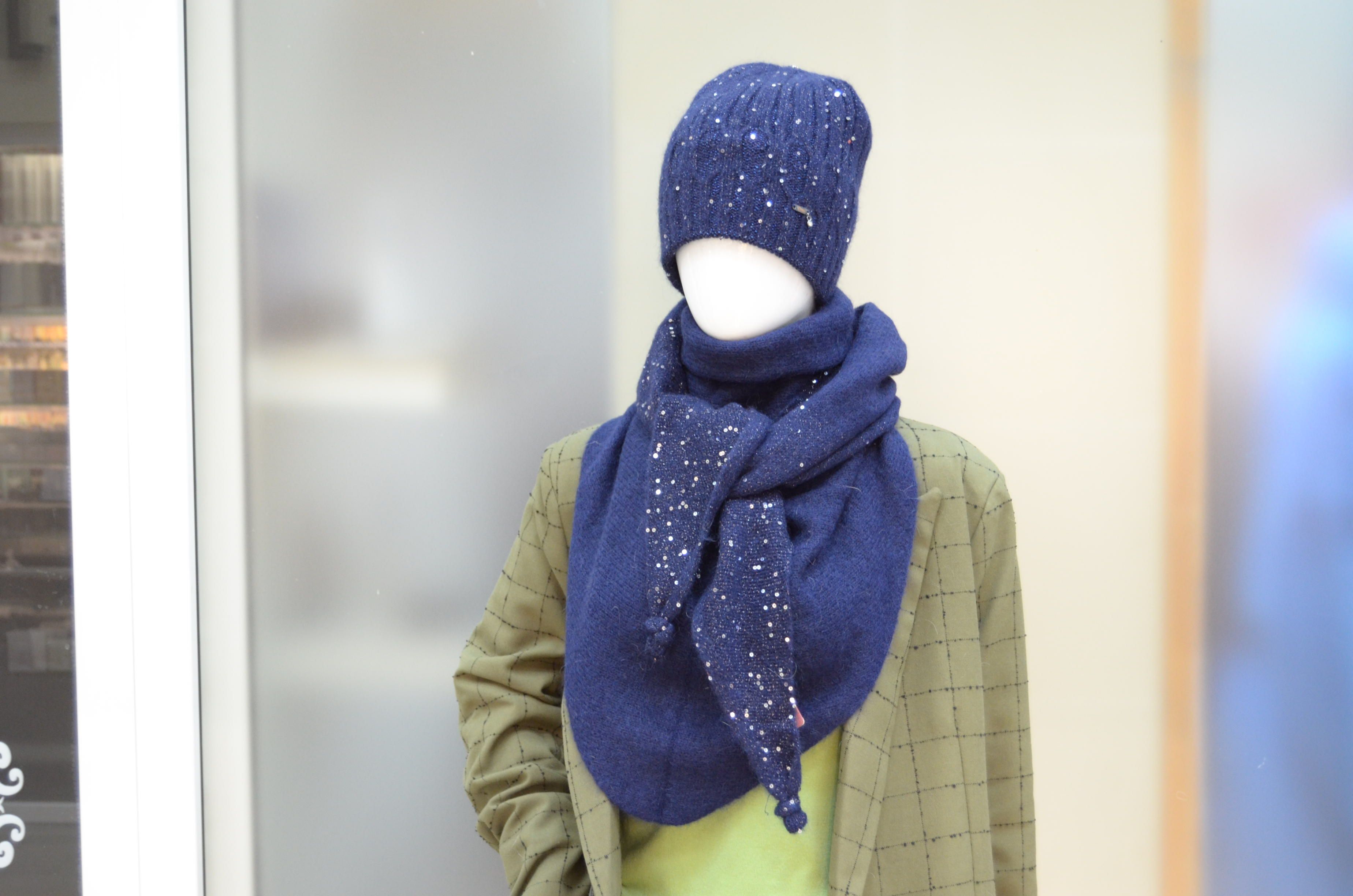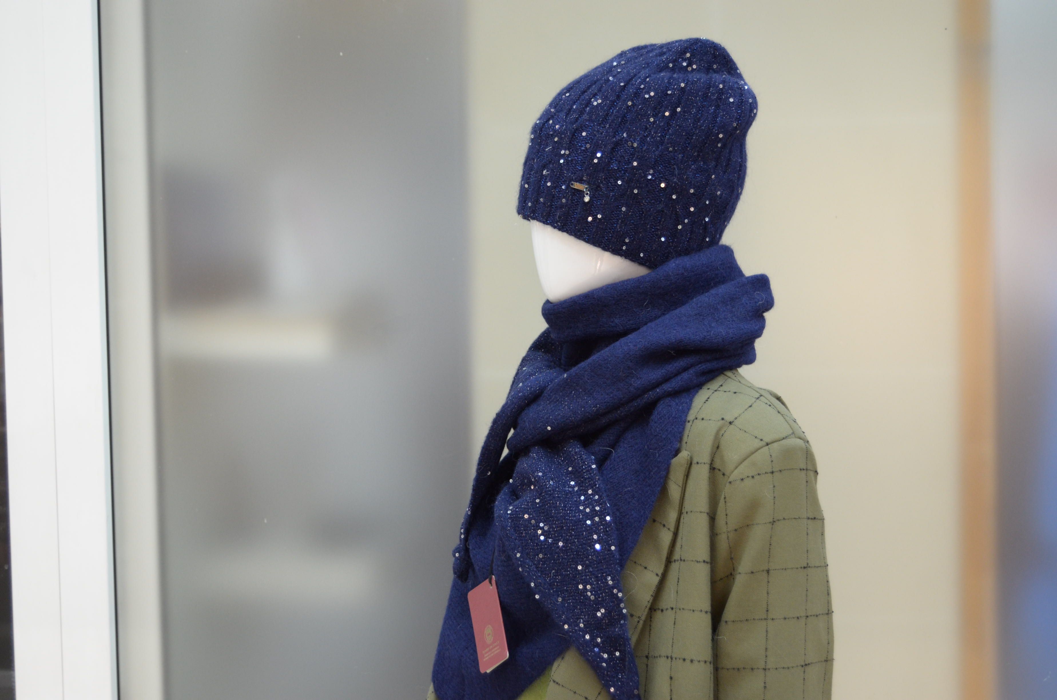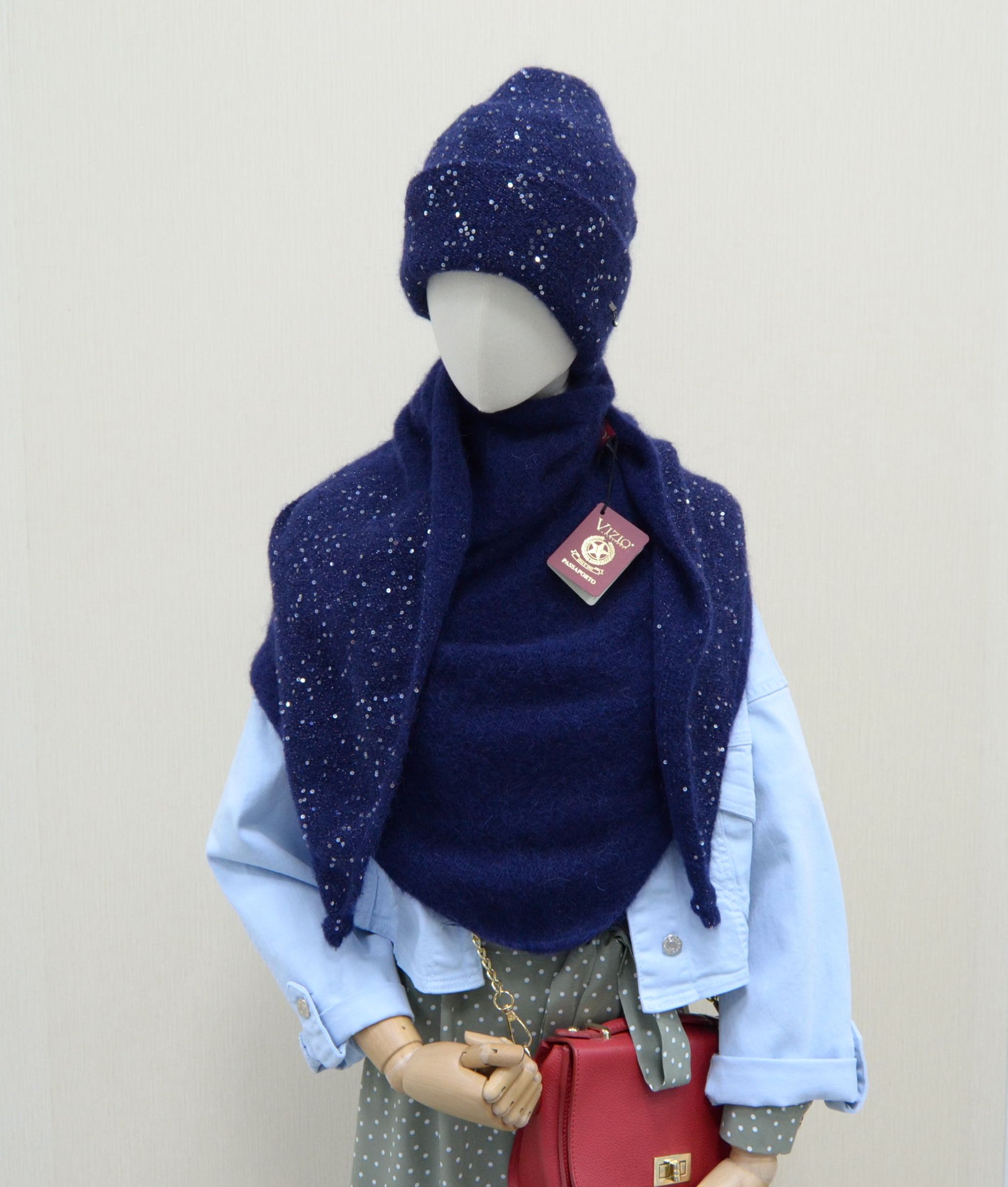 Итальянский синий шарф платок вязаный для женщин Vizio Италия 6943 ST ( новая коллекция 8067 ST ) коллекция платков Визио Италия под комплект с женскими шапками, беретами, шляпами и кепками Италии Визио с пайетками