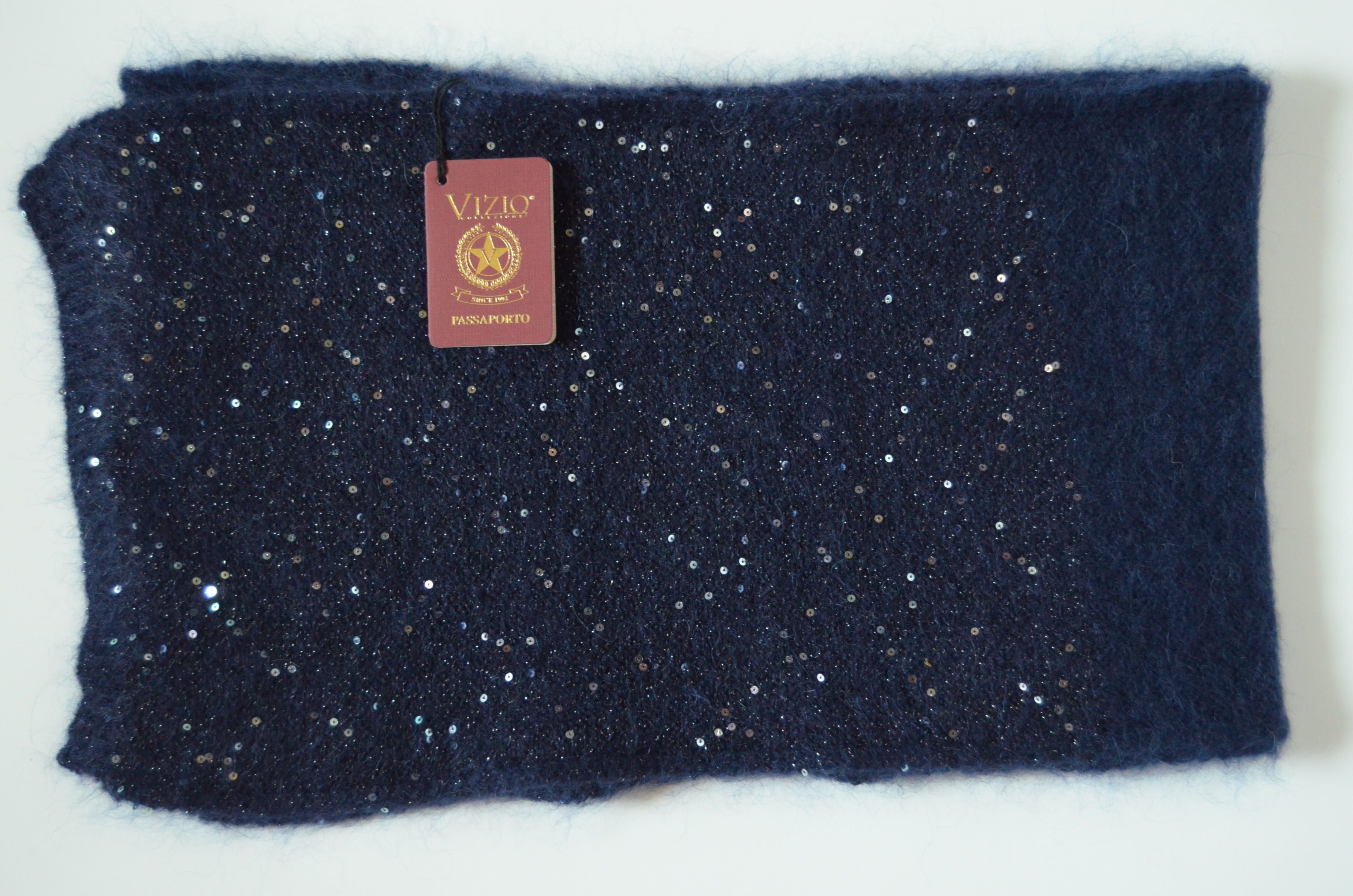 Приобрести итальянский вязаный шарф Vizio синего цвета с пайетками Вы можете в интернет магазине головных уборов и шарфов Италии Визио с бесплатной доставкой по Москве и России