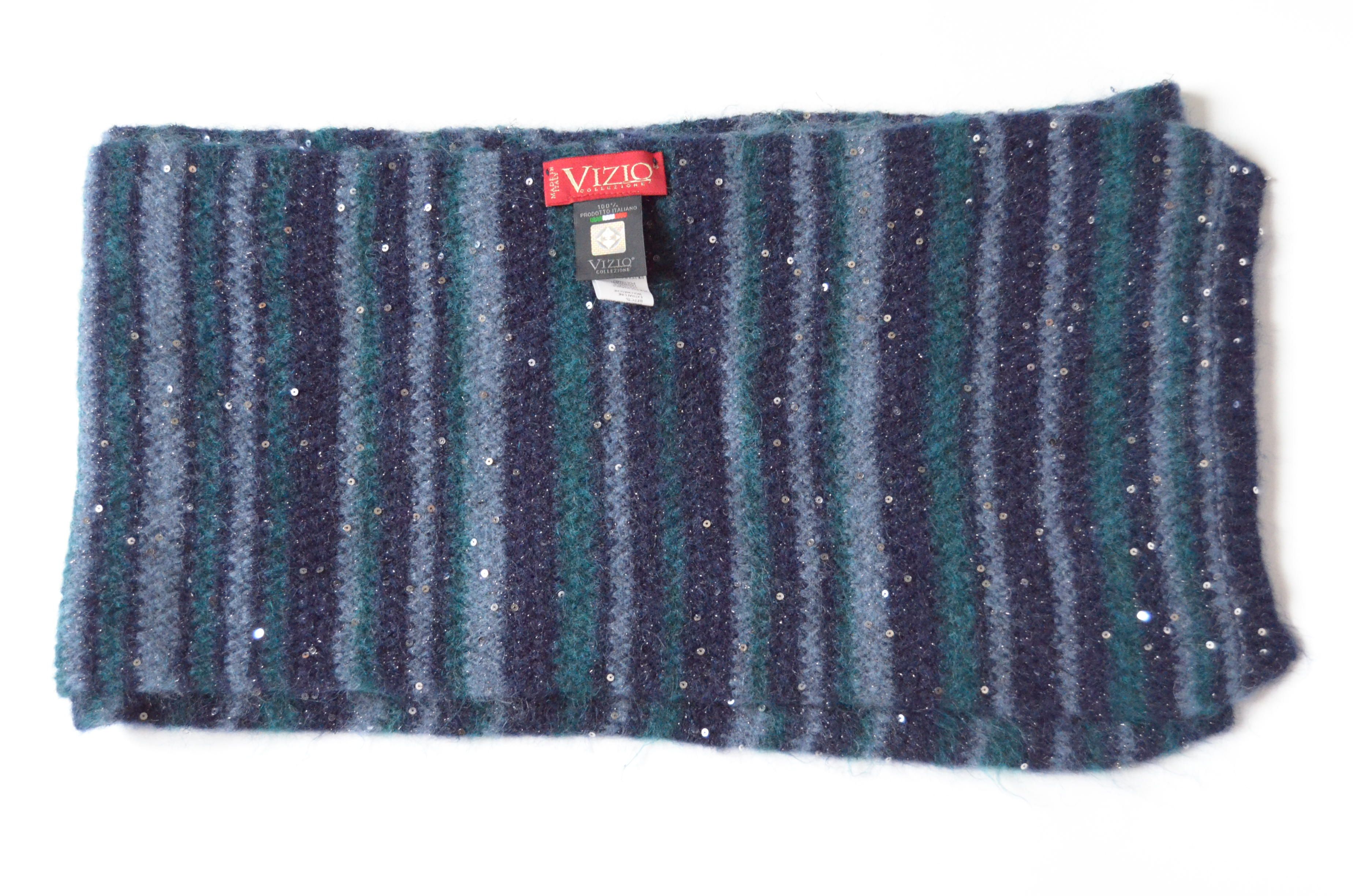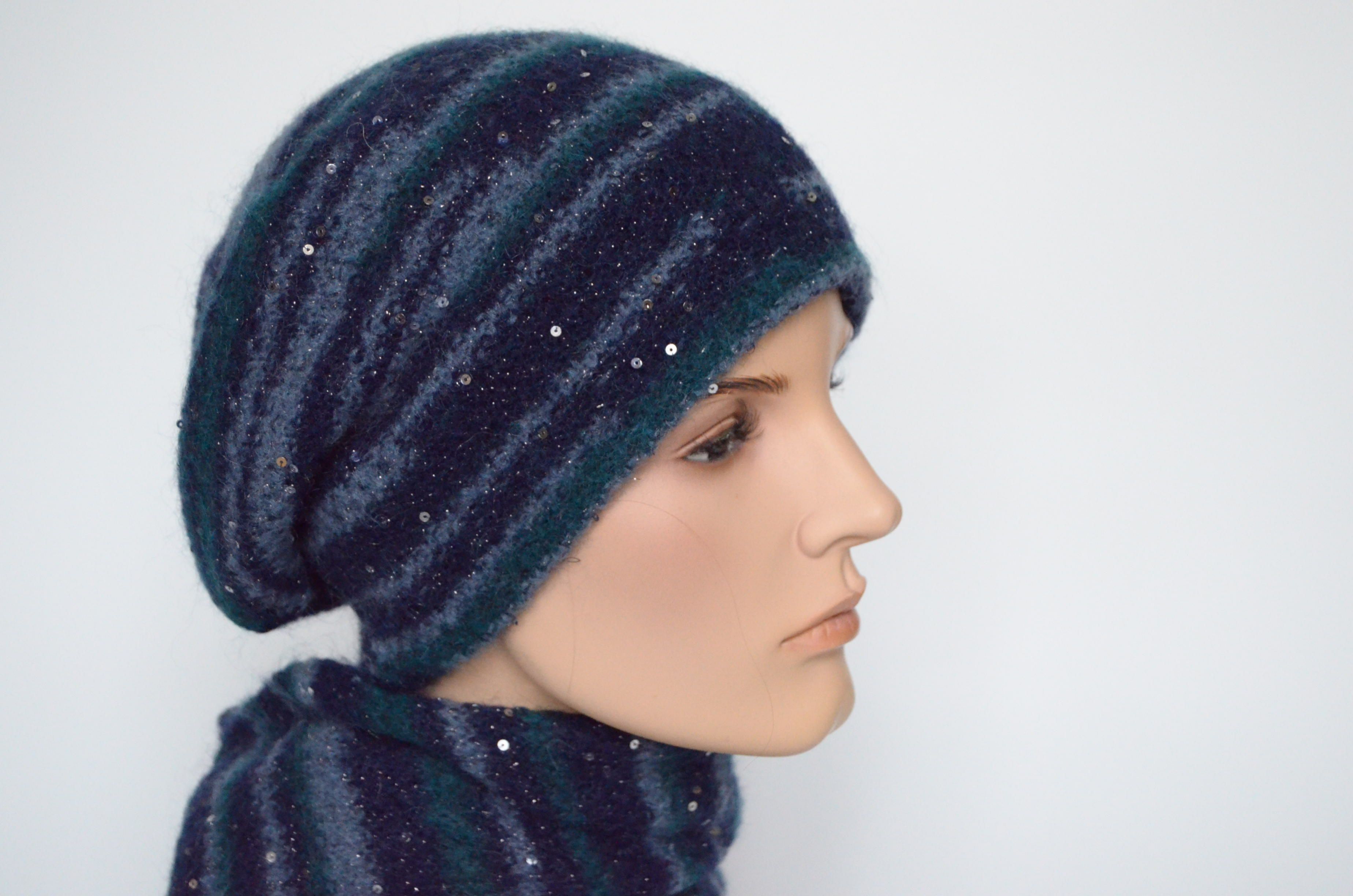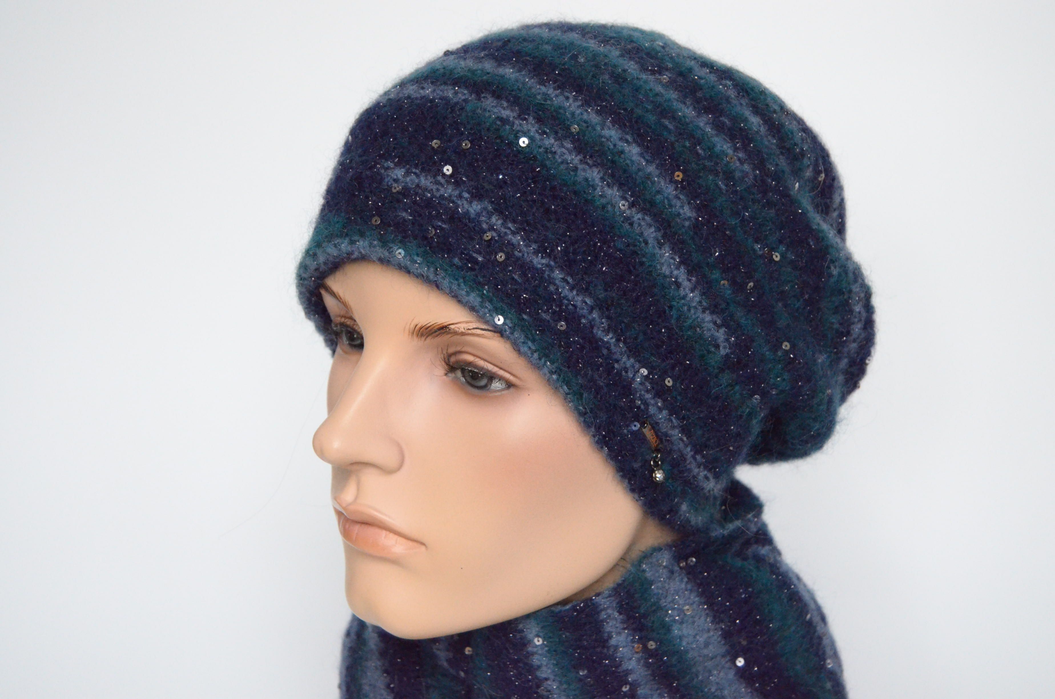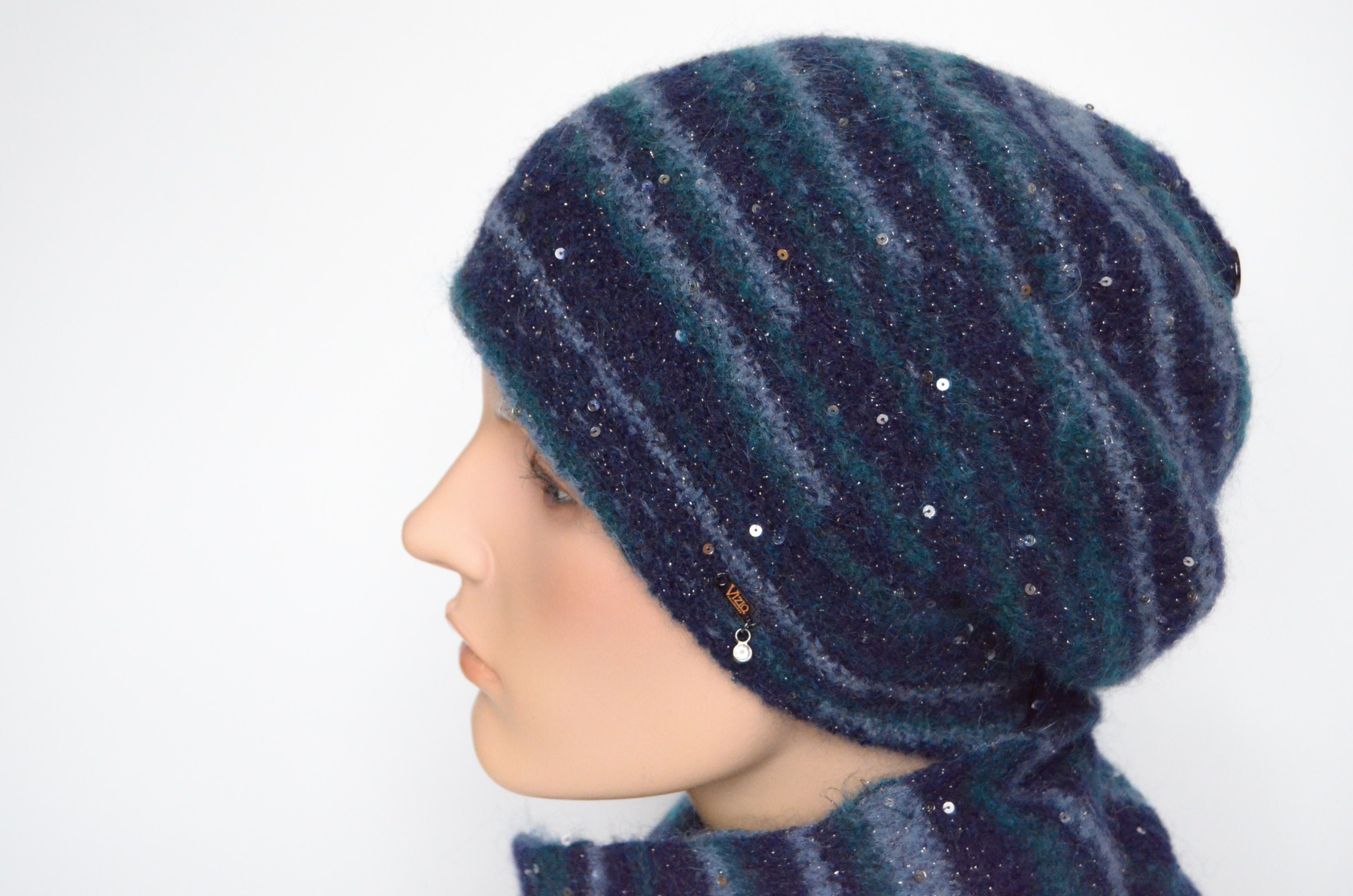 Берет вязаный синий с пайетками Vizio Италия 8066 В зима 2022 - 2023 купить в магазине итальянских головных уборов для женщин Vizio Collezione