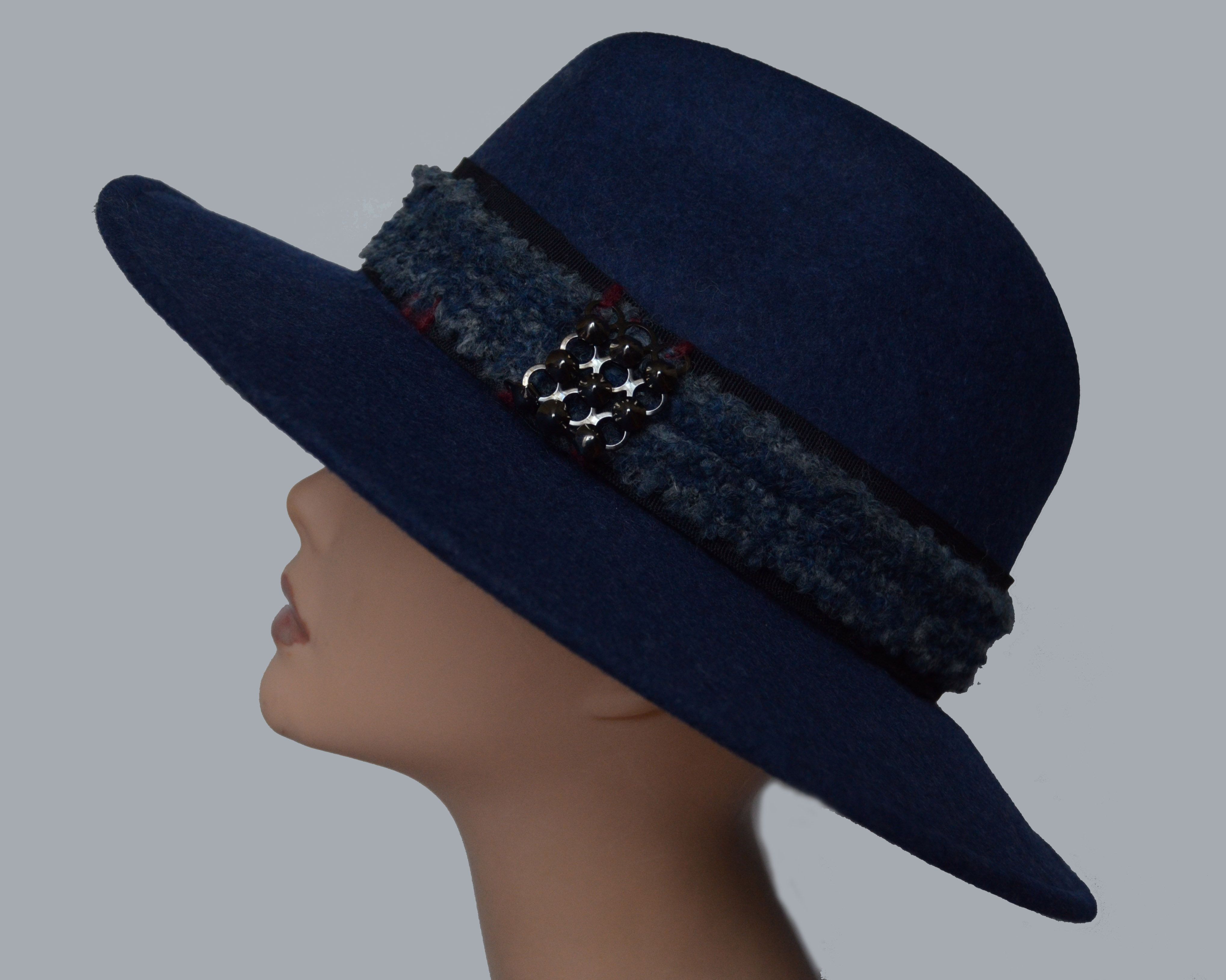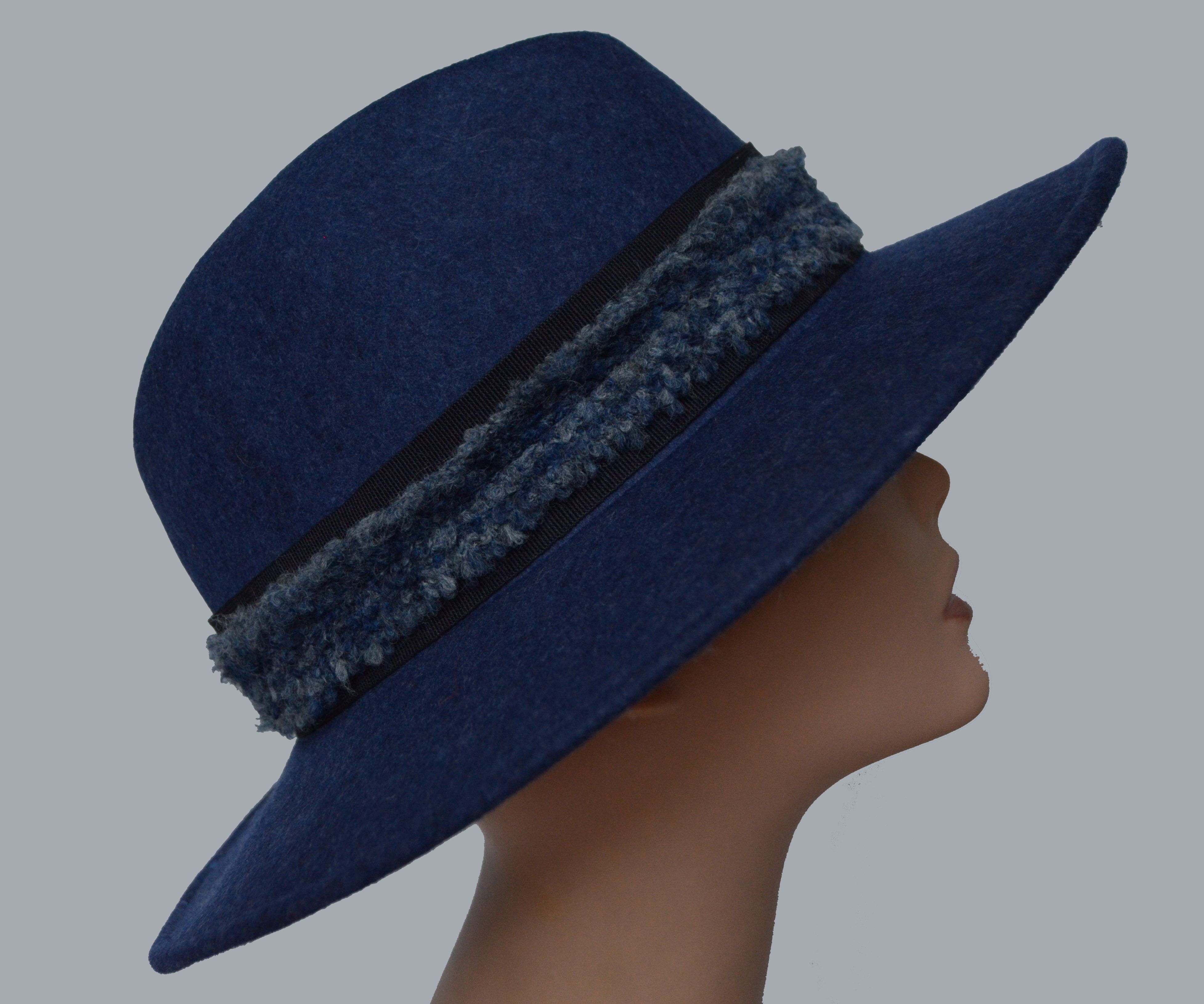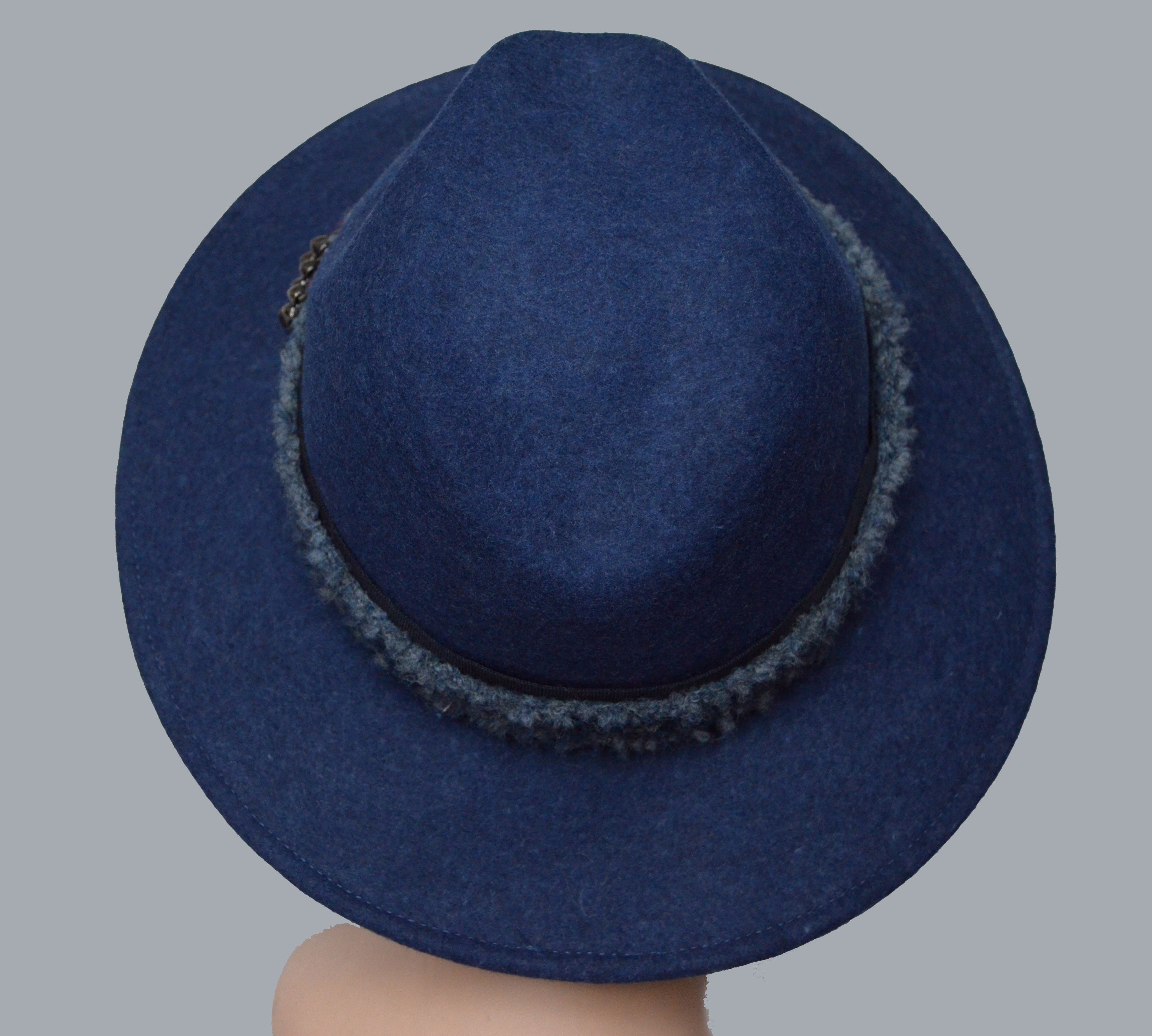 Шляпа фетровая синяя женская зимняя Италия Vizio 6133 AF зима 2019 купить в интернет магазине фетровых шляп для женщин