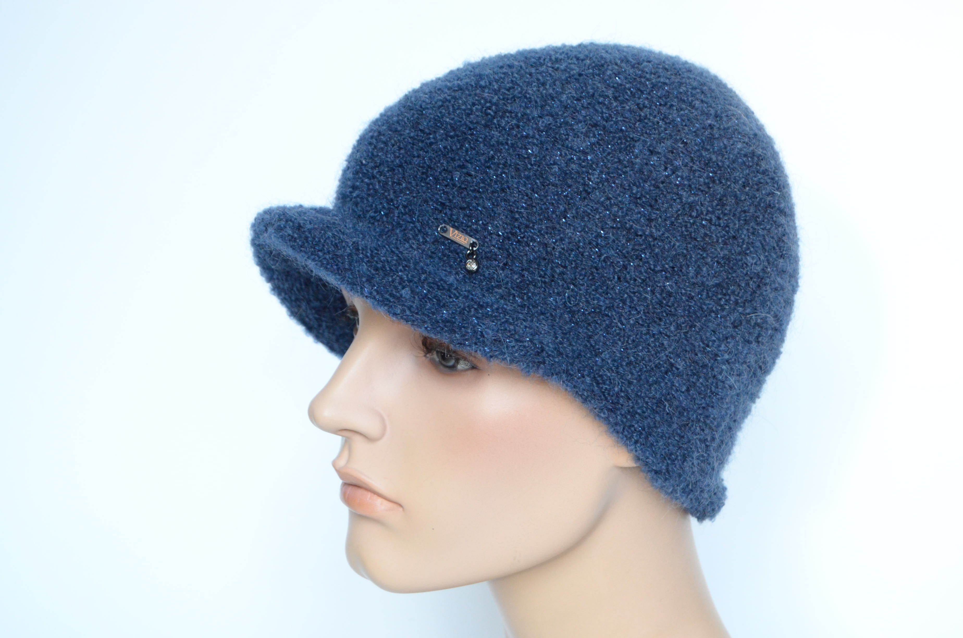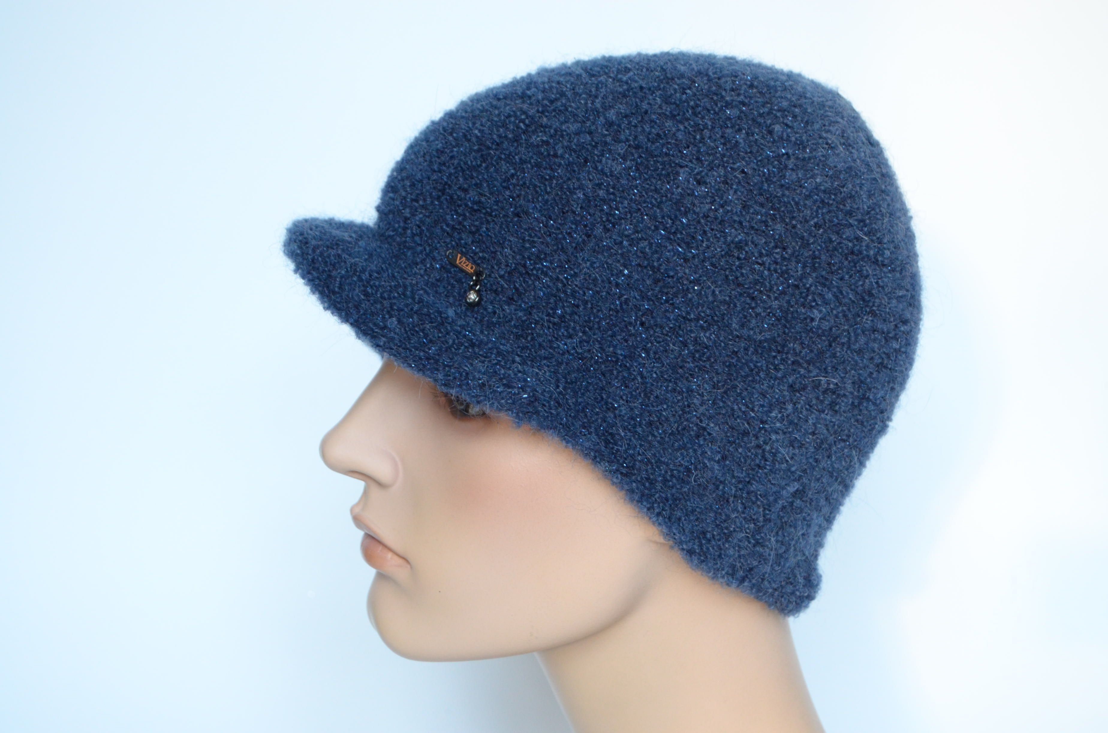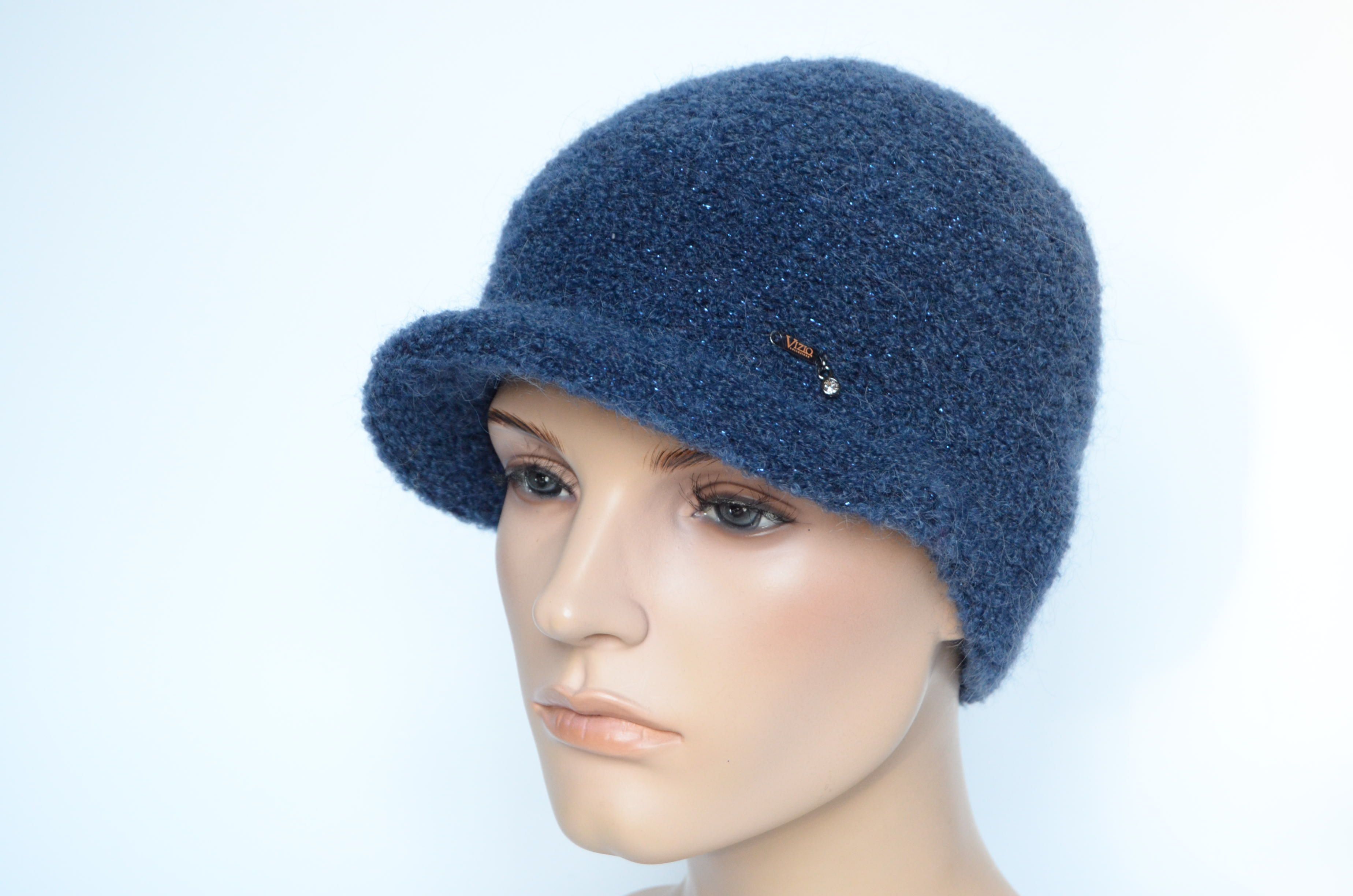 Итальянская вязаная синяя жокейка зимняя для женщин Vizio Италия 8033 V зима 2022 - 2023 купить в Москве и России интернет магазин головных уборов Италии Визио