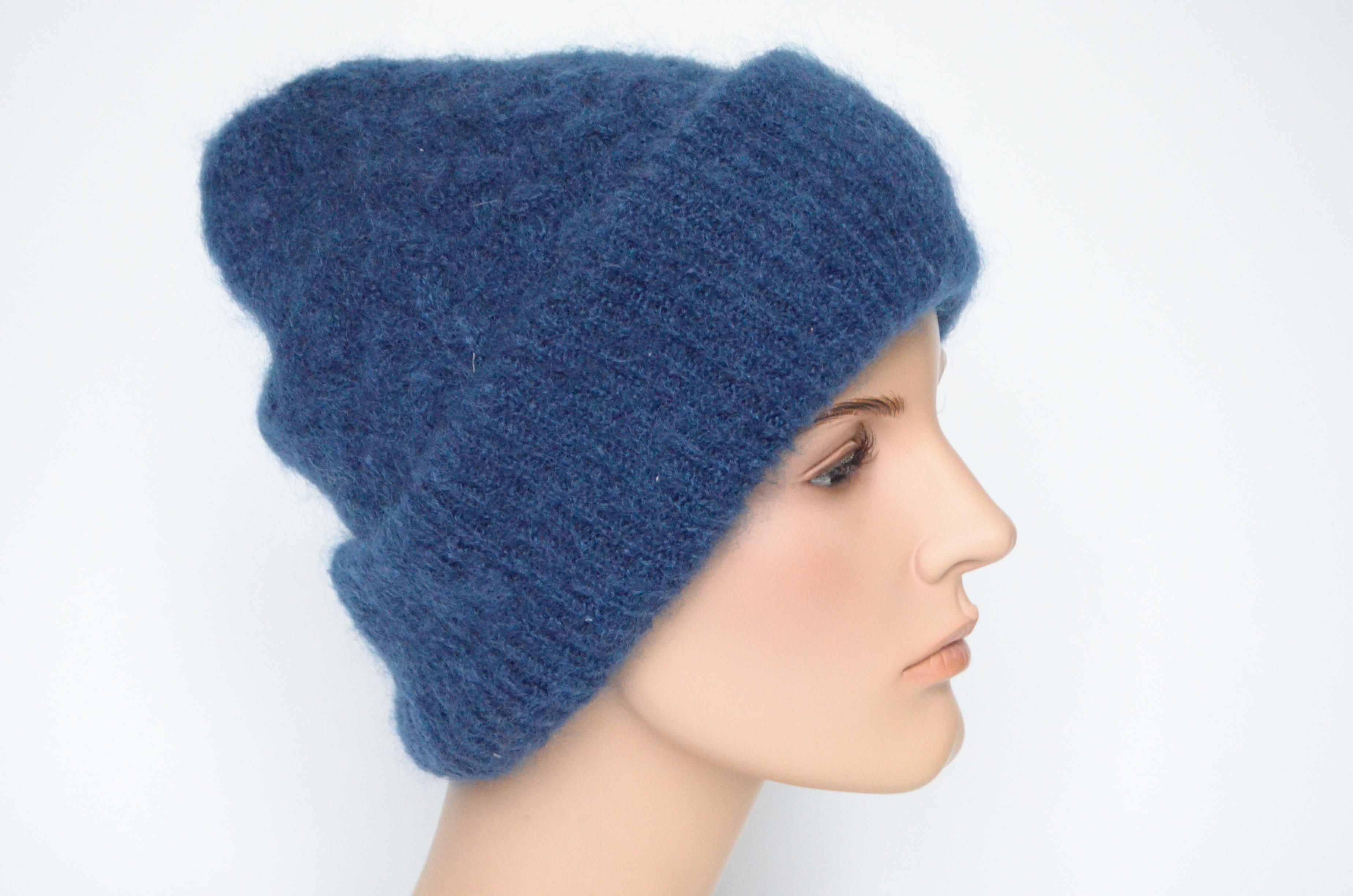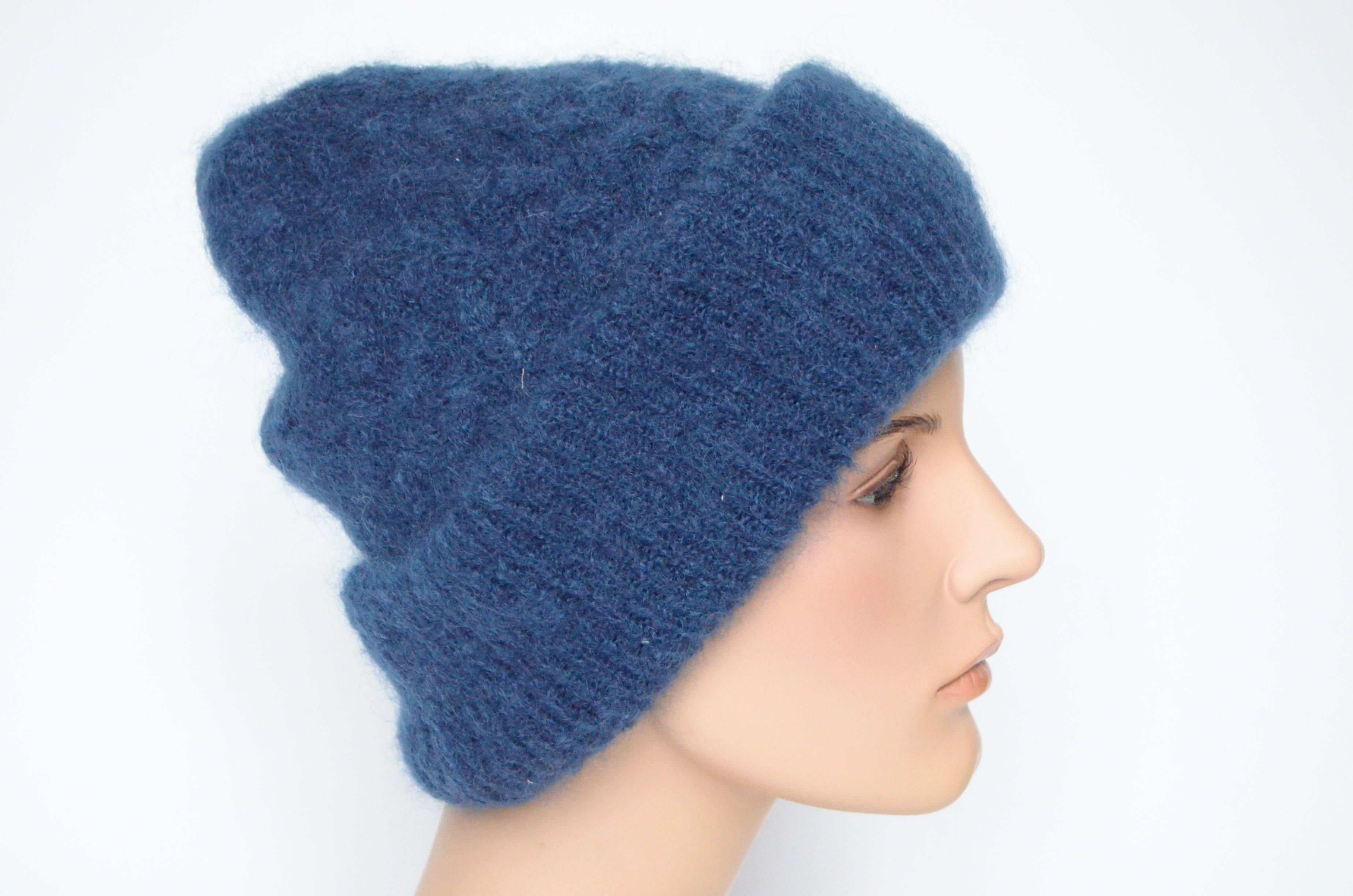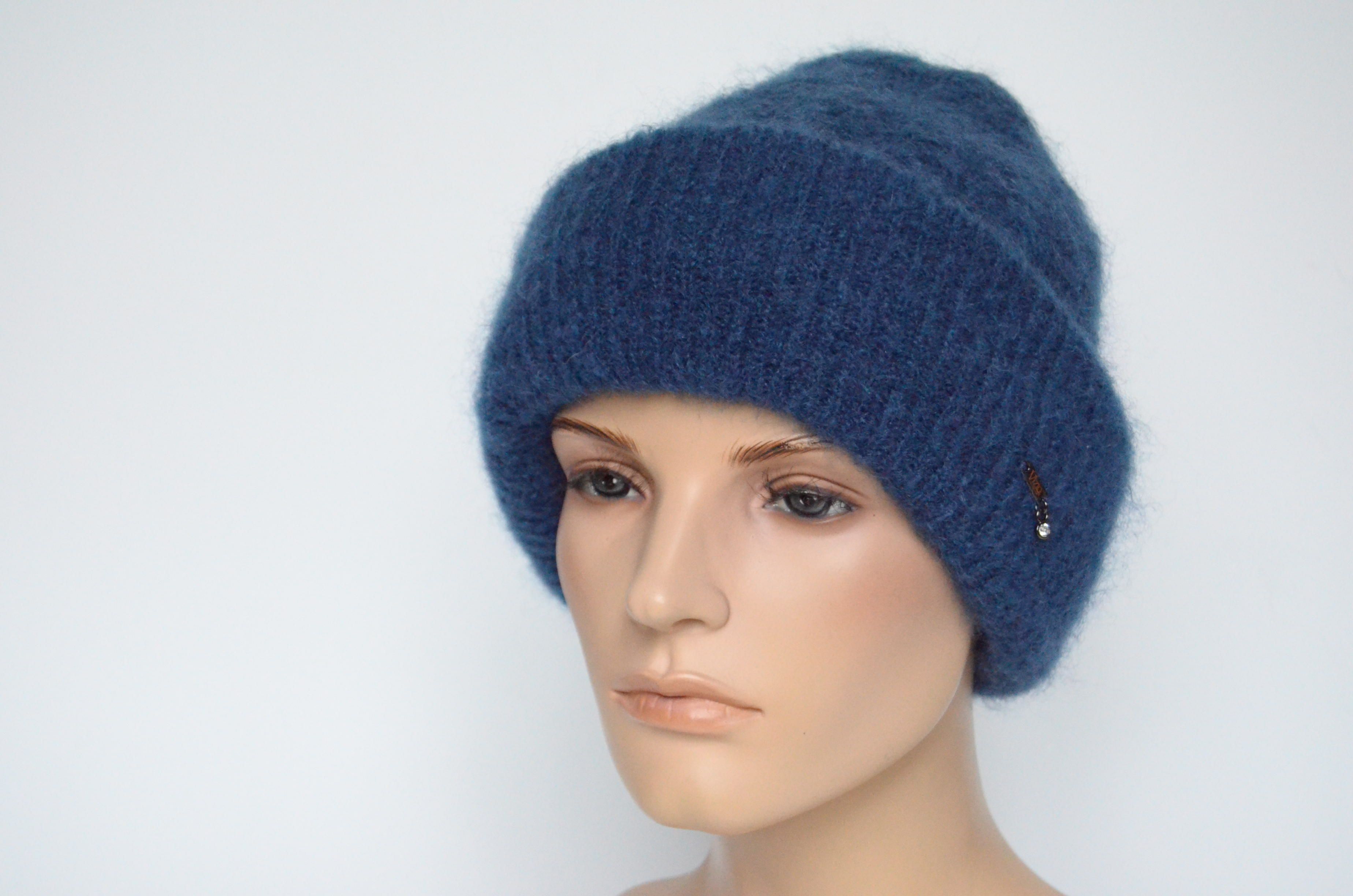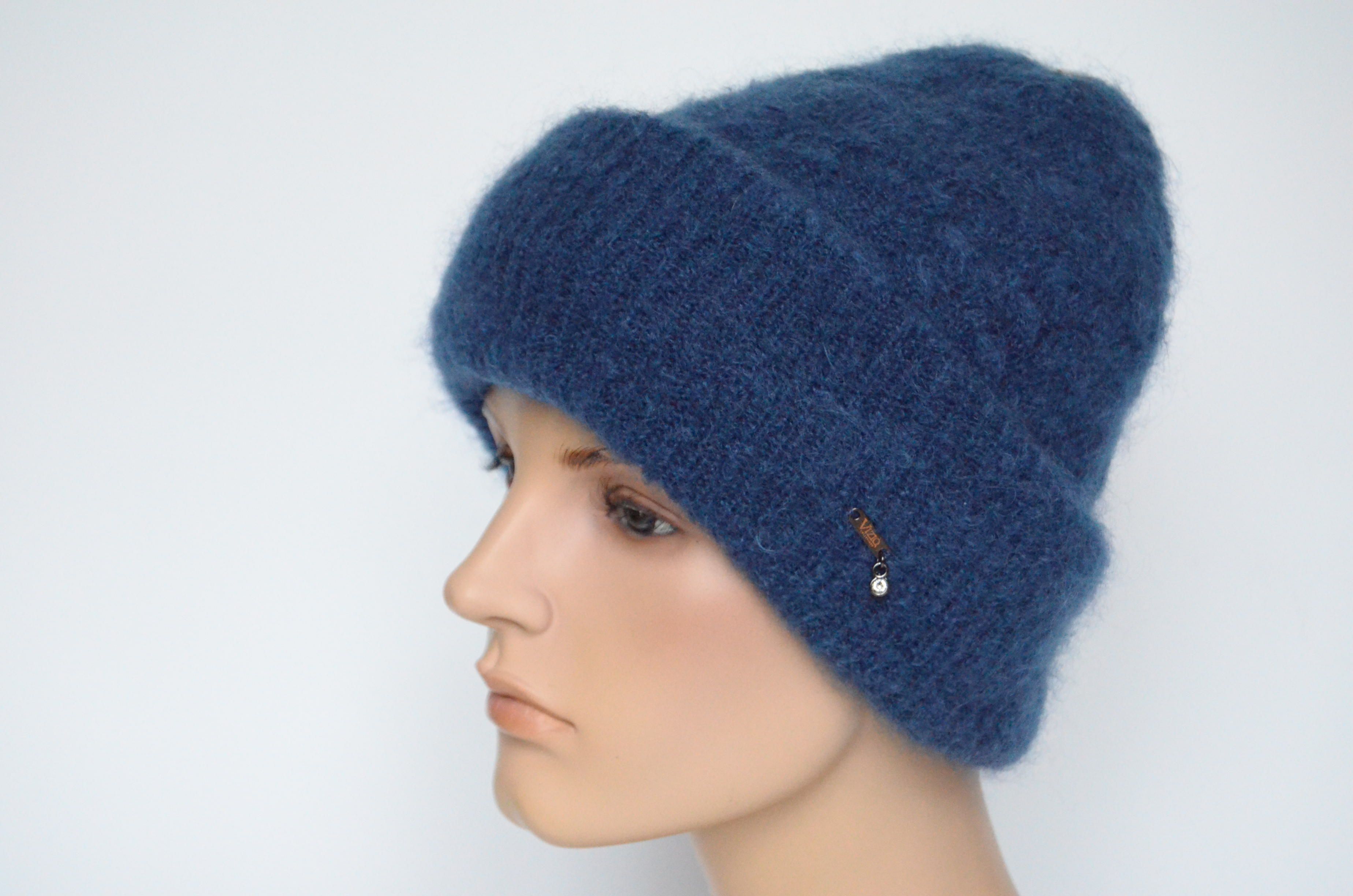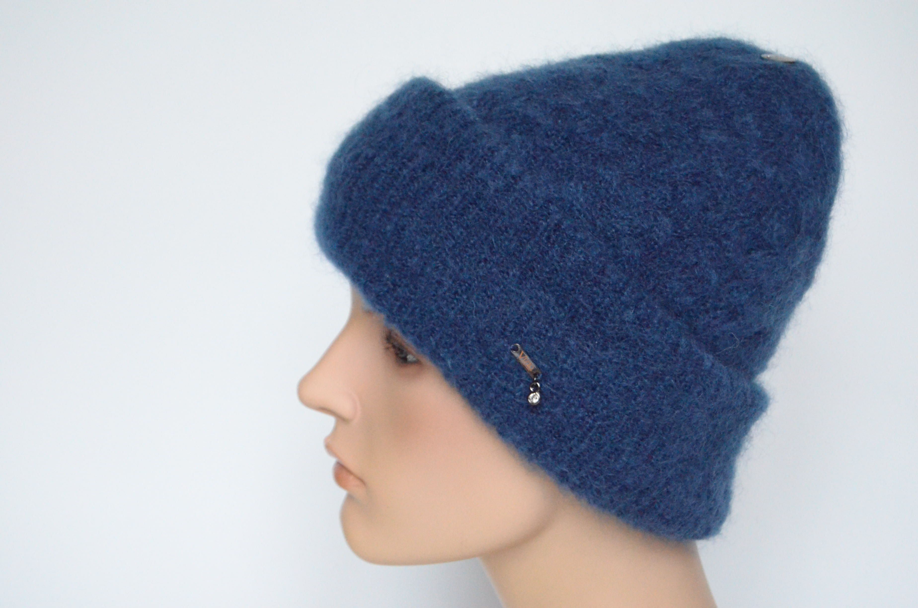 Купить синюю женскую мохеровую шапку с отворотом зима 2023 Vizio Италия в интернет магазине итальянских головных уборов для женщин