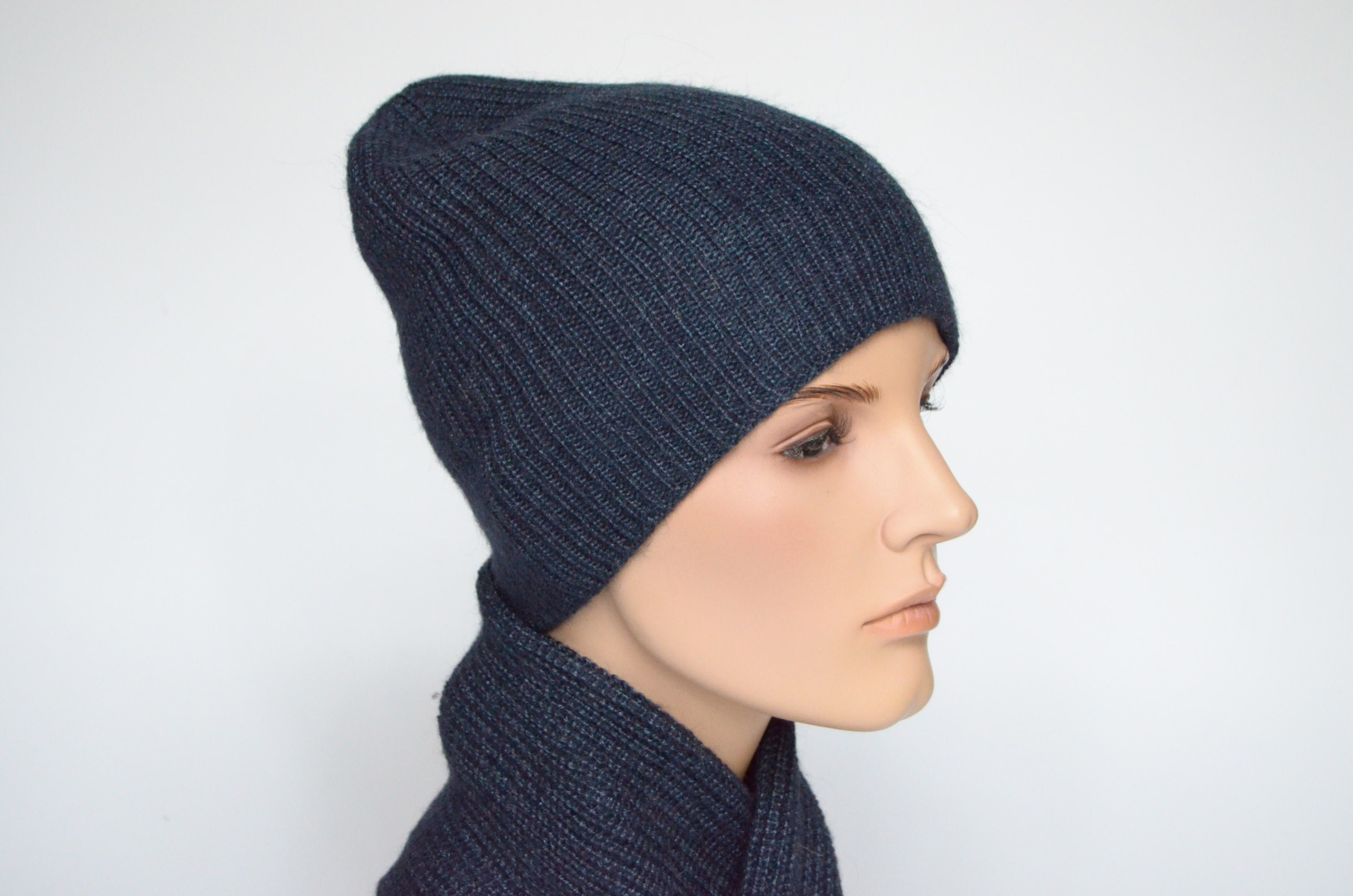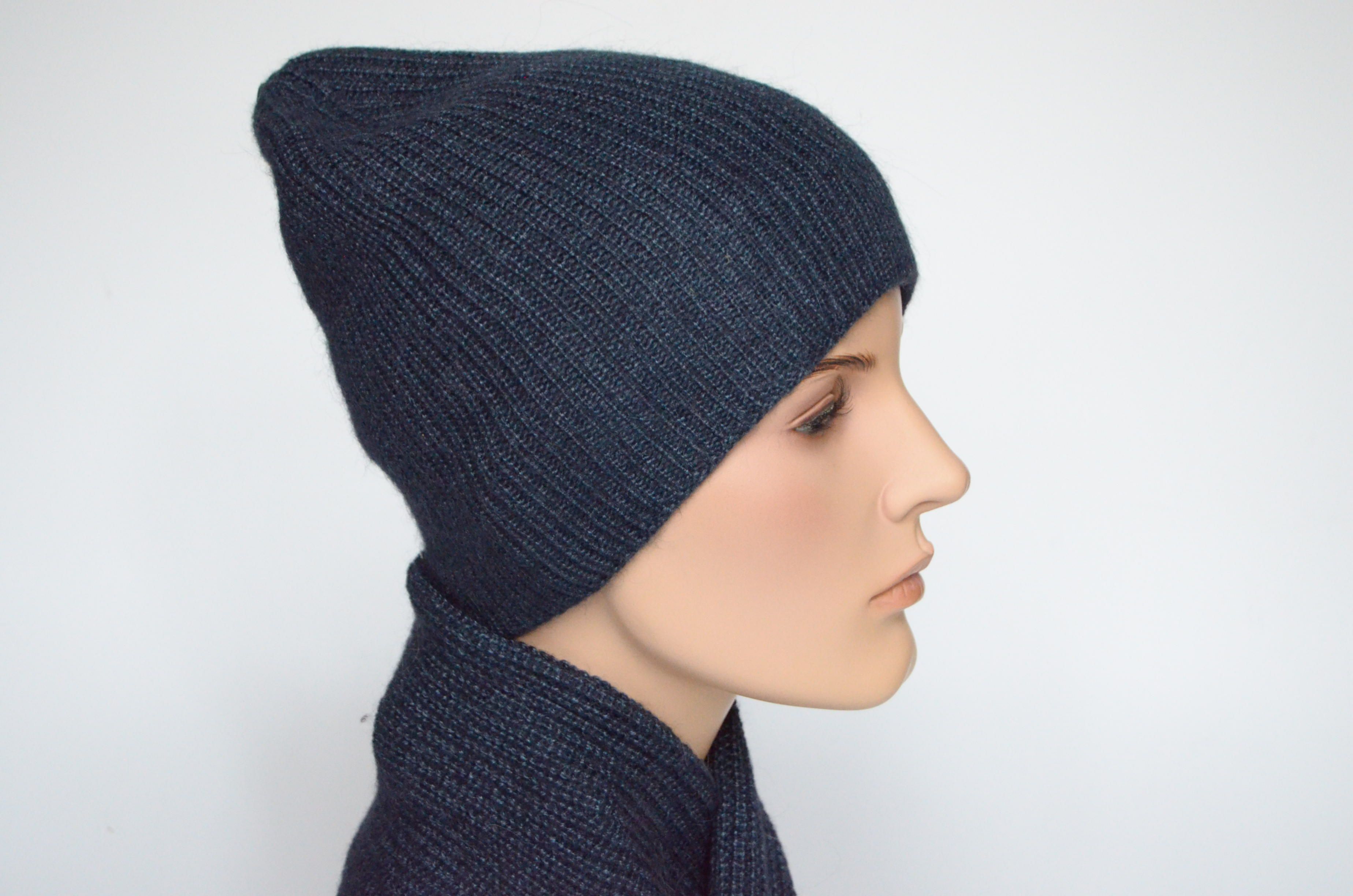 Синяя женская вязаная зимняя шапка из альпака и шелка