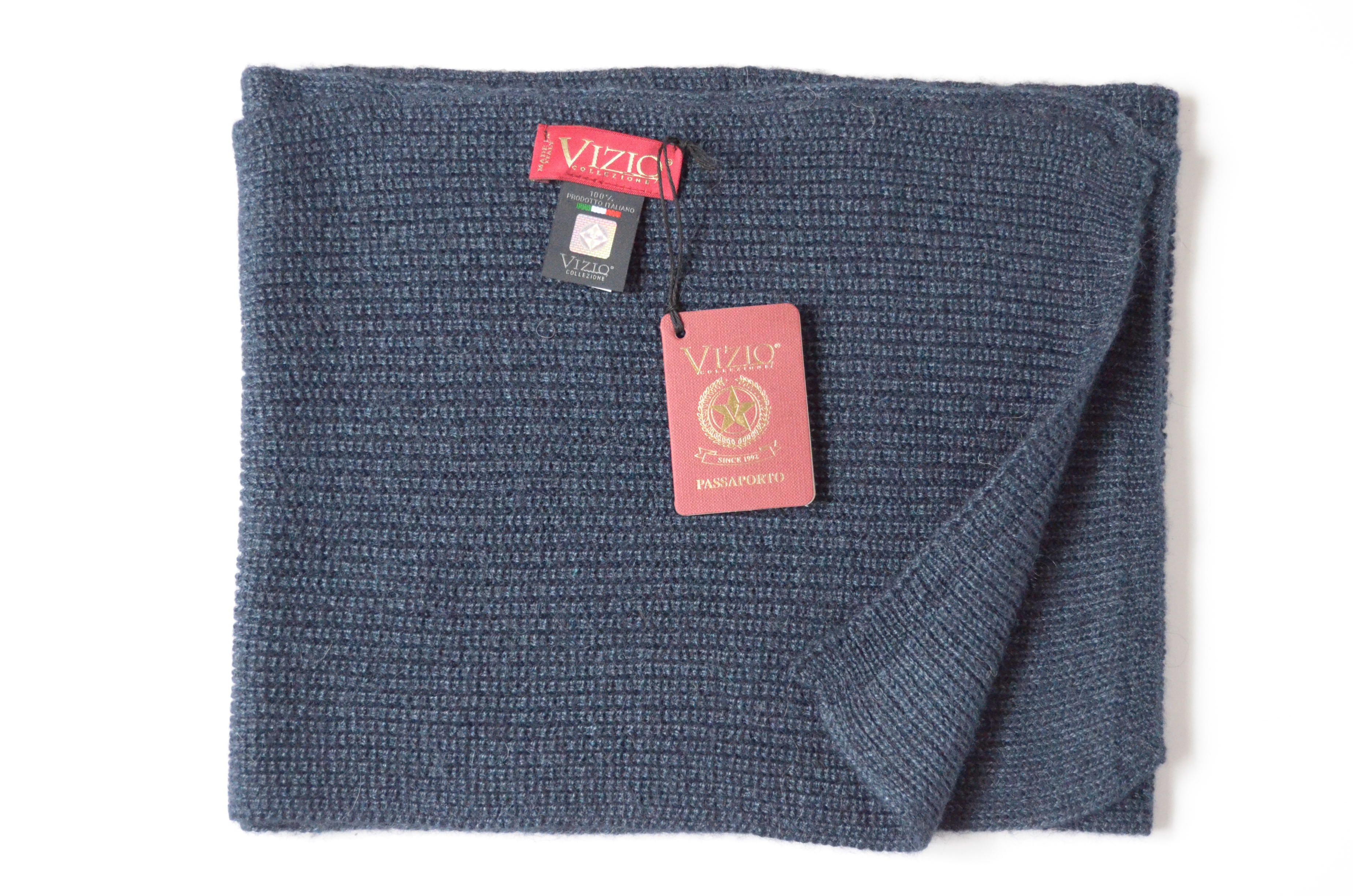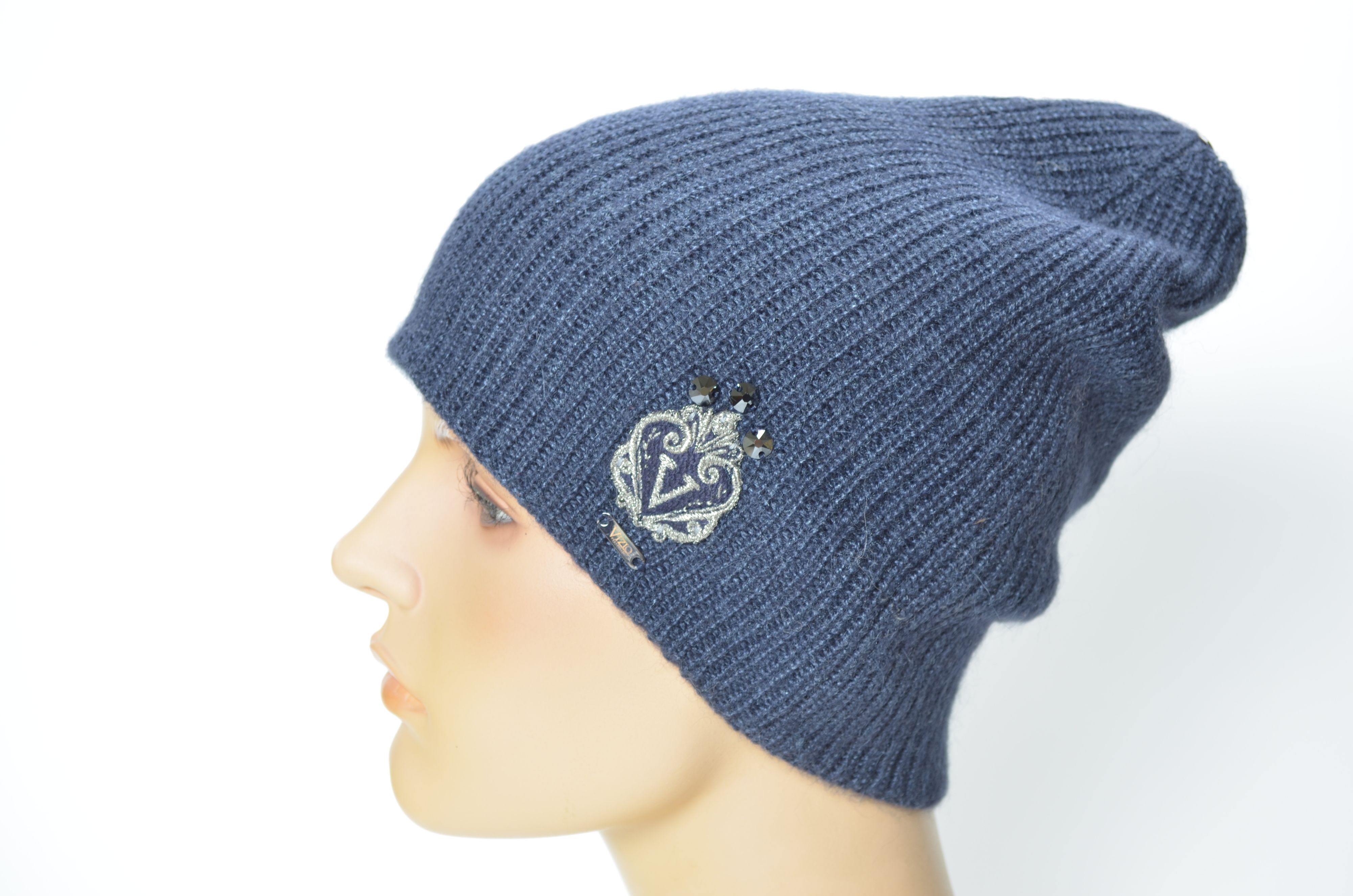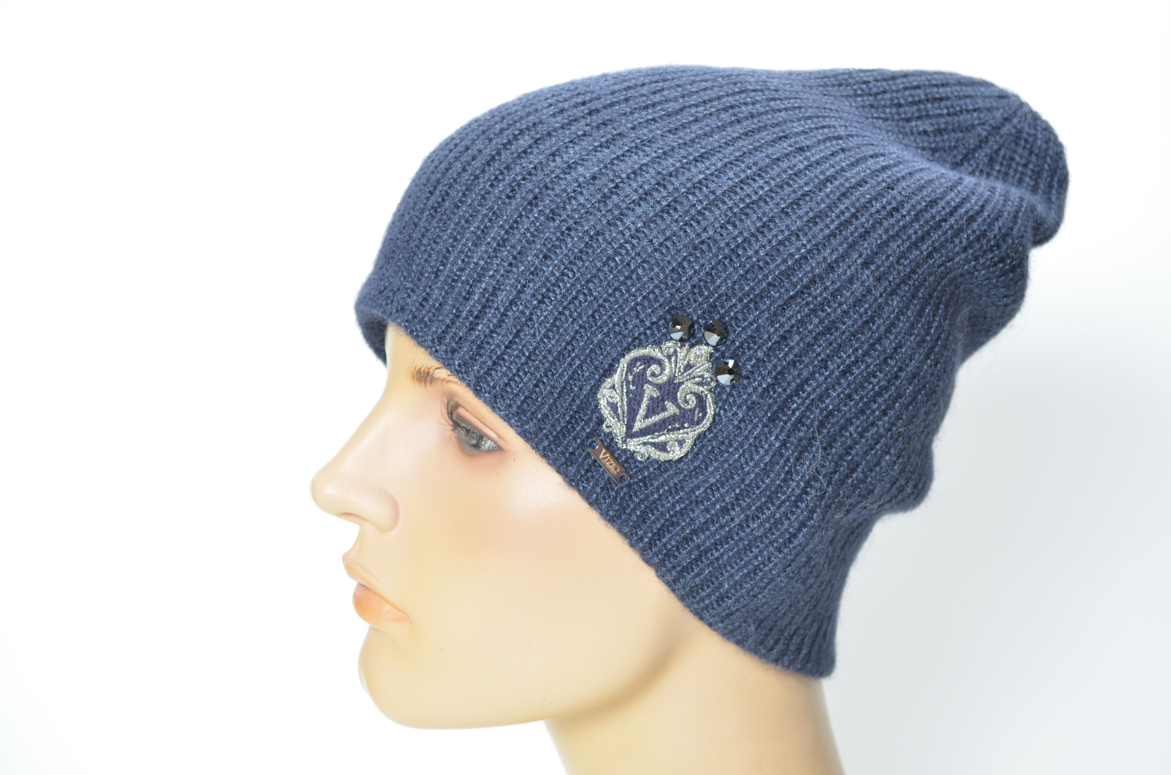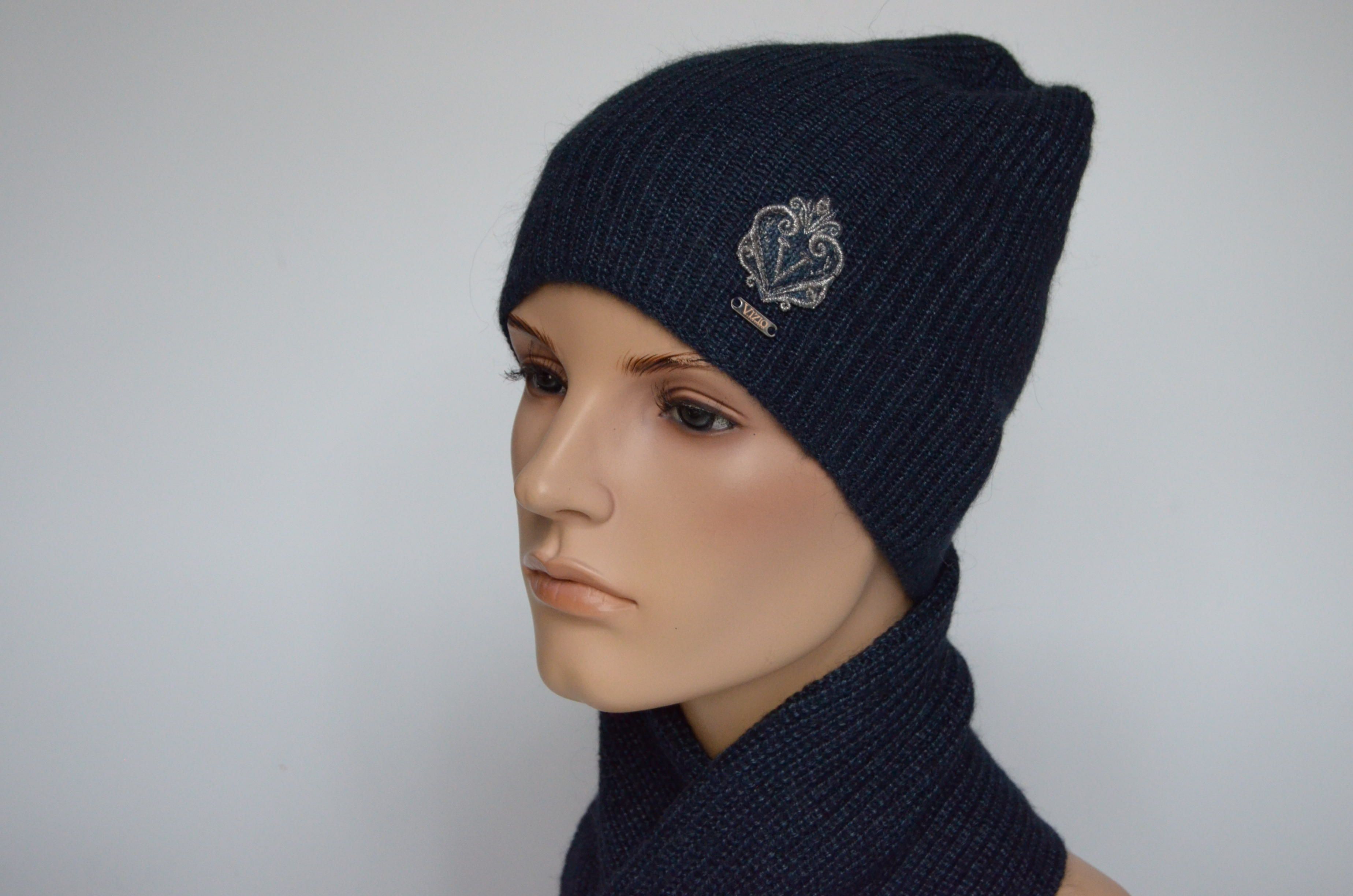 Приобрести итальянскую синюю шапку вязаную из шерсти альпака и шелка зима бренда головных уборов Италии Vizio Collezione в интернет магазине с доставкой по Москве и России