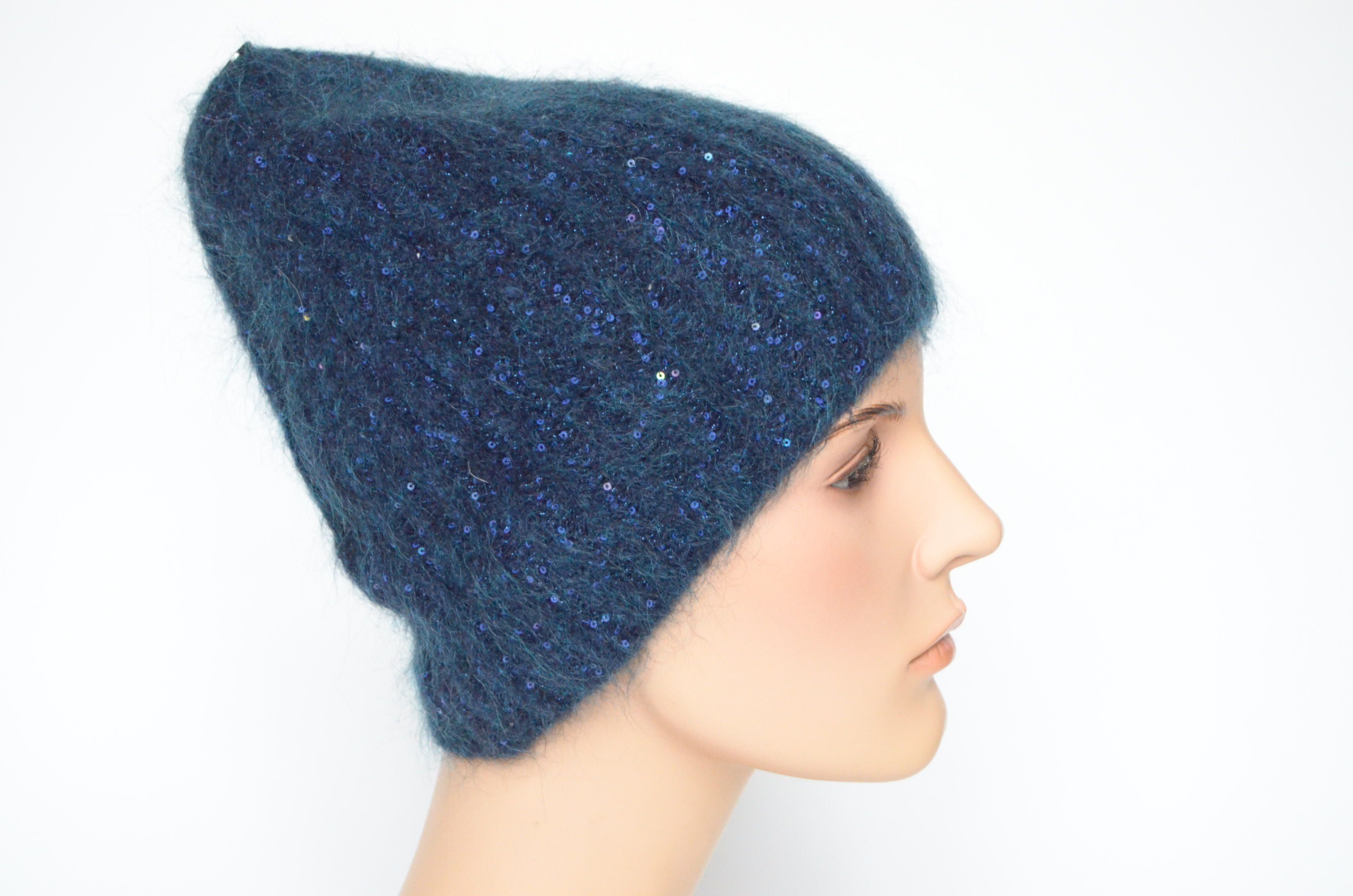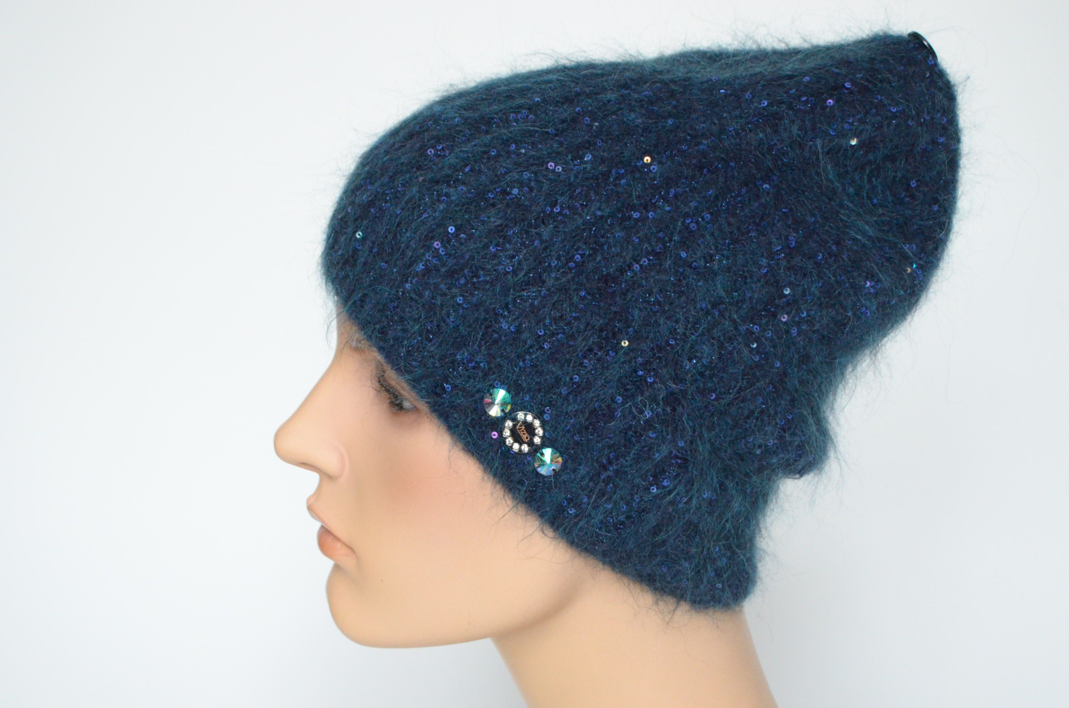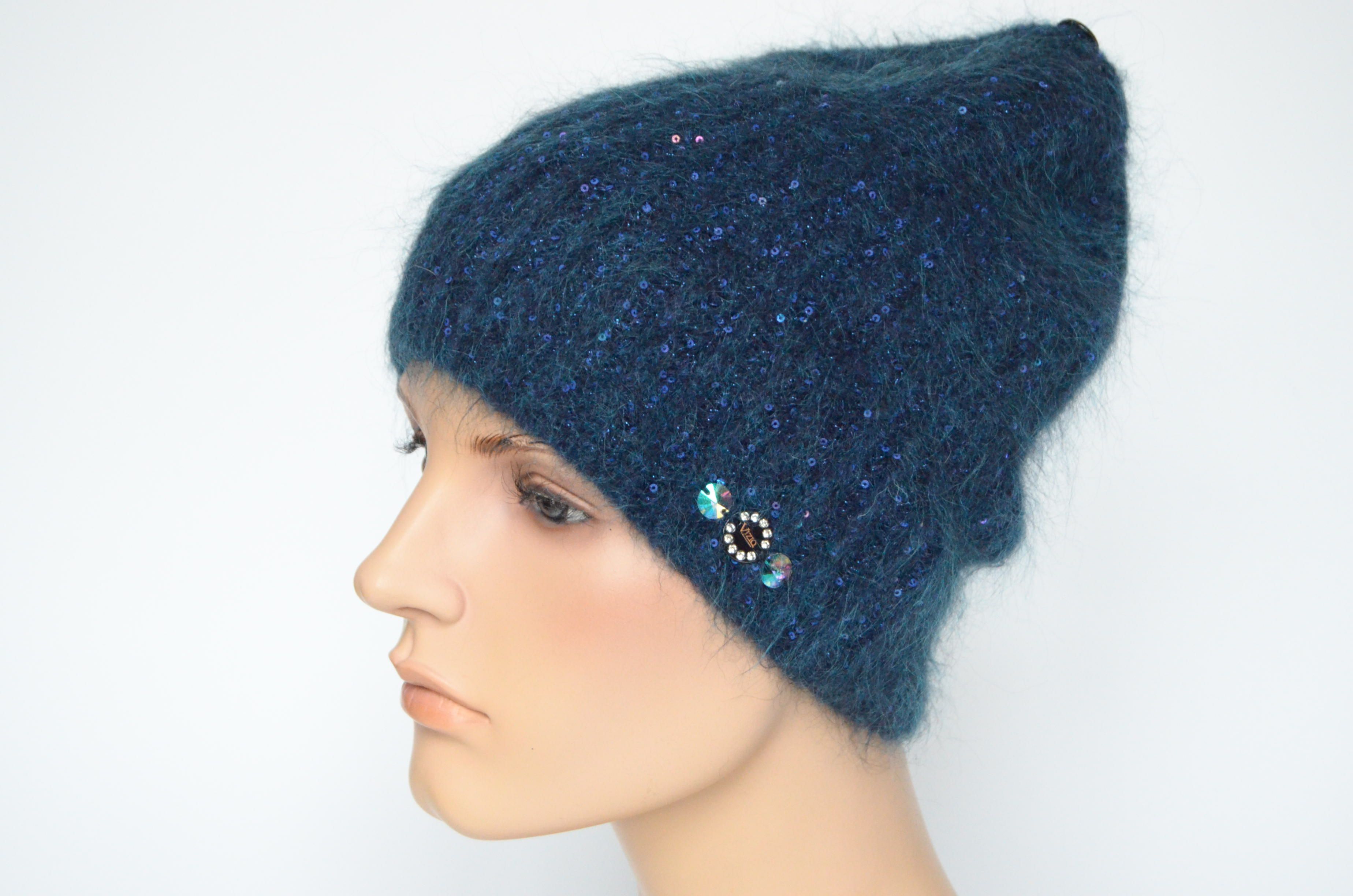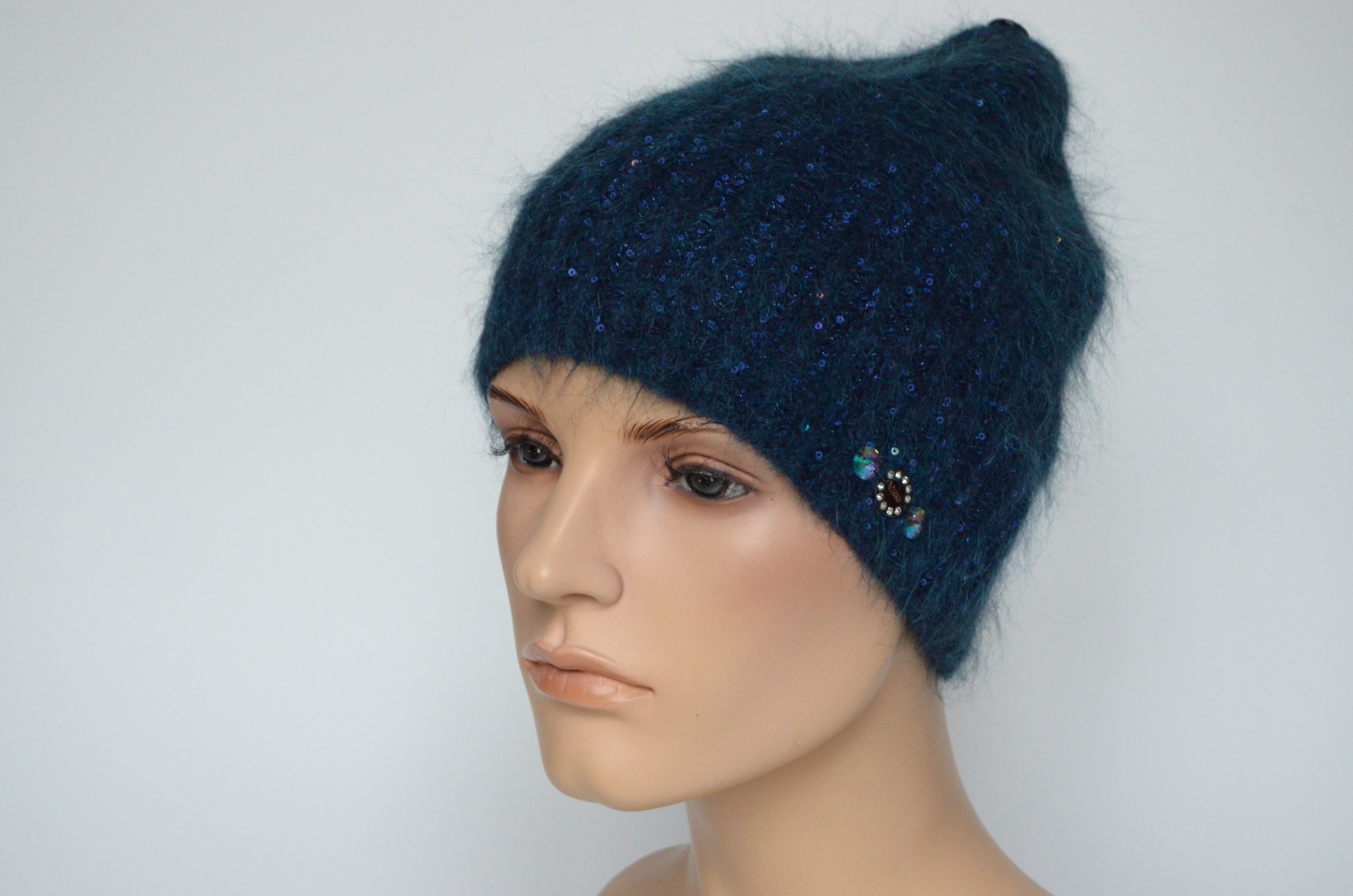 Приобрести зимнюю синюю одинарную шапку женскую зима 2023 Vizio Италия с пайетками Вы можете в магазине итальянских головных уборов Визио в Москве или заказать с доставкой по России на сайте интернет магазина модных женских шапок Vizio Collezione