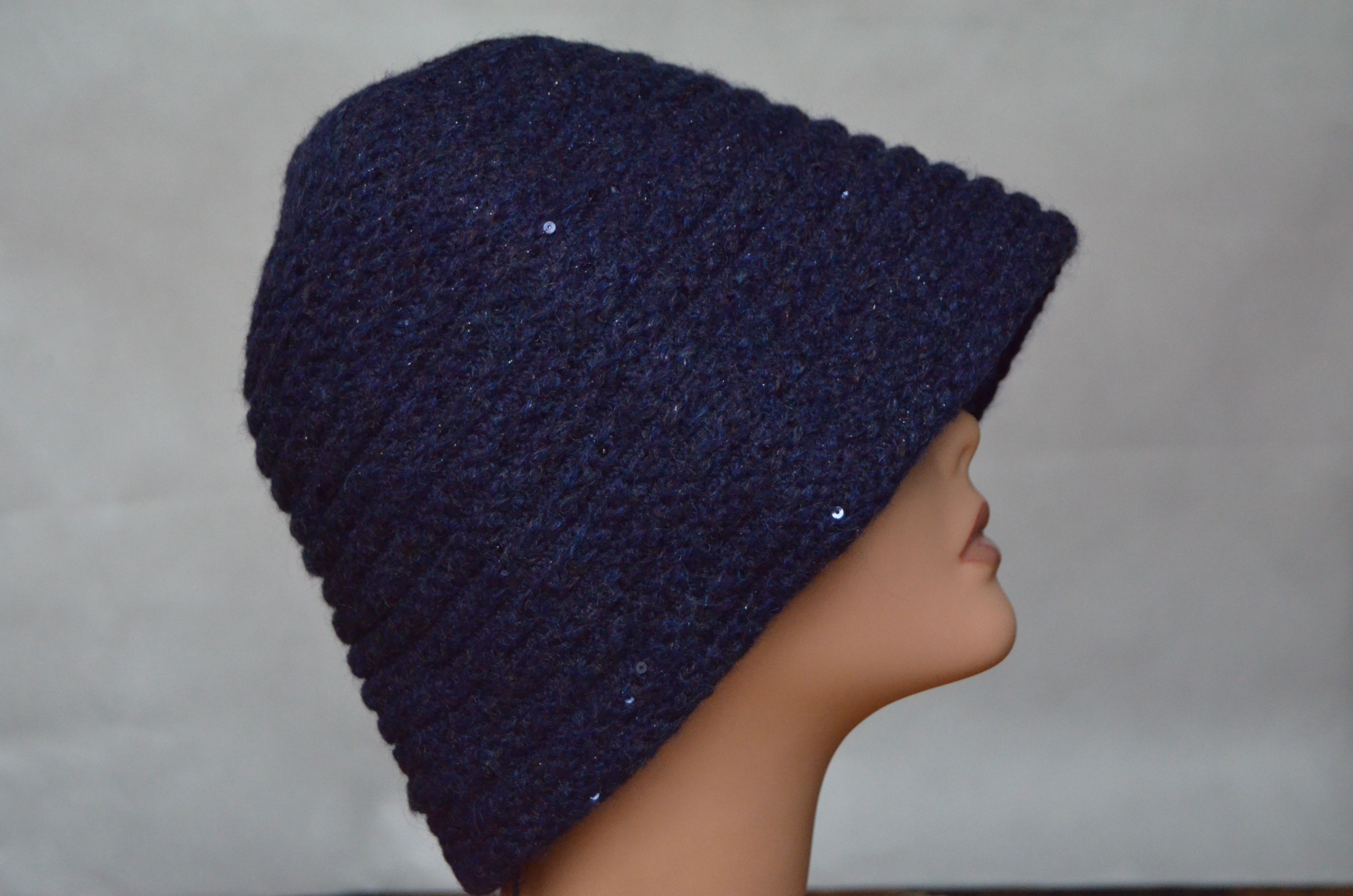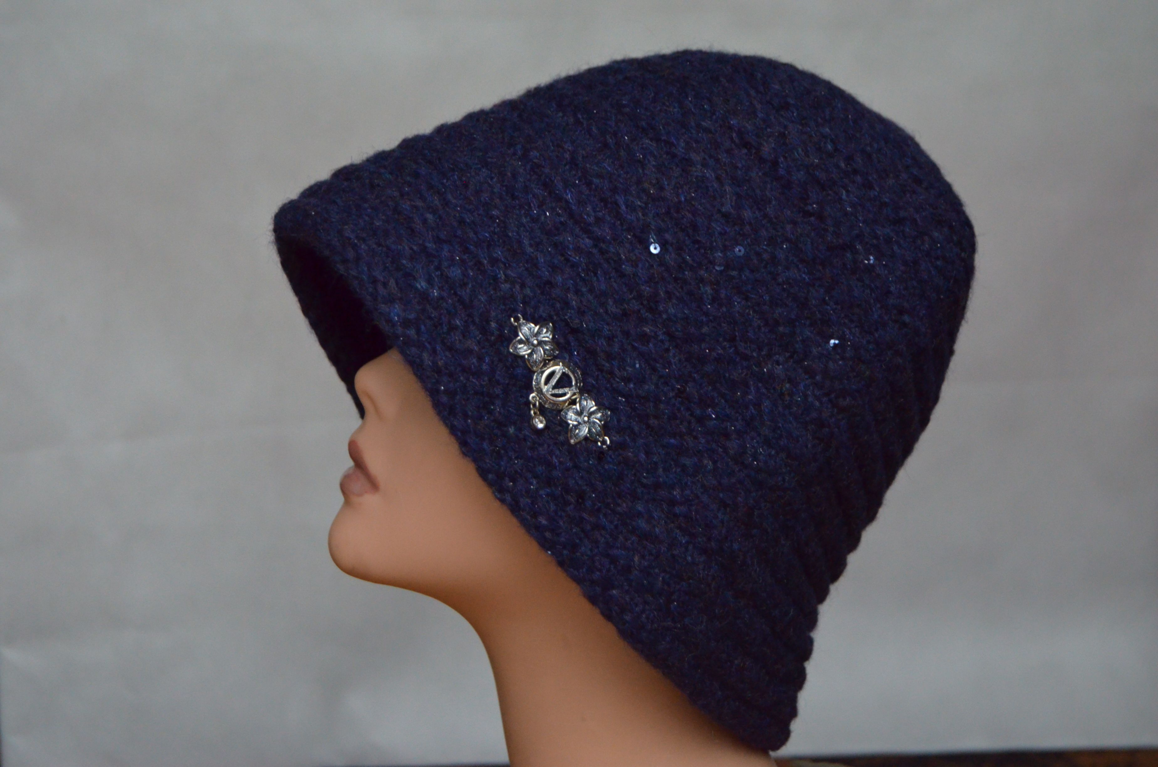 Синяя шляпа клош женская зимняя Vizio Италия 6126 зима от итальянского производителя вязаных шляп Vizio Collezione