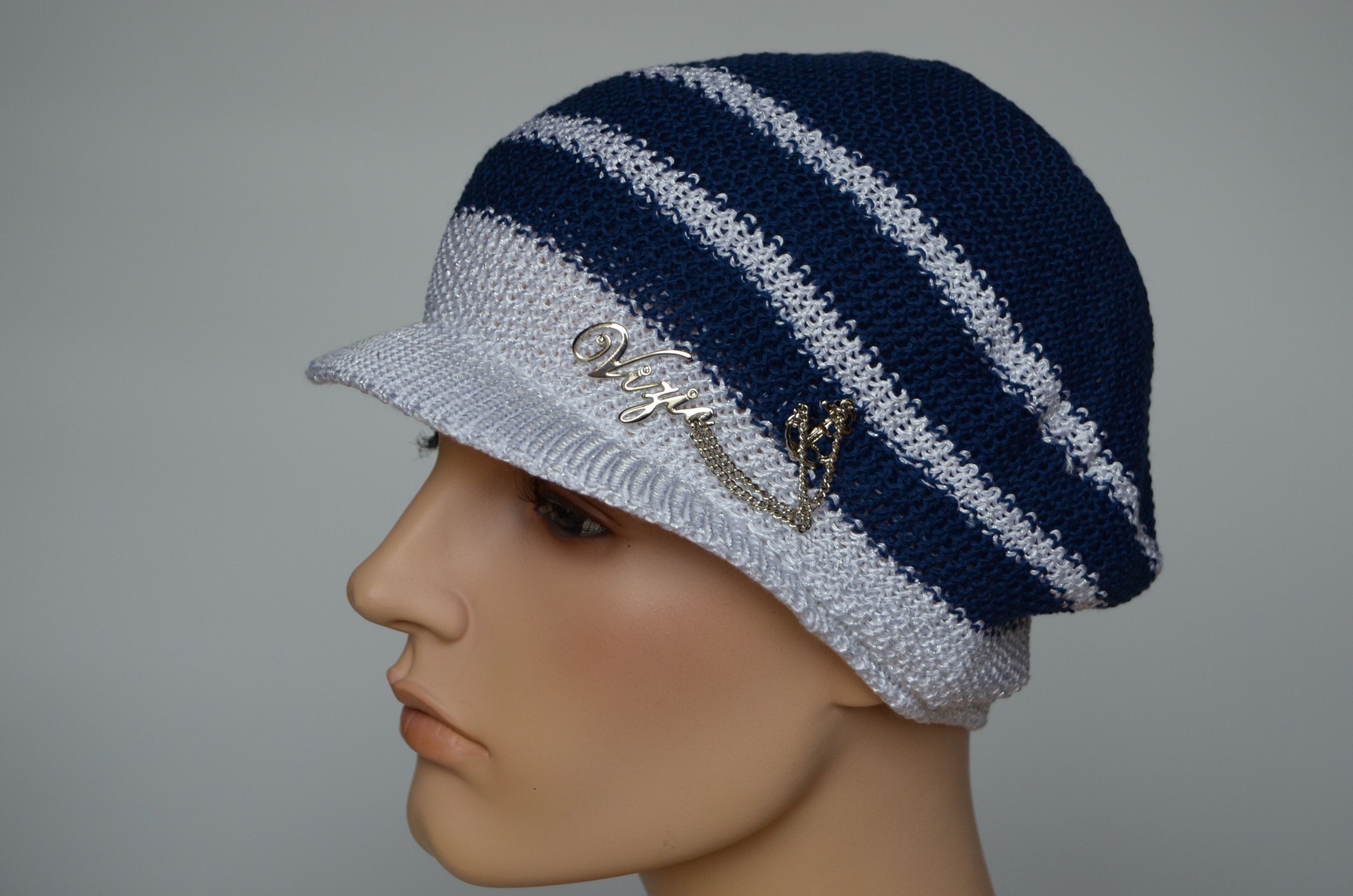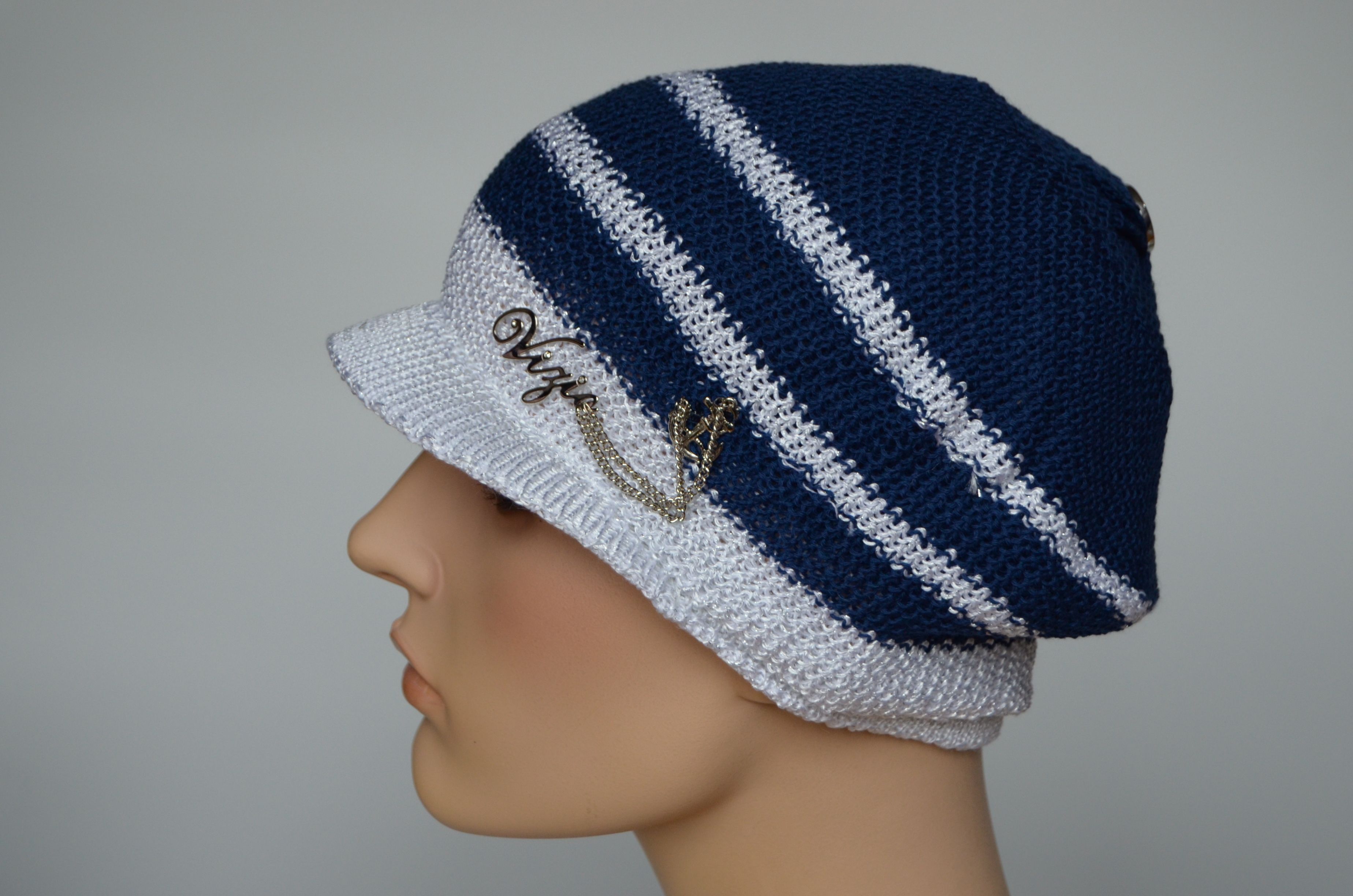 Кепка женская синяя Vizio Италия 5038 из коллекции синих кепок в полоску от производителя женских кепок Vizio Италия в интернет магазине женских кепок и беретов