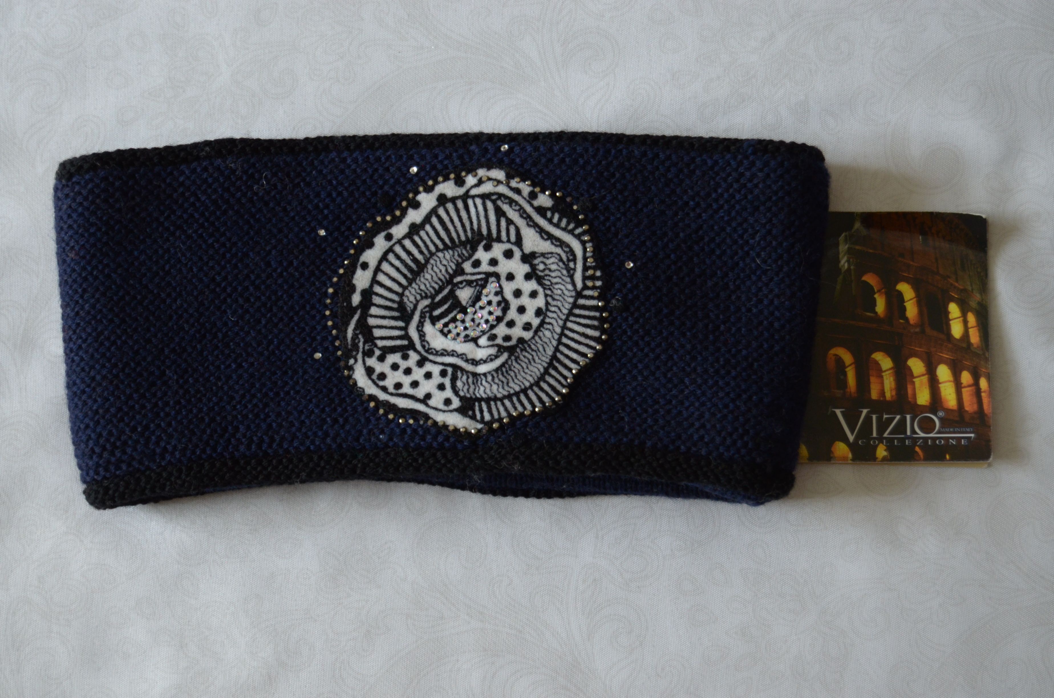 Женская зимняя синяя вязаная полоска на голову Vizio 4905 коллекция вязаных полосок из Италии для женщин
