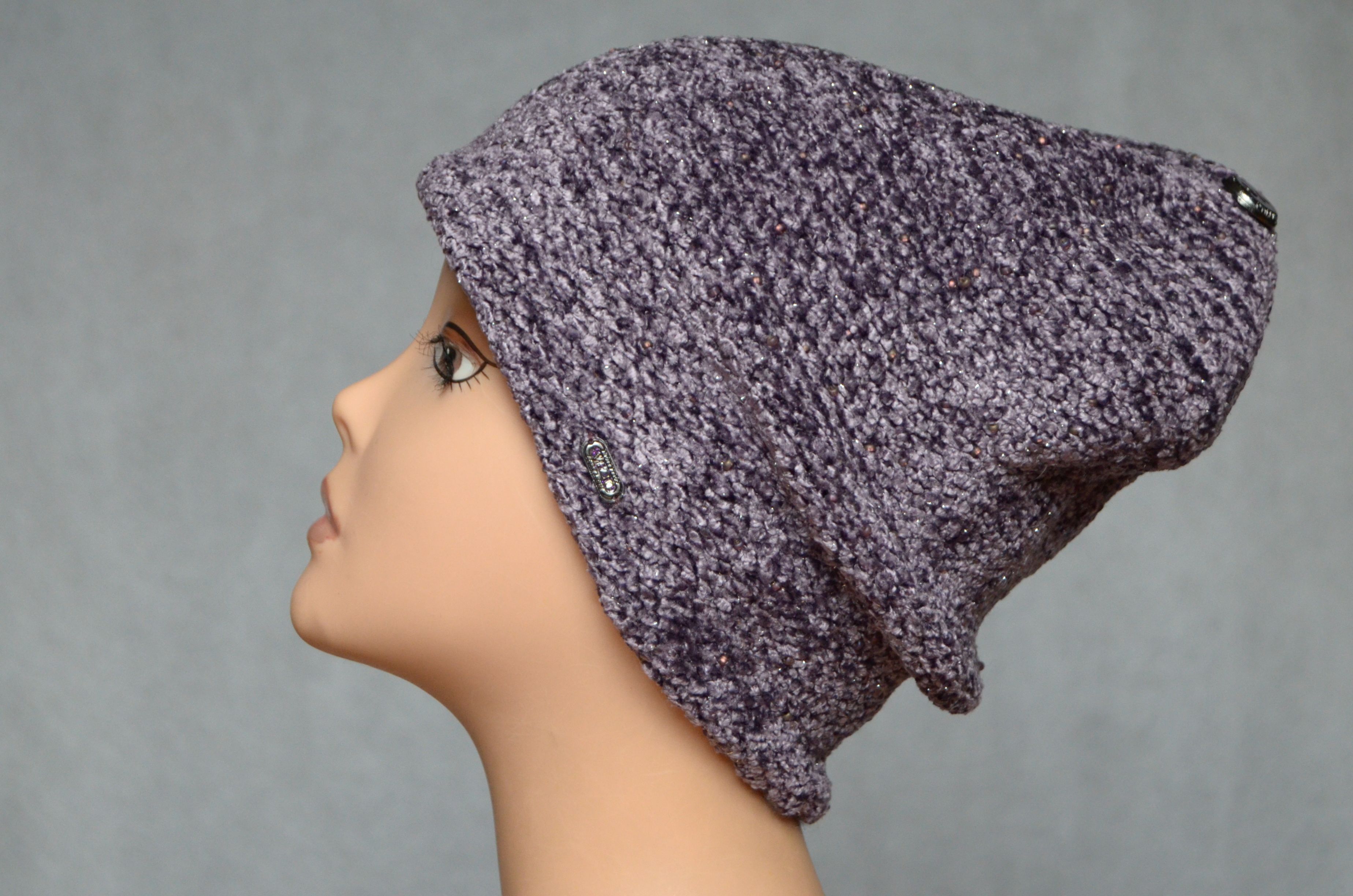 Вязаная сиреневая итальянская модная шапка Vizio Италия 6103 женская из вискозы и шерсти купить интернет магазин итальянских головных уборов Визио