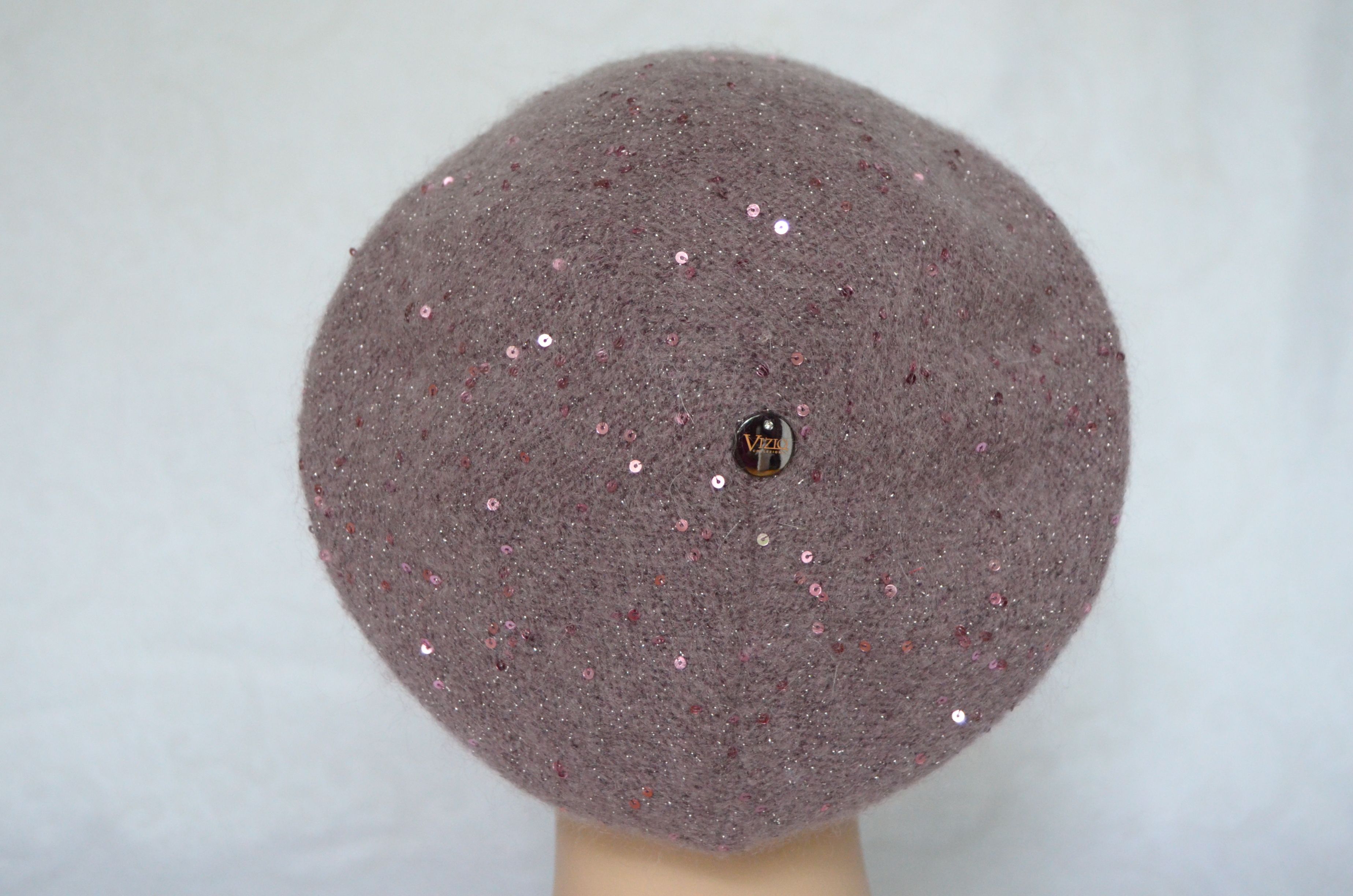 Сиреневый классический берет вязаный с пайетками Vizio Италия 6943 купить из новой коллекции итальянских беретов и шапок