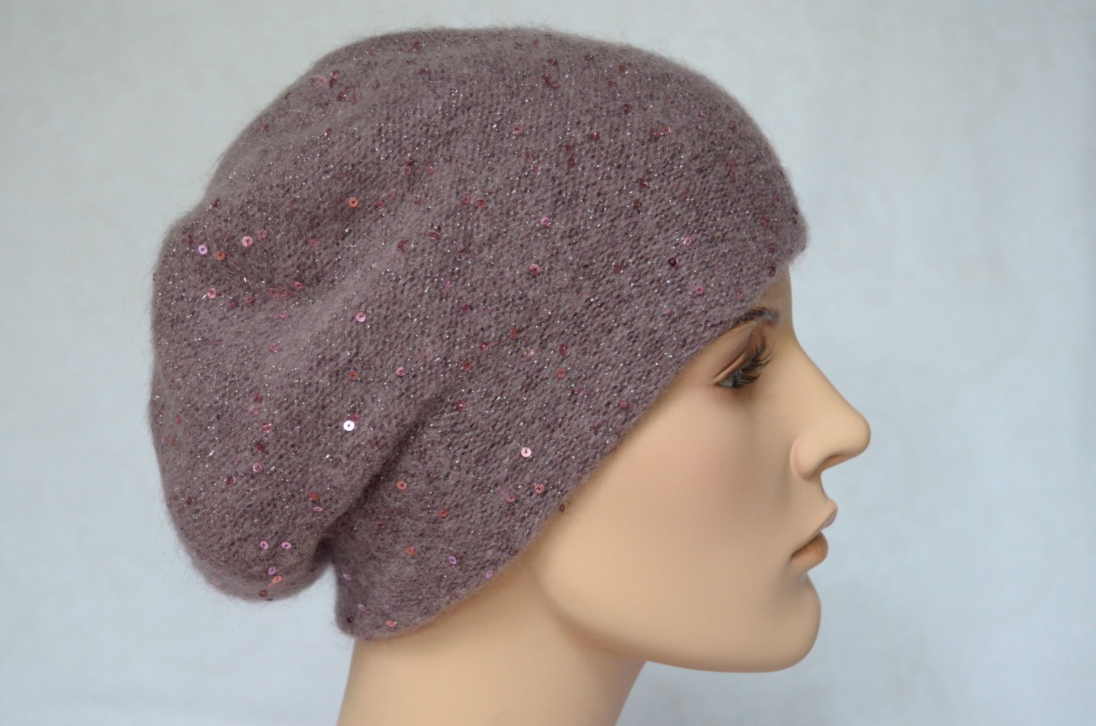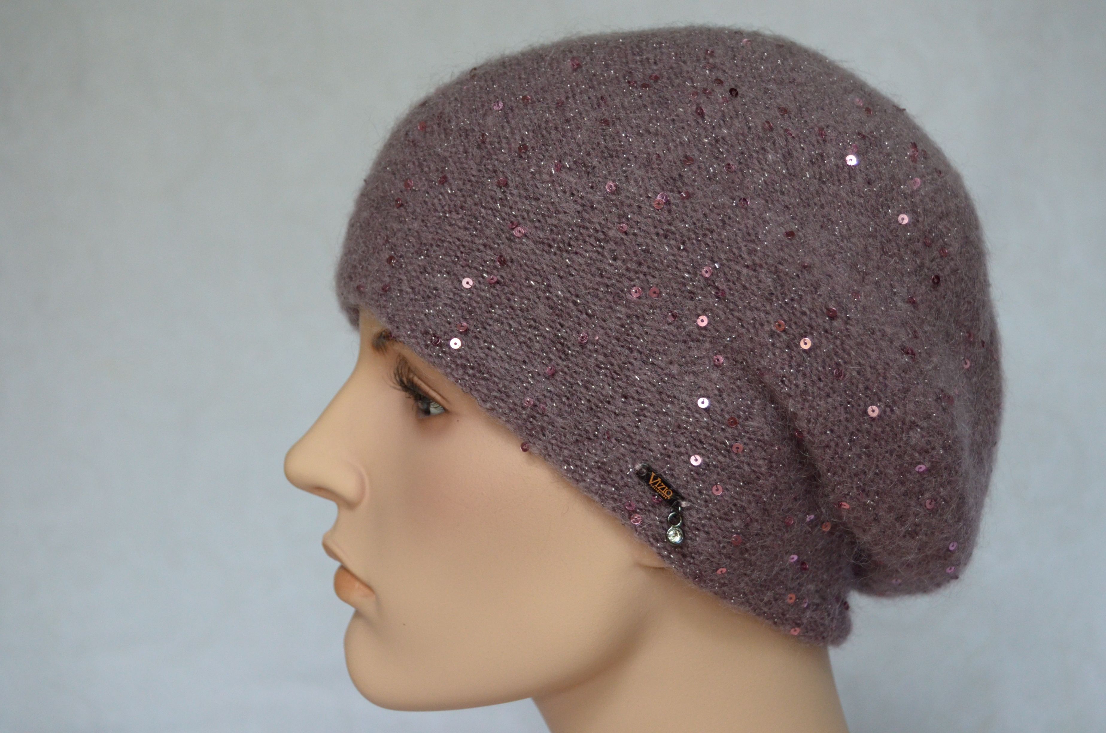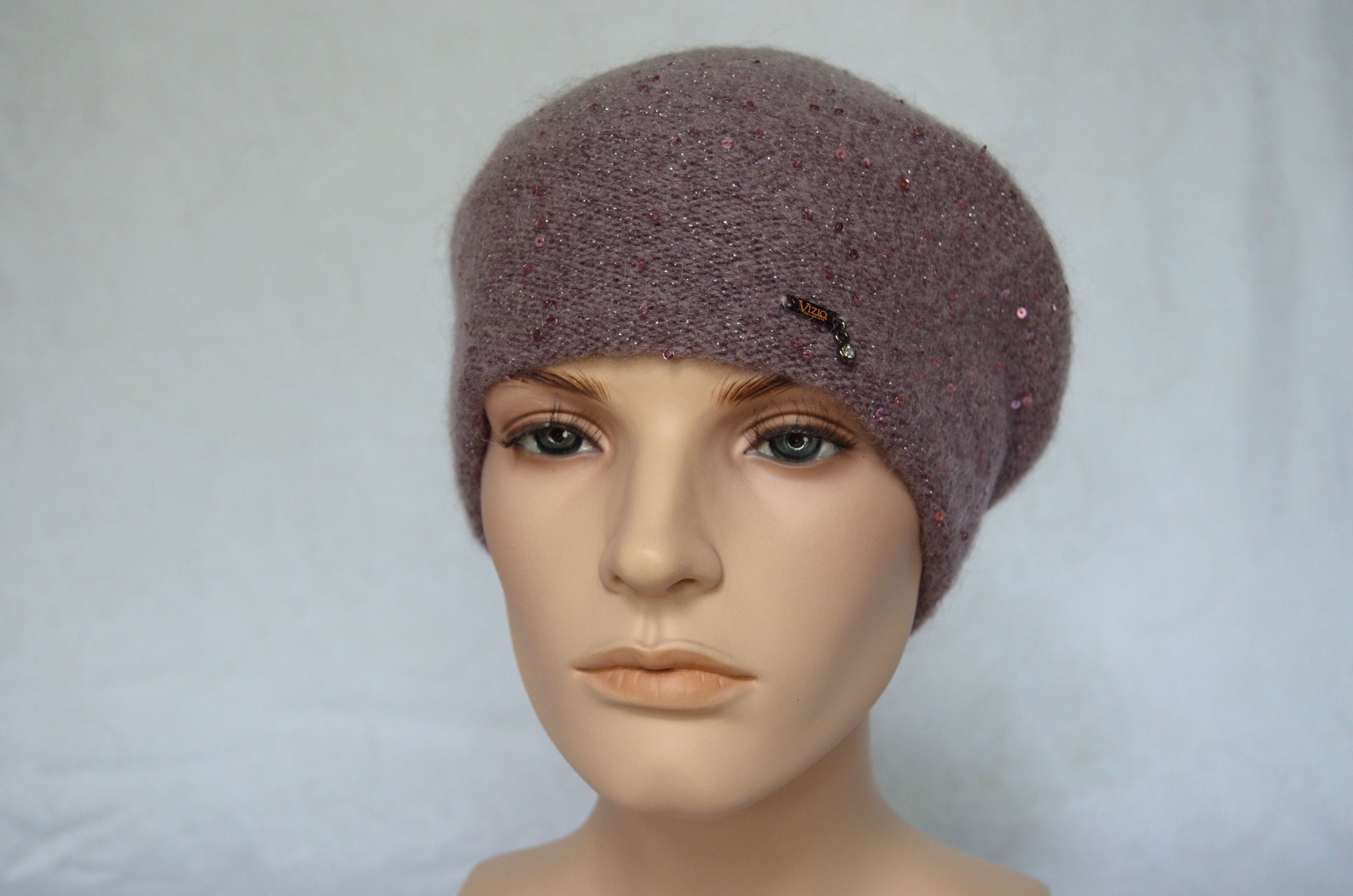 Купить женский сиреневый вязаный берет с пайетками Vizio Италия вы можете в интернет магазине итальянских шапок и беретов для женщин с доставкой по Москве и России
