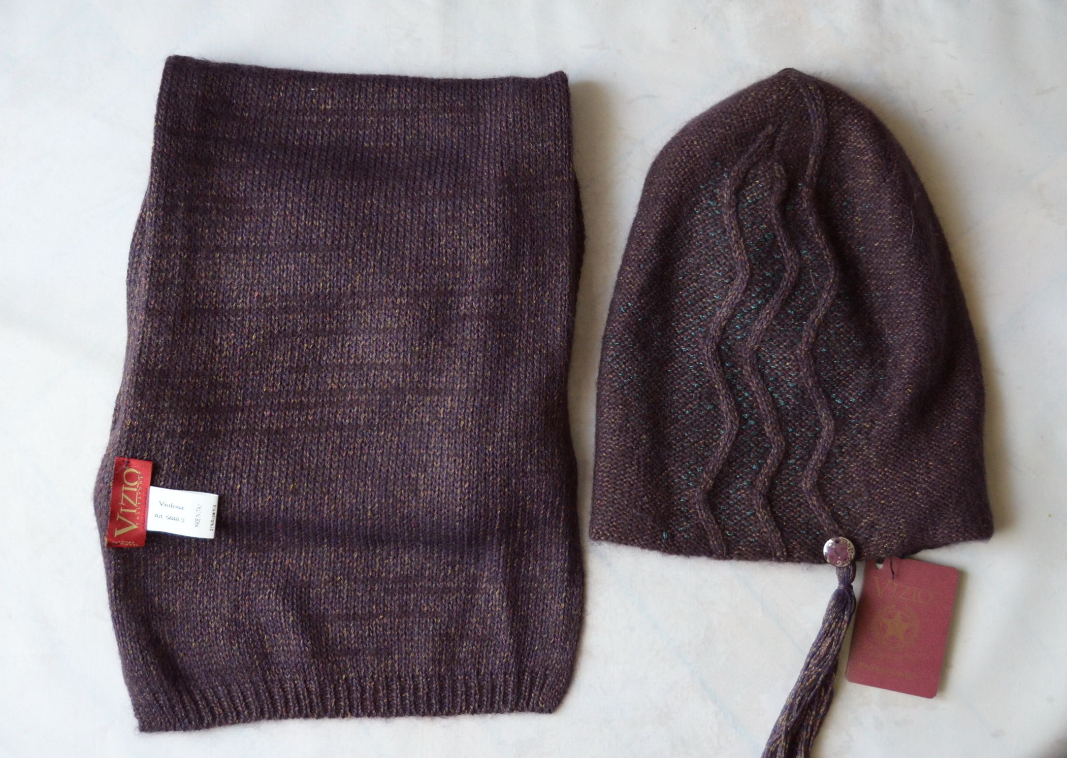 Визио Италия шарф вязаный сливовый Vizio 5848 Violosa из коллекции головных уборов и шарфов Италии зима 2018