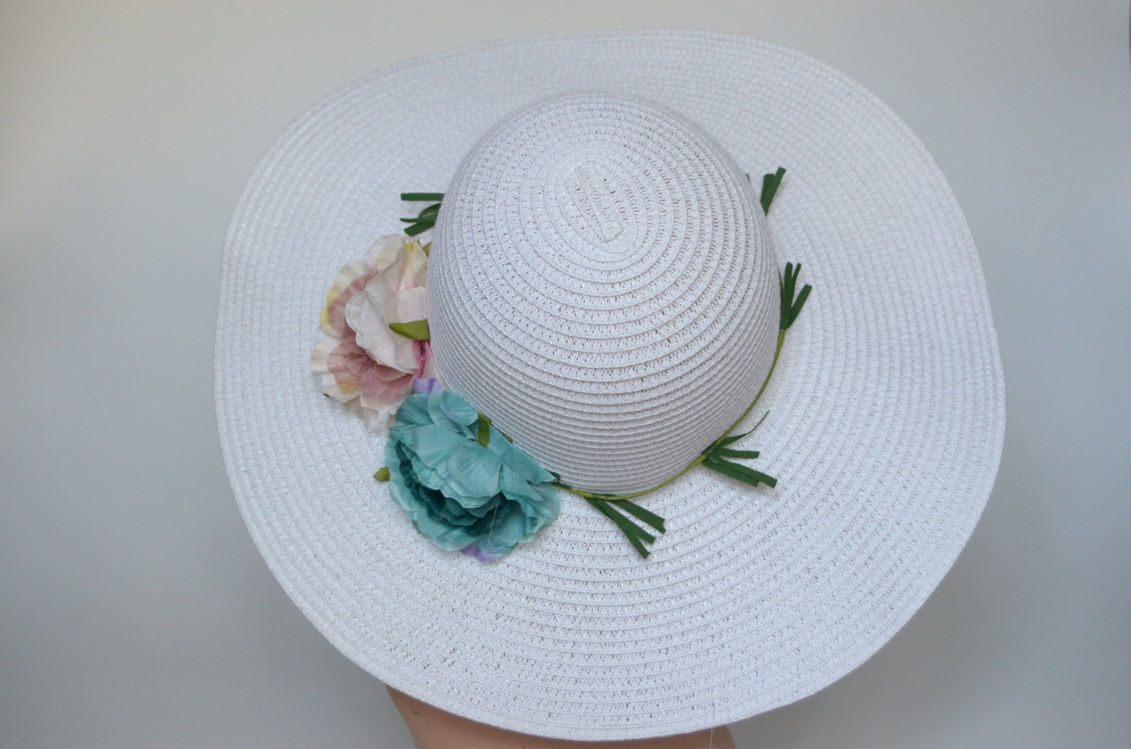 Шляпа белая с цветками Stefania Maioroli Италия 10013 летняя итальянского производителя шляп Стефания Майороли в интернет магазине шляп в Москве и бесплатной доставкой по России