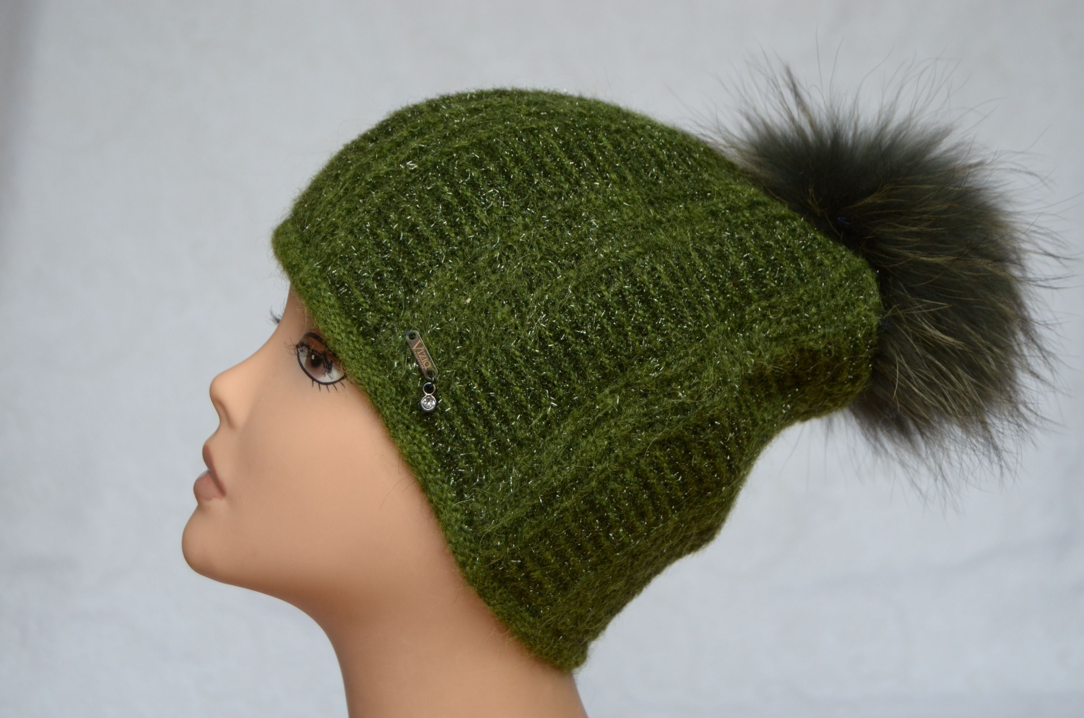 Вицио зеленая модная женская итальянская вязаная шапка с помпоном Vizio 6467 купить в магазине вязаных шапок для женщин