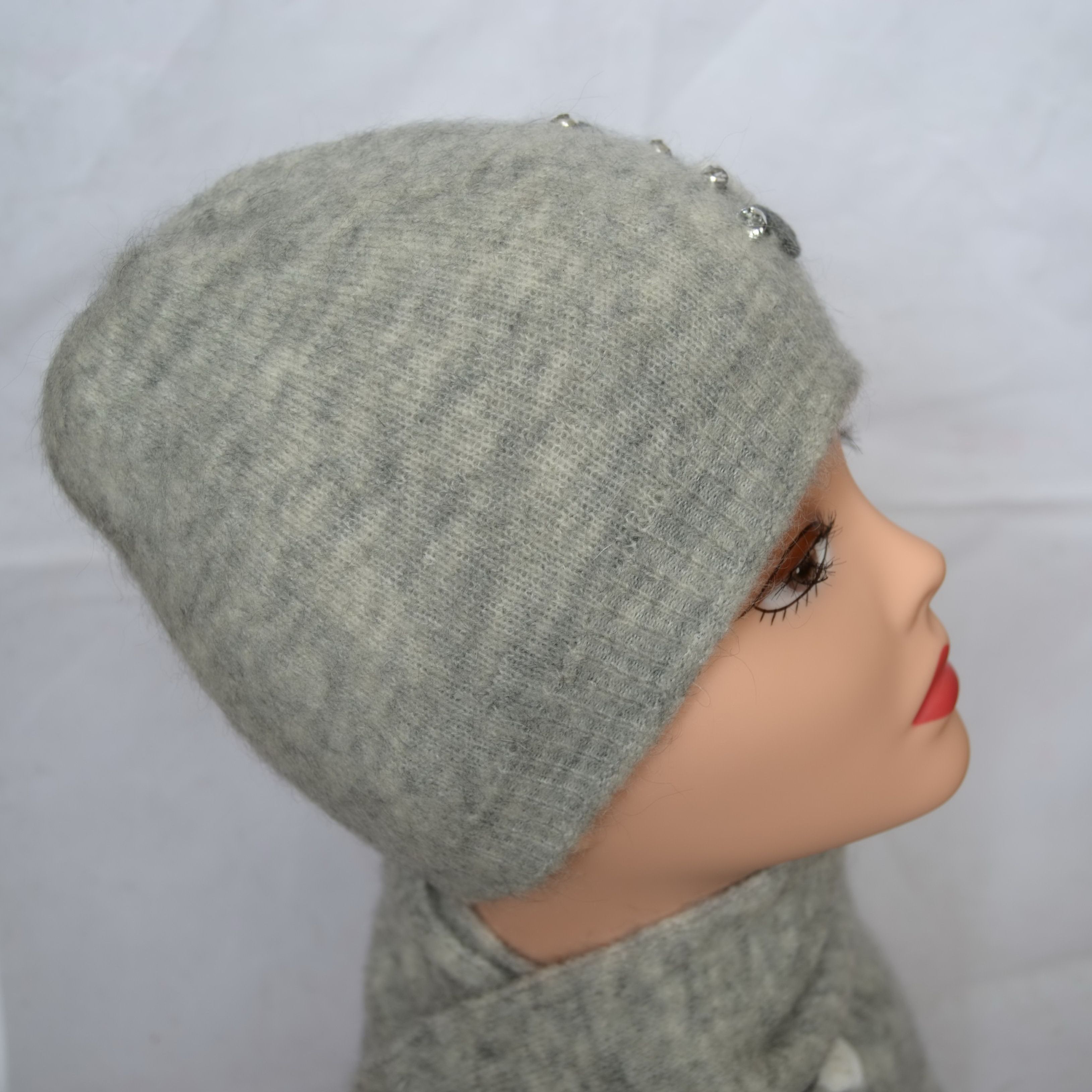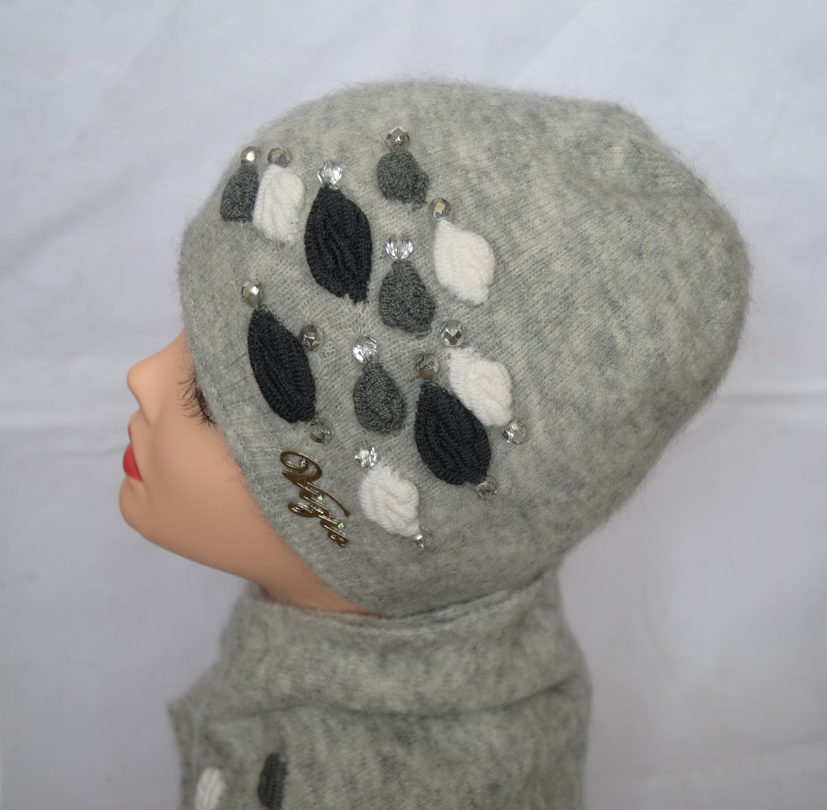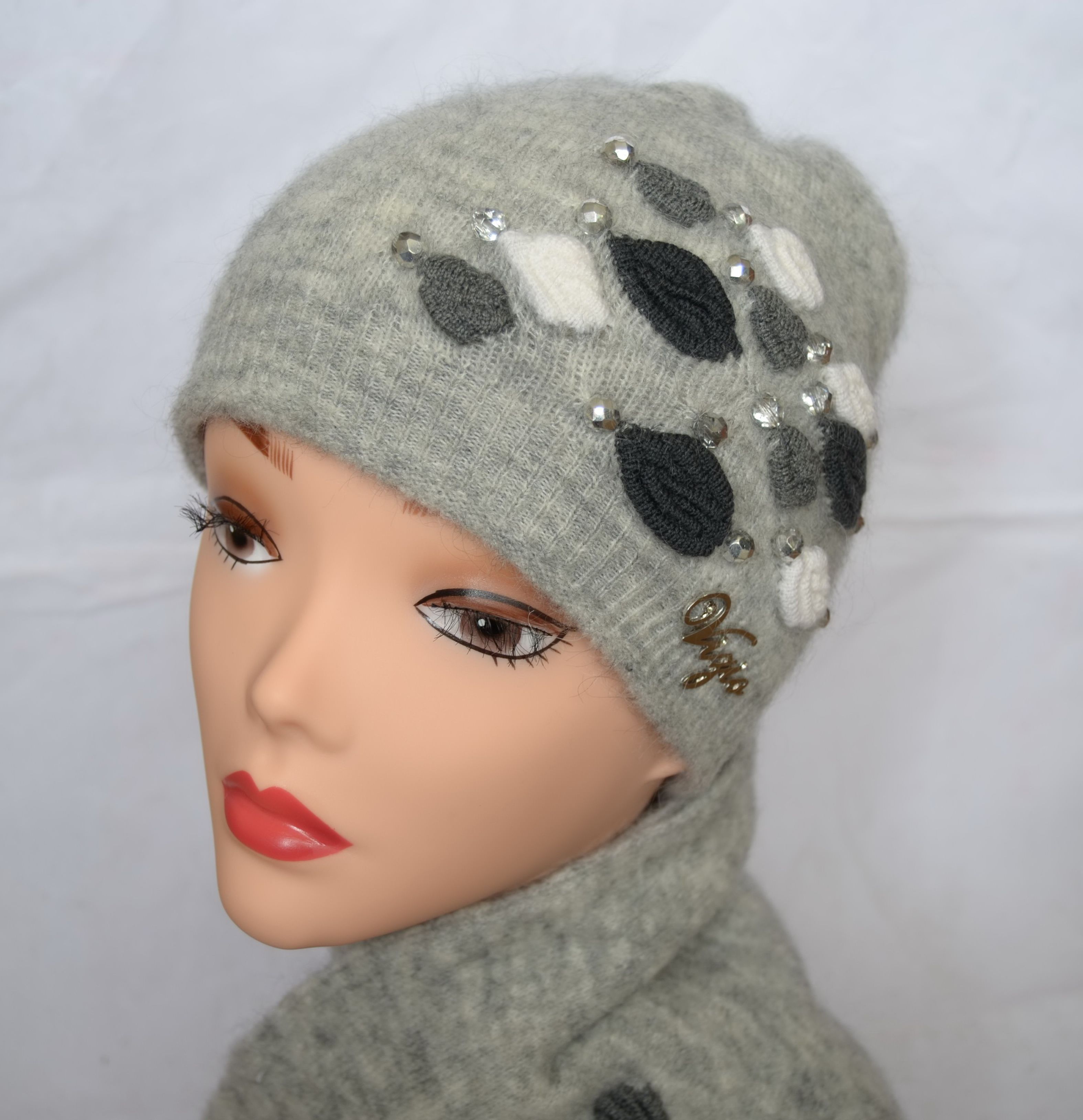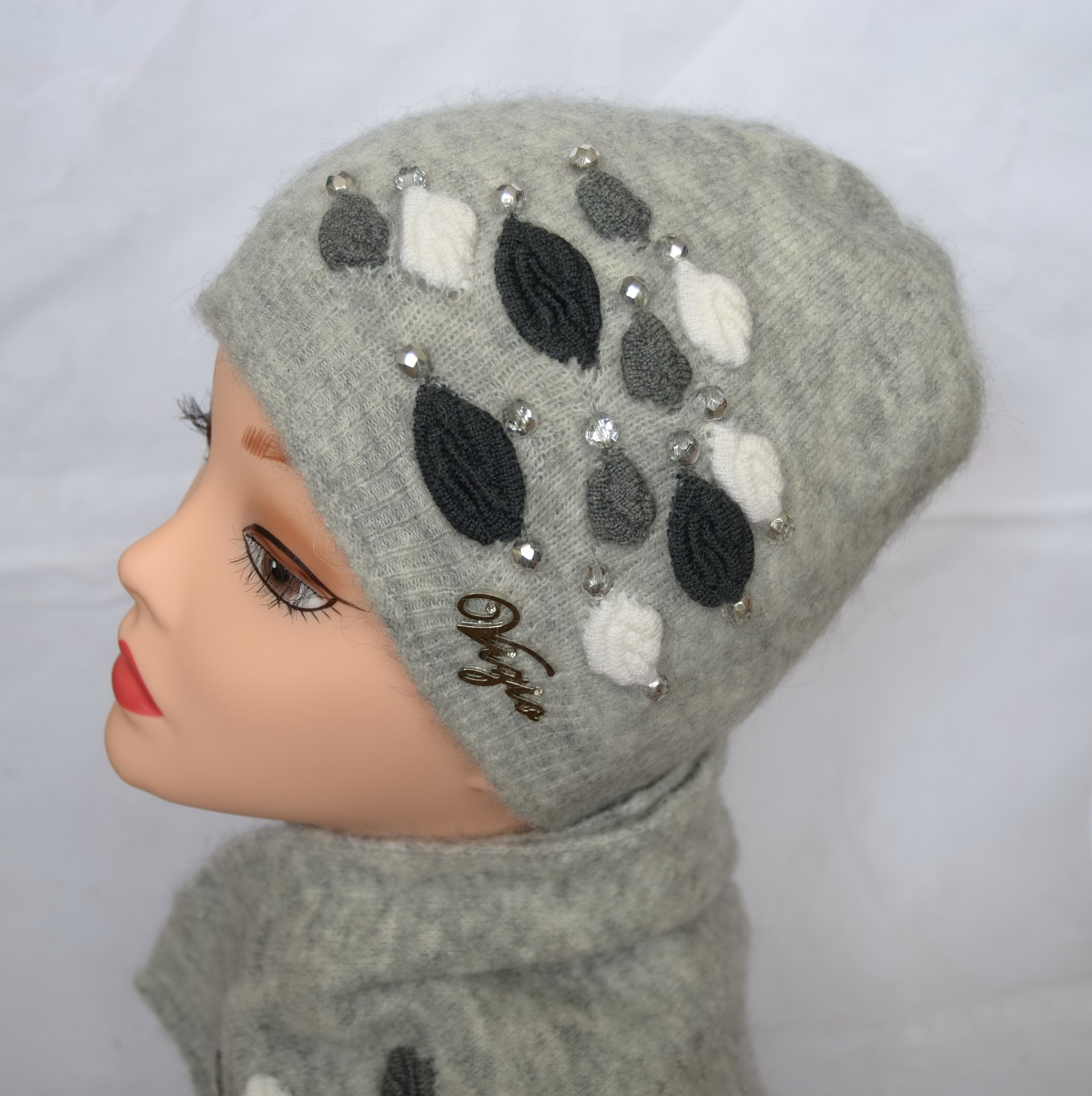 Светло-серая шапка и шарф вязаный комплект зима 2015 итальянского производителя вязаных шапок Vizio