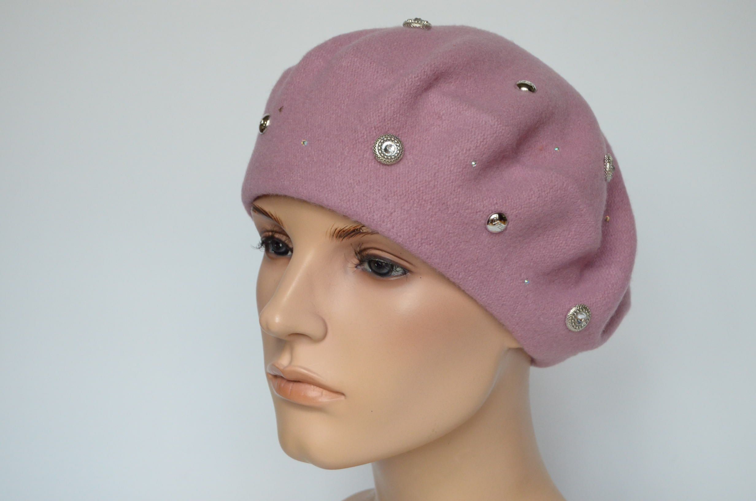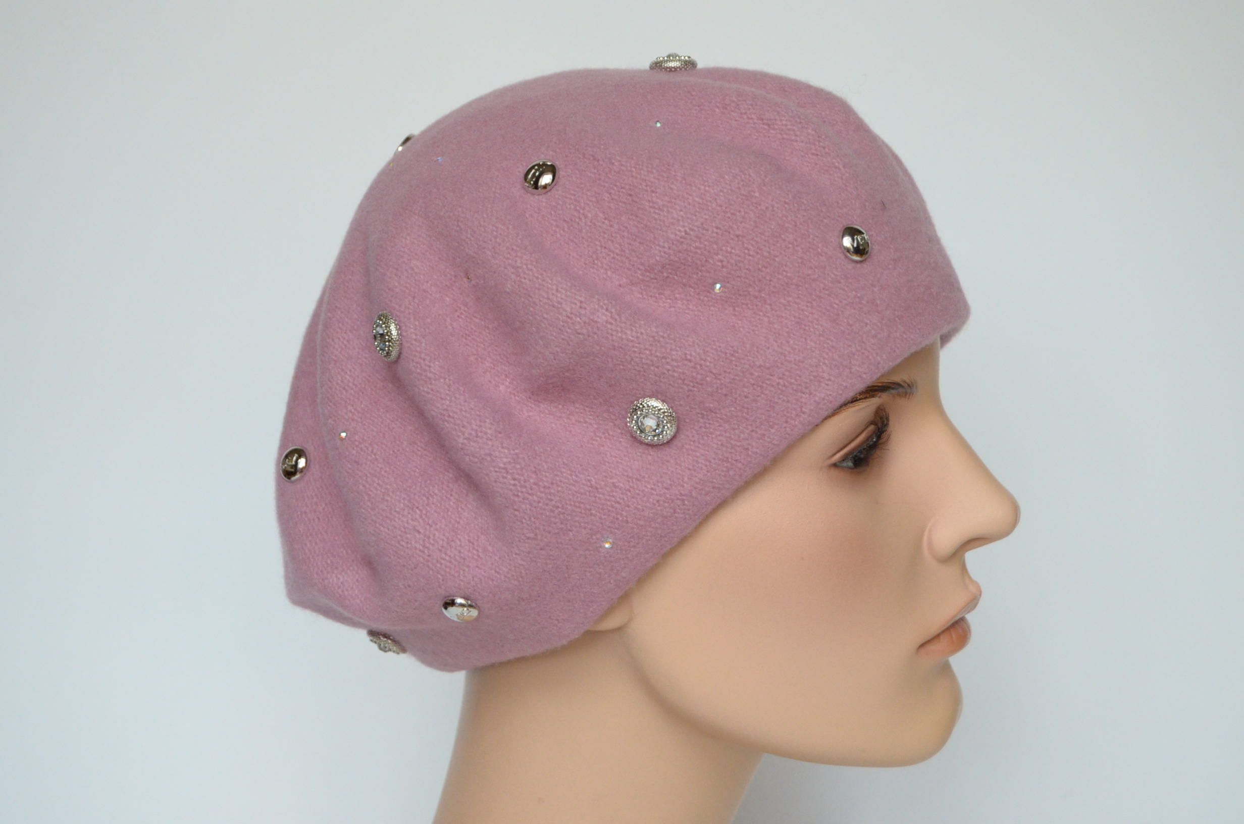 Фетровый берет темно - розового цвета со стразами сваровски для женщин