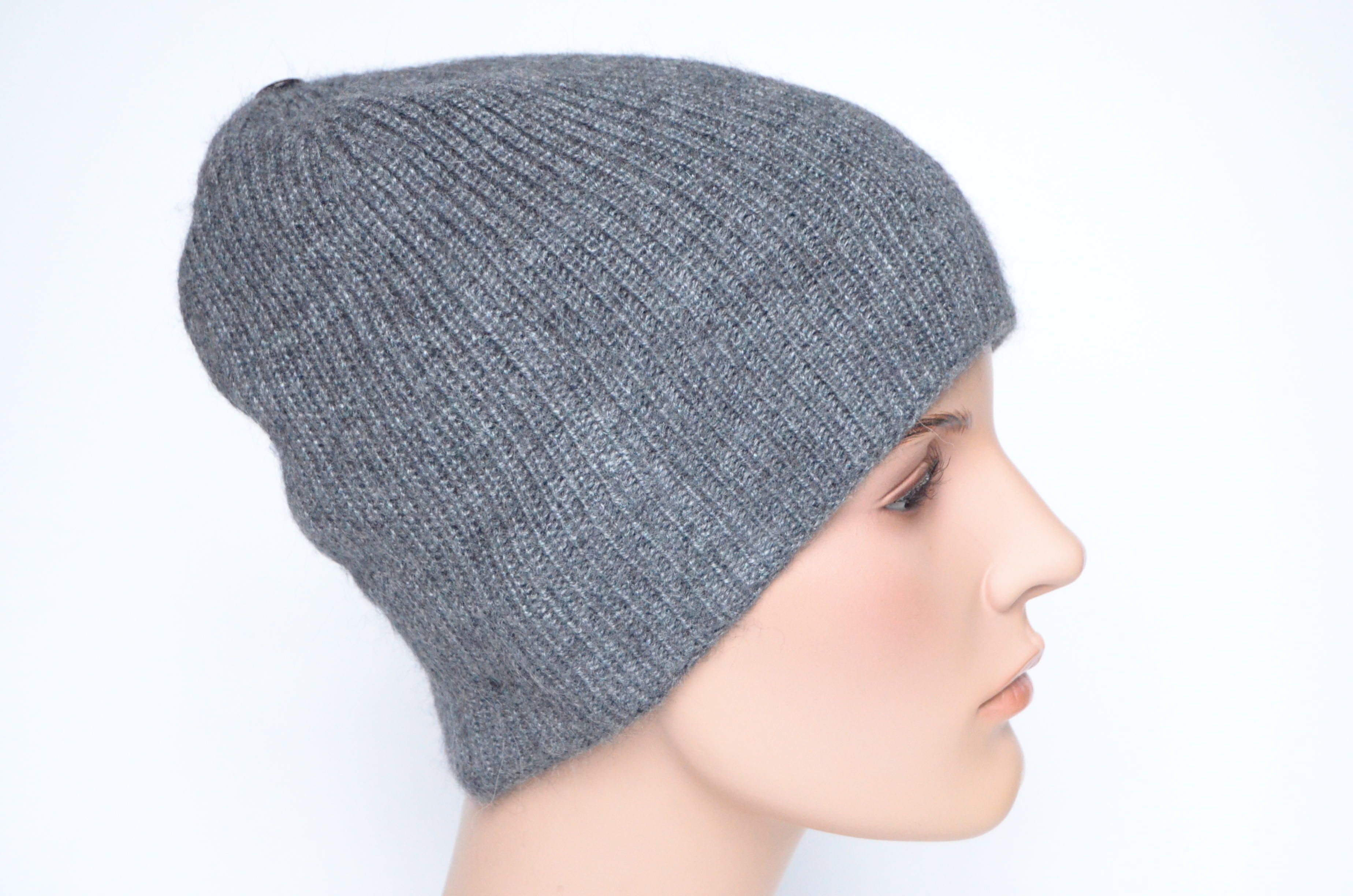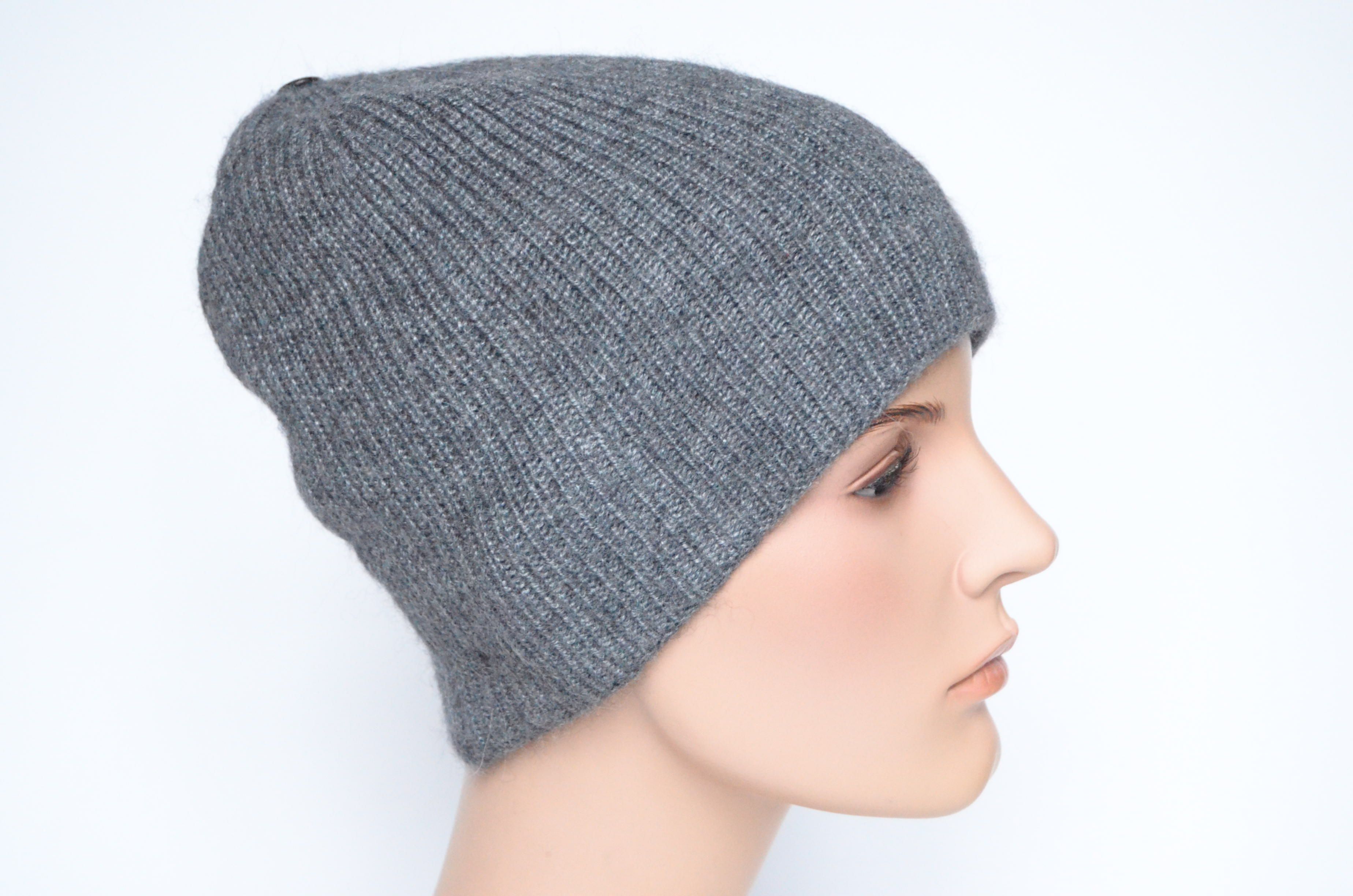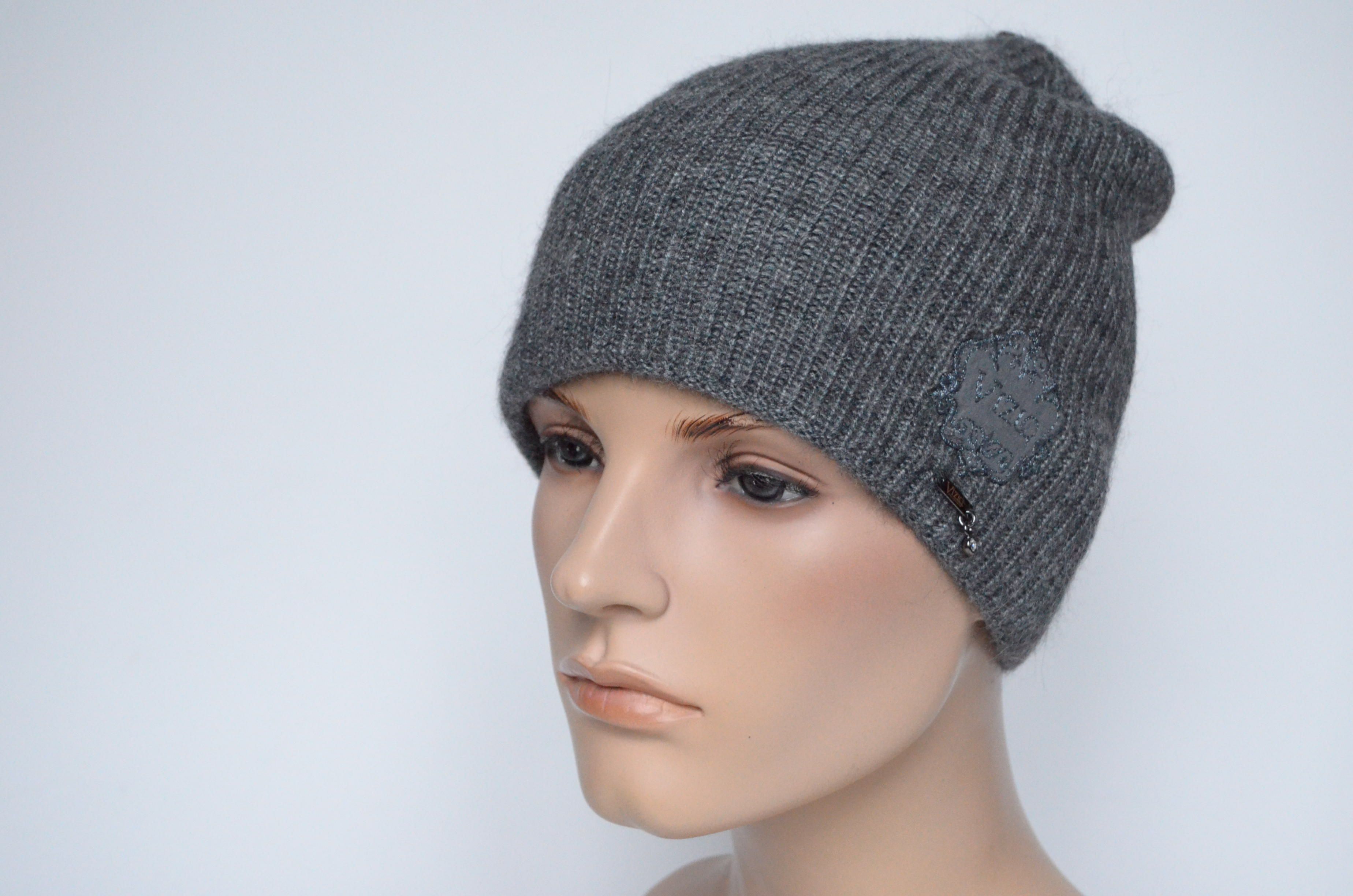 Вязаная шапка темно - серая из альпака и шелка Vizio Италия 9015 CL коллекция итальянских шапок Визио зима 2023 купить в интернет магазине вязаных шапок Италии для женщин Vizio Collezione