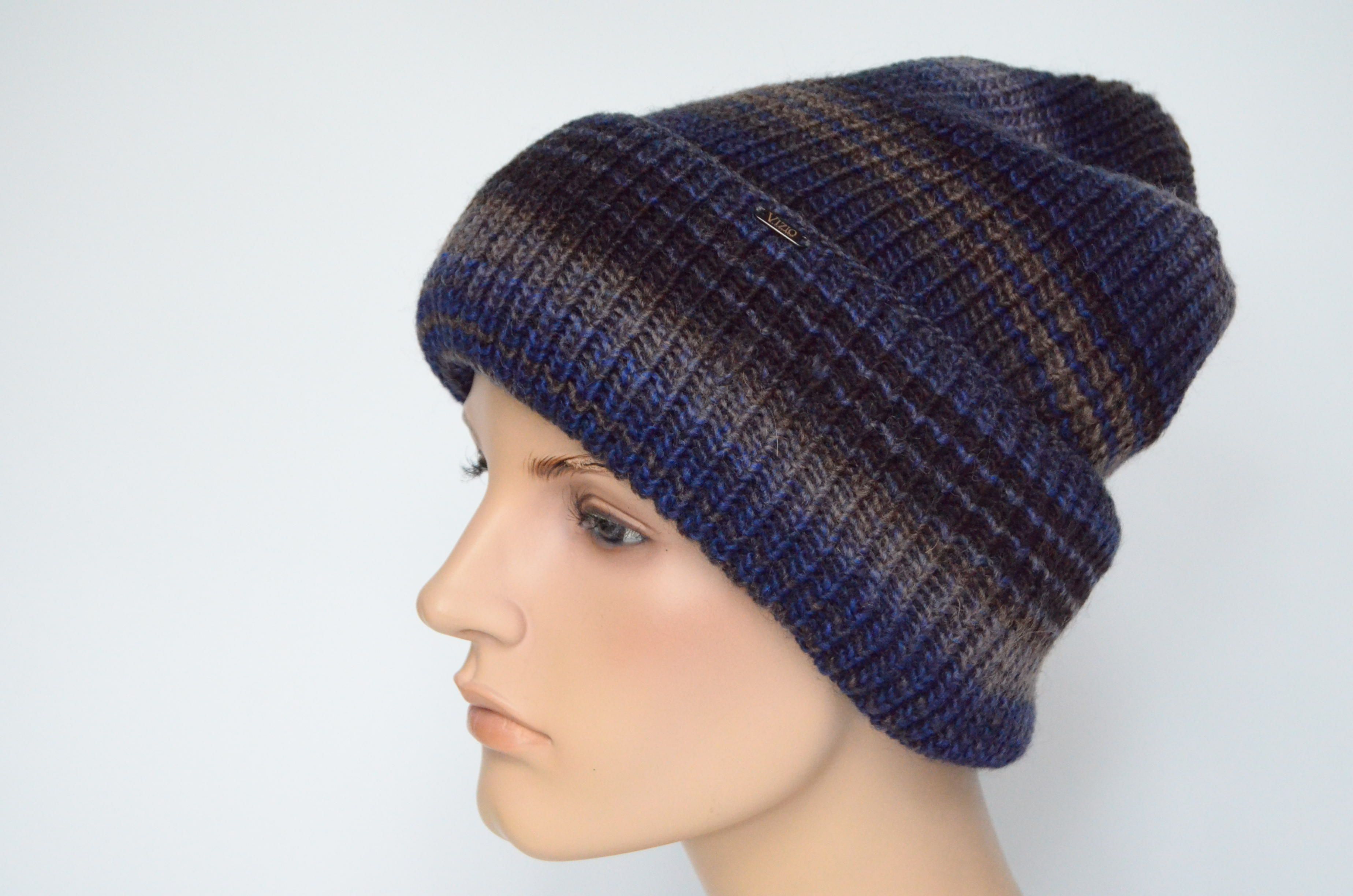 Купить темносинюю шапку с отворотом vizio Италия зима 2022 - 2023 в интернет магазине головных уборов Италии Вицио в Москве и с доставкой по России