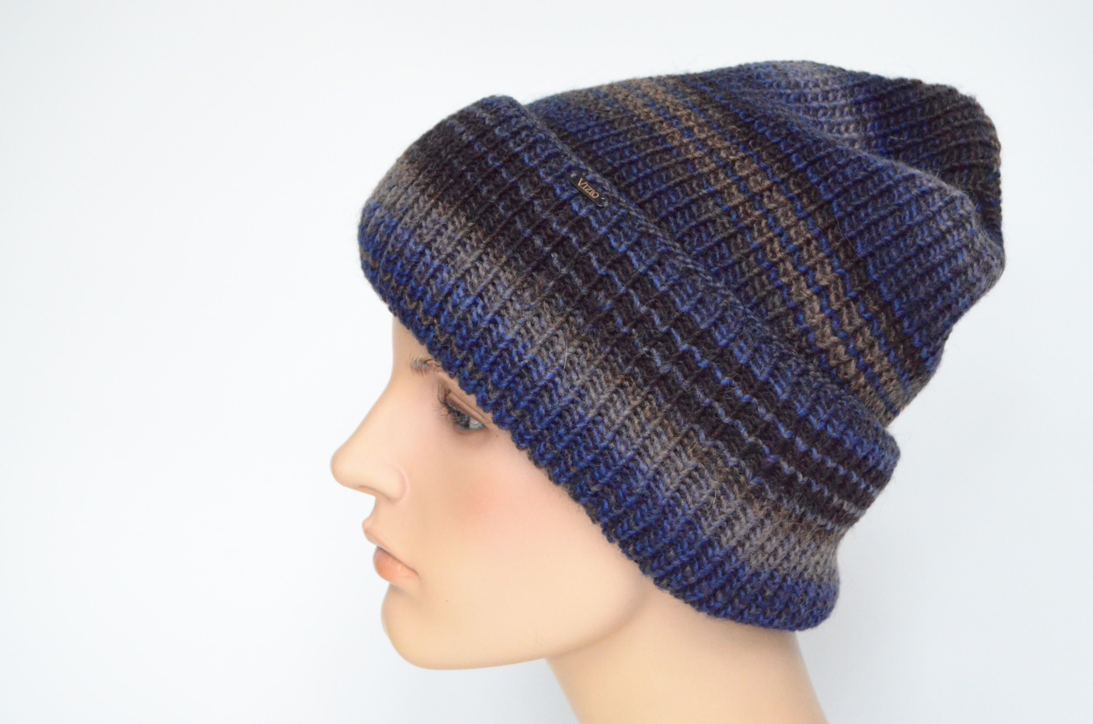 Вязаная шапка с отворотом темносиняя Vizio Италия 110 CRY коллекция итальянских шапок Визио зима 2022 - 2023